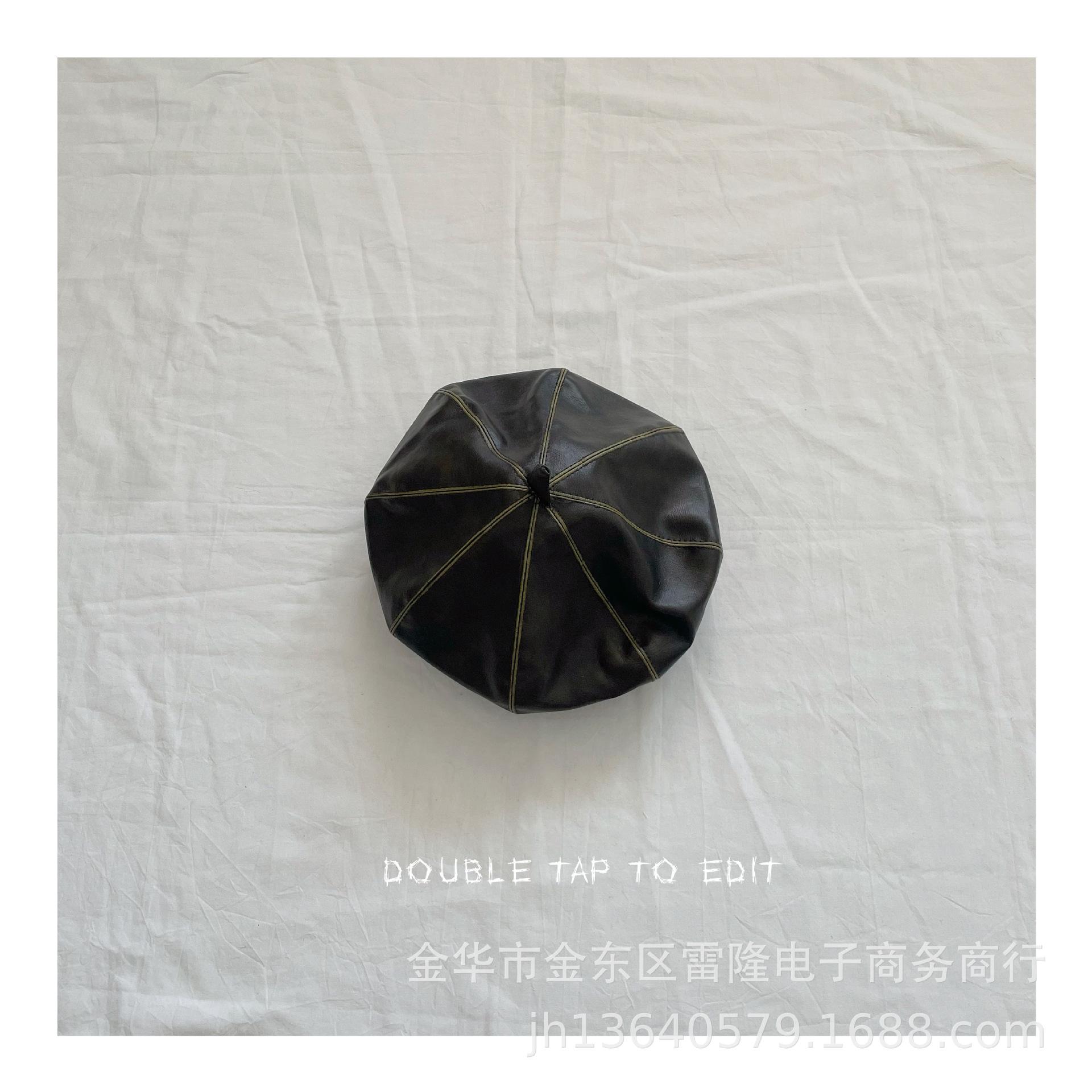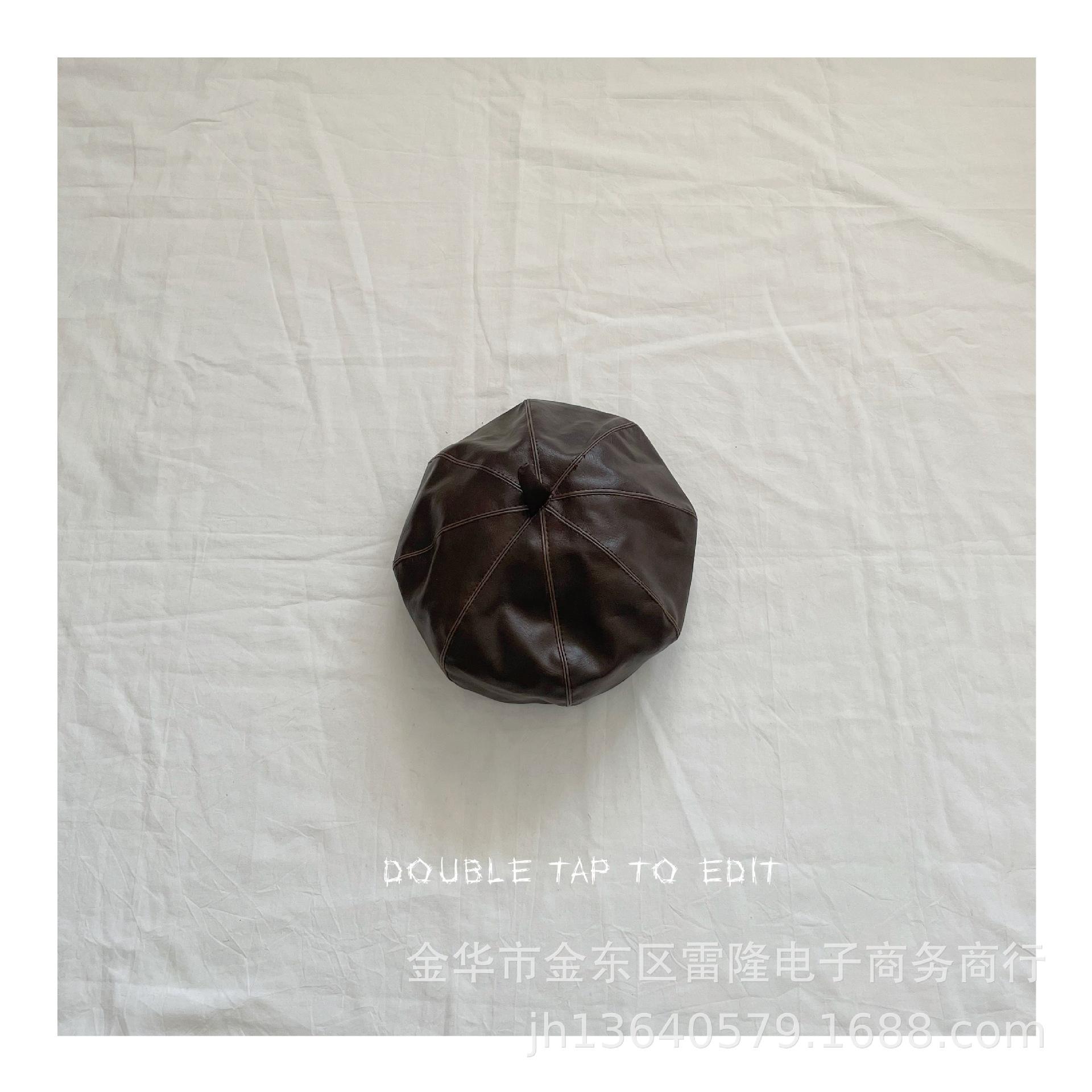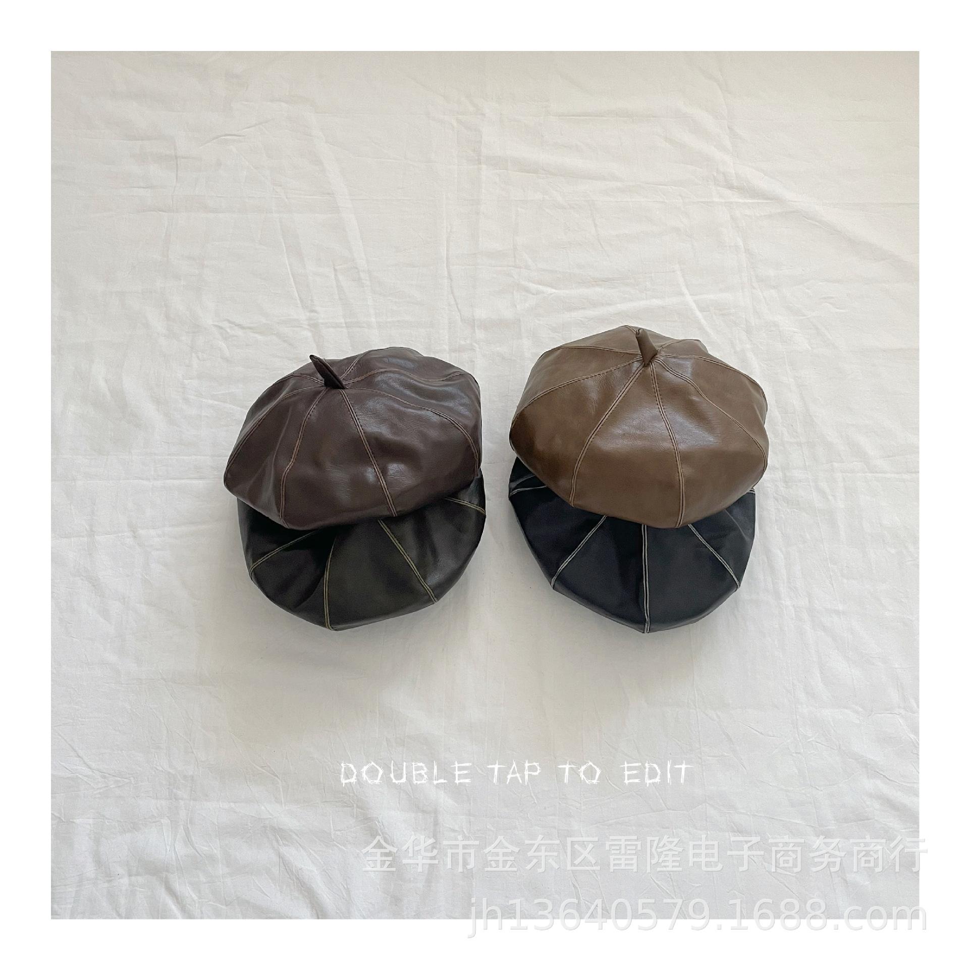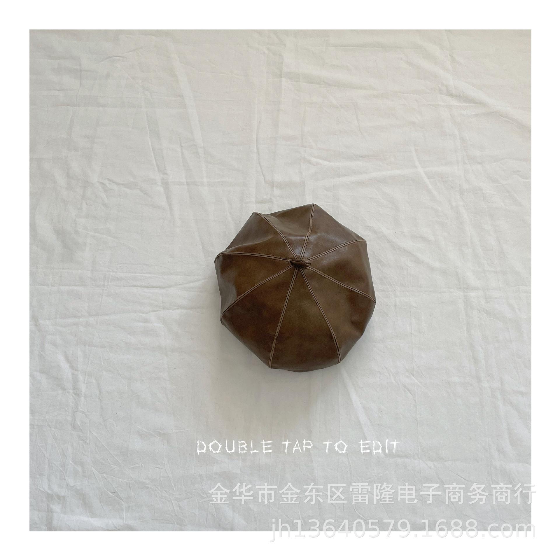 Otoño e invierno Grabador coreano retro para niños Boina de cuero de moda desgastada Boina gorro de calabaza cuero lavado