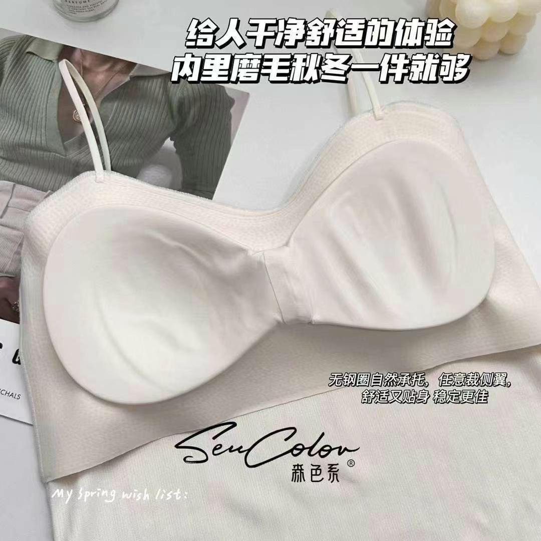 Nueva moda cepillado envuelto pecho terciopelo dorado cepillado copa fija anti-exposición top tubo ropa exterior chaleco ropa interior combinable