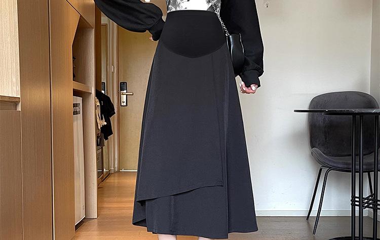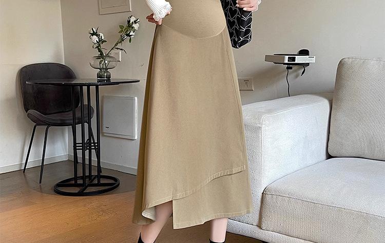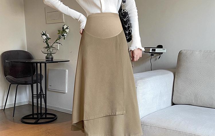 Falda de mujer embarazada primavera y otoño nueva moda casual ropa exterior de punto irregular de longitud media falda de soporte de vientre de mujer embarazada