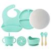 Mint Green (Bib + small suction cup + pe dust cover + bowl + wooden fork spoon + bear straw cup + snack cup li...