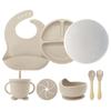 Creamy-white (Bib + small suction cup + pe dust cover + bowl + wooden fork spoon + bear straw cup + snack cup lid)