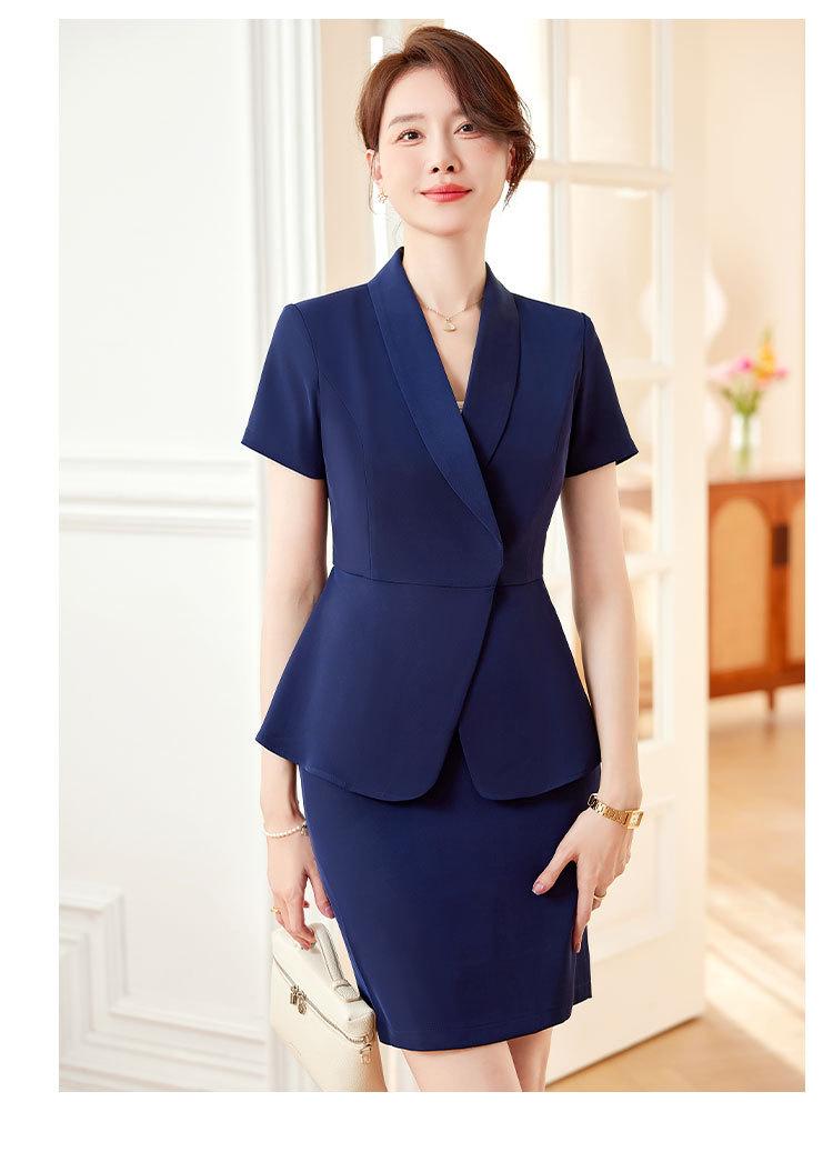 Trajes profesionales de manga corta de verano de moda para mujer, trajes de falda, ropa de trabajo de joyería de esteticista, ropa de trabajo de recepción de hotel