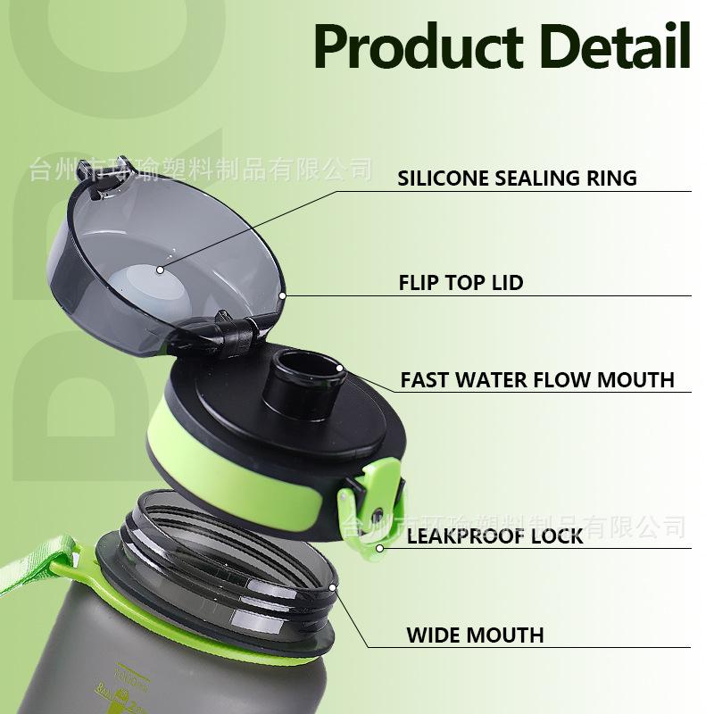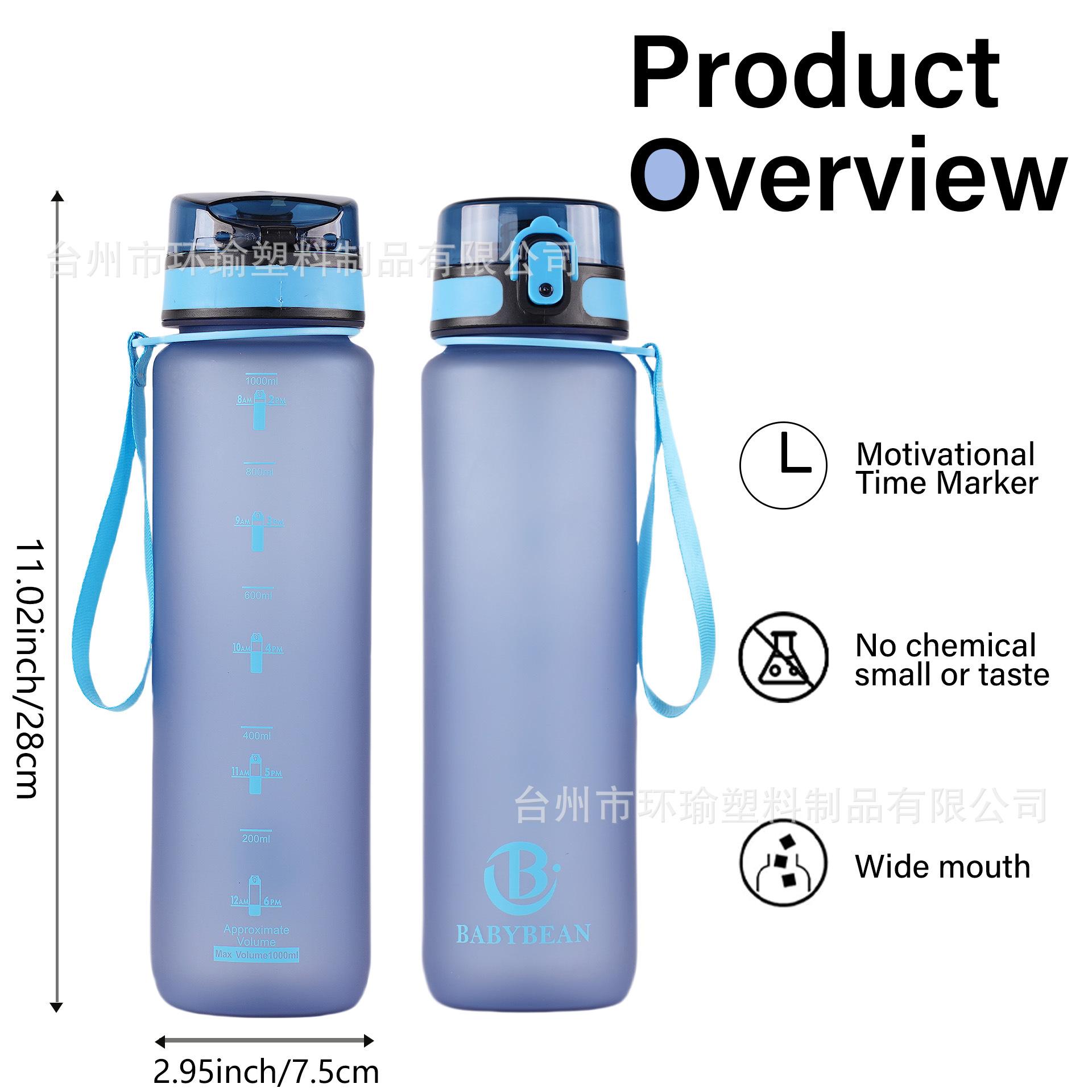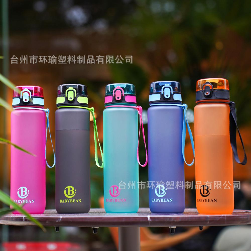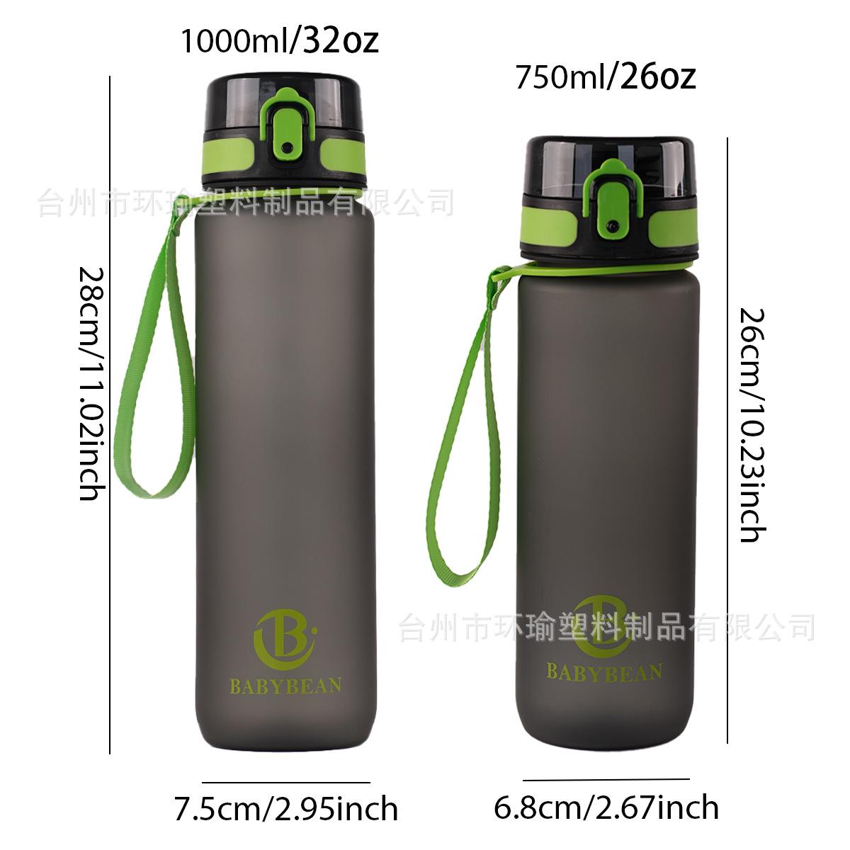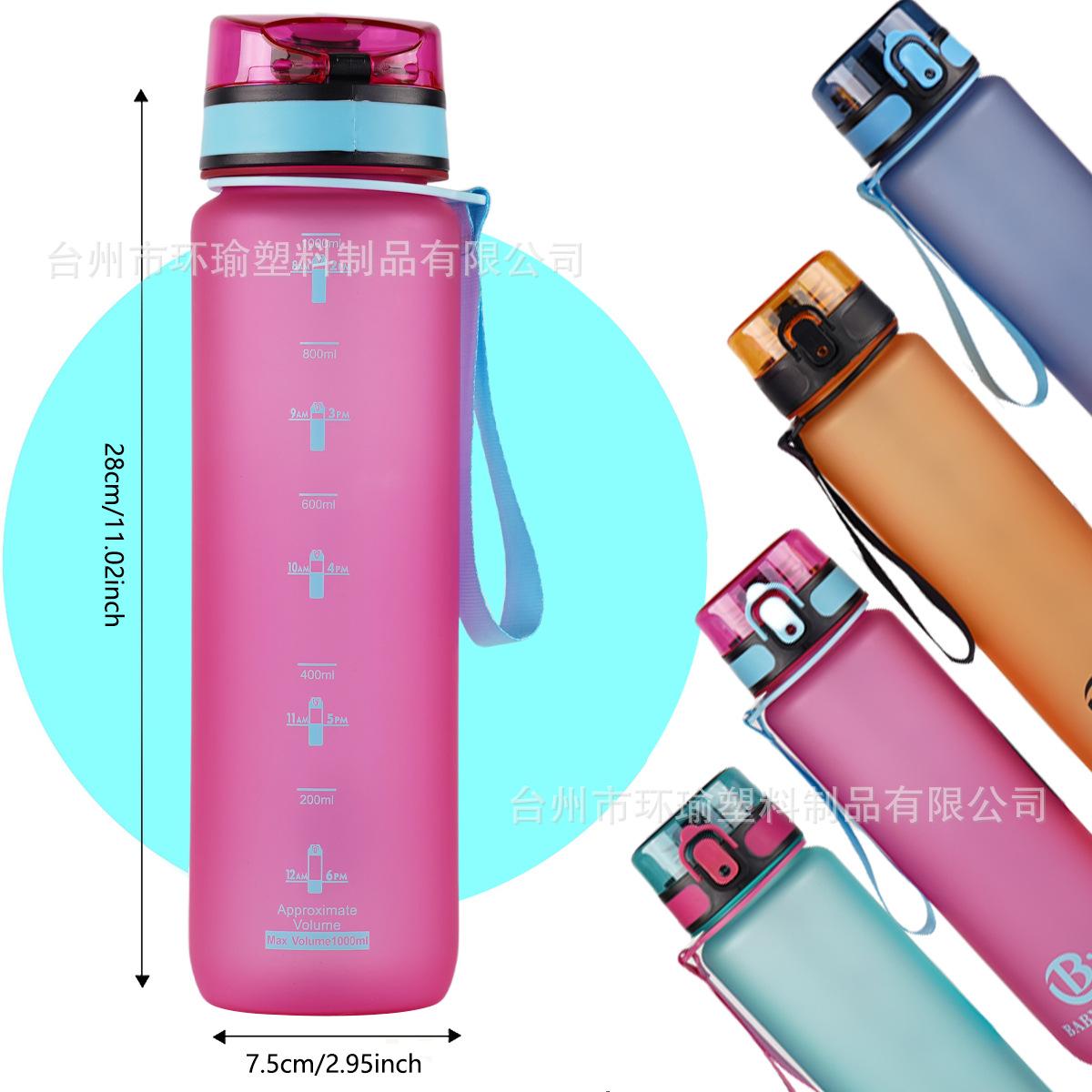 Taza de agua deportiva transfronteriza de 1L/750ml de gran capacidad, taza de plástico, botella de agua, fitness, exterior, esmerilada, con cepillo para taza, taza de agua
