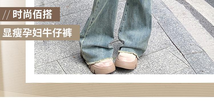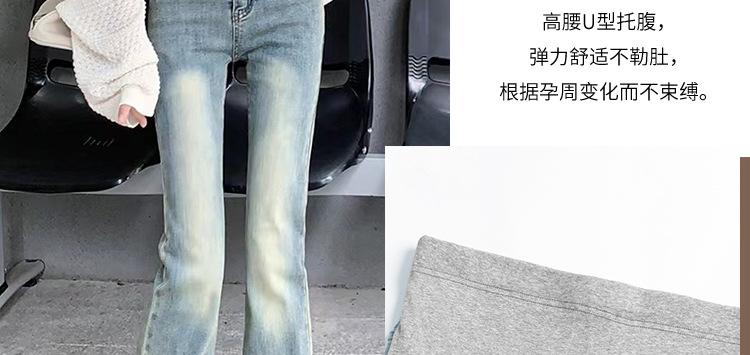 Pantalones vaqueros para embarazadas, otoño e invierno, nuevos pantalones acampanados para embarazadas, forrados de vellón, ropa exterior elástica alta, pantalones vaqueros casuales