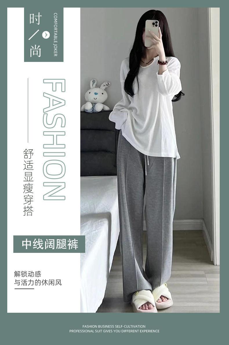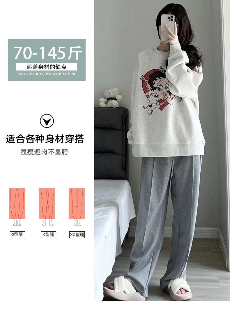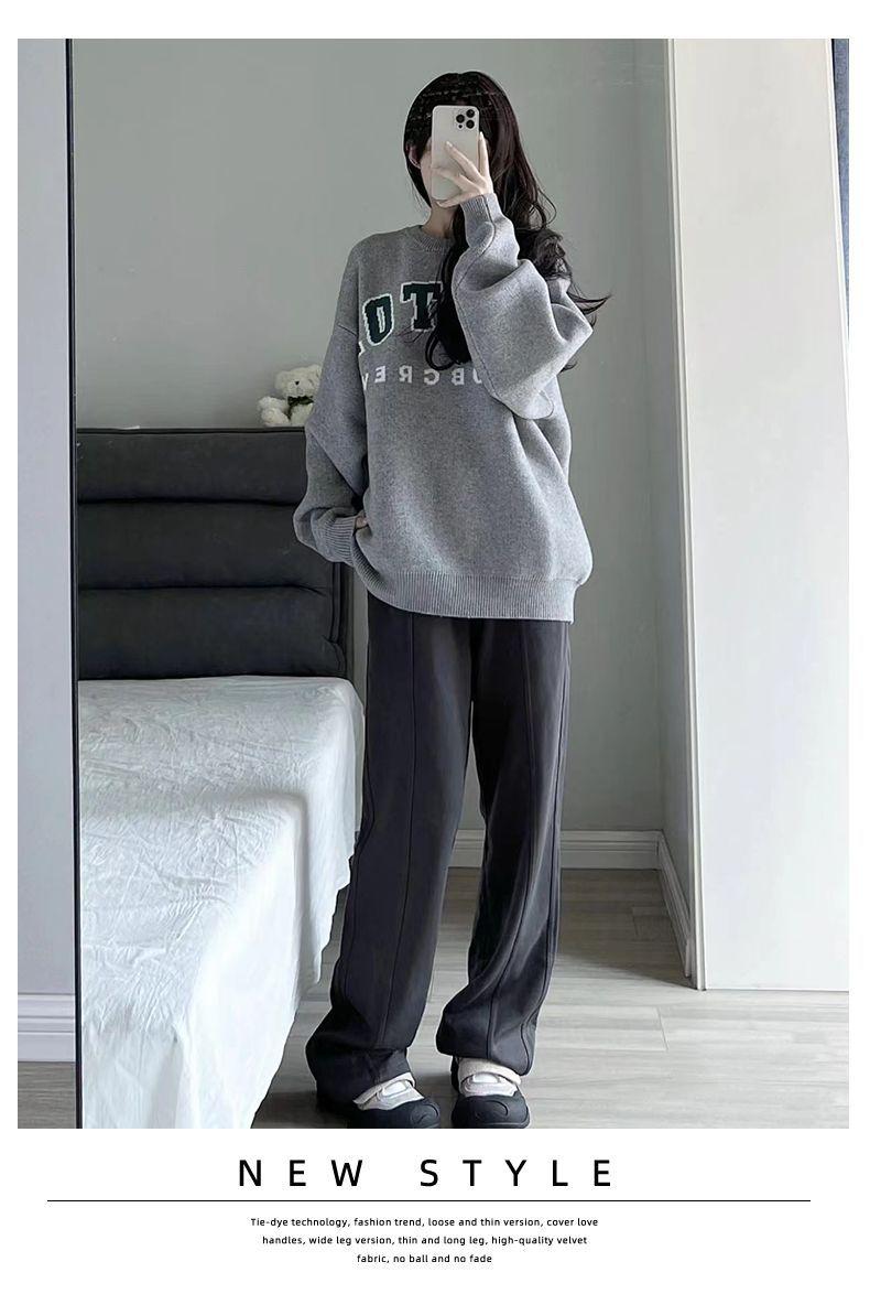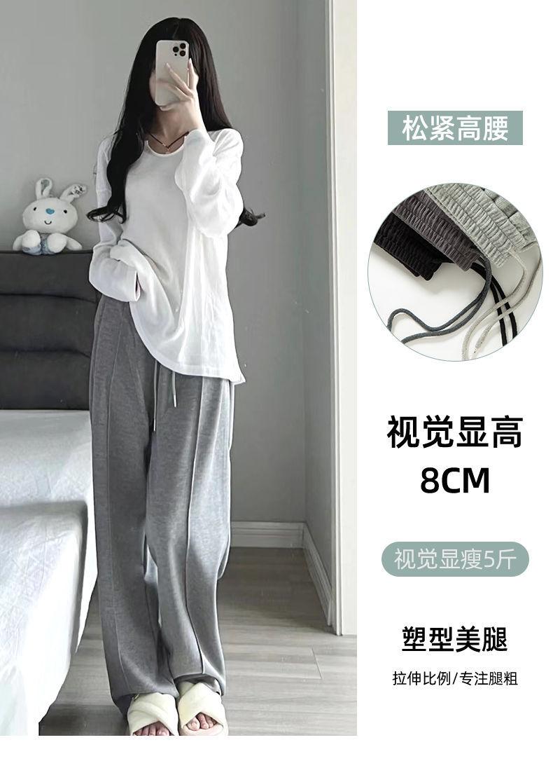 Pantalones deportivos casuales adelgazantes de cintura alta para mujer, nuevo estilo otoño e invierno 2025, largos hasta el suelo, forrados de polar, holgados de talla grande y pierna ancha al por mayor