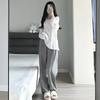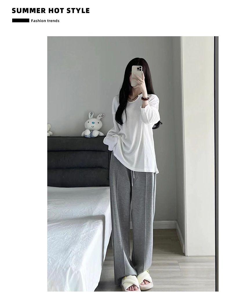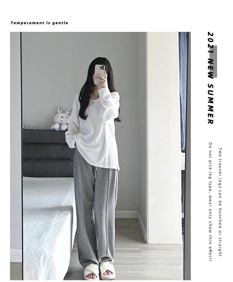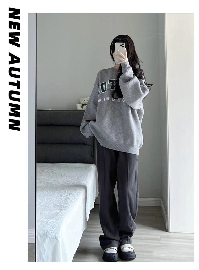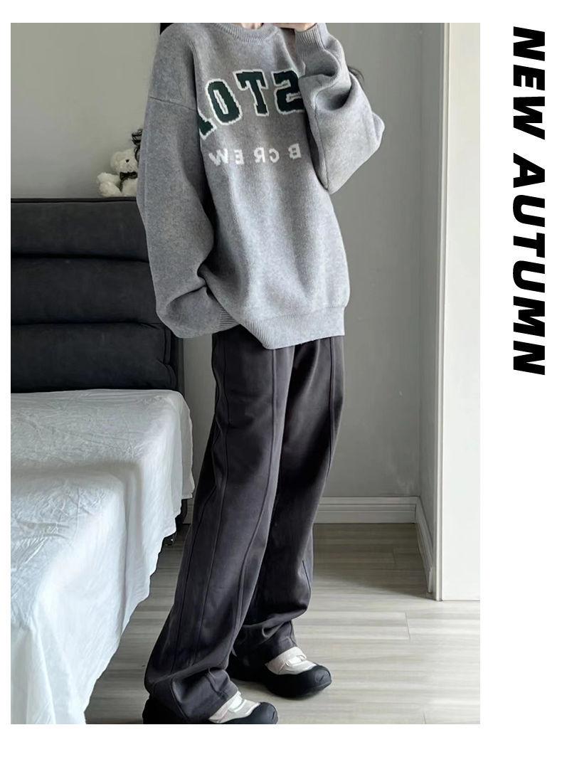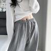 Pantalones deportivos casuales adelgazantes de cintura alta para mujer, nuevo estilo otoño e invierno 2025, largos hasta el suelo, forrados de polar, holgados de talla grande y pierna ancha al por mayor