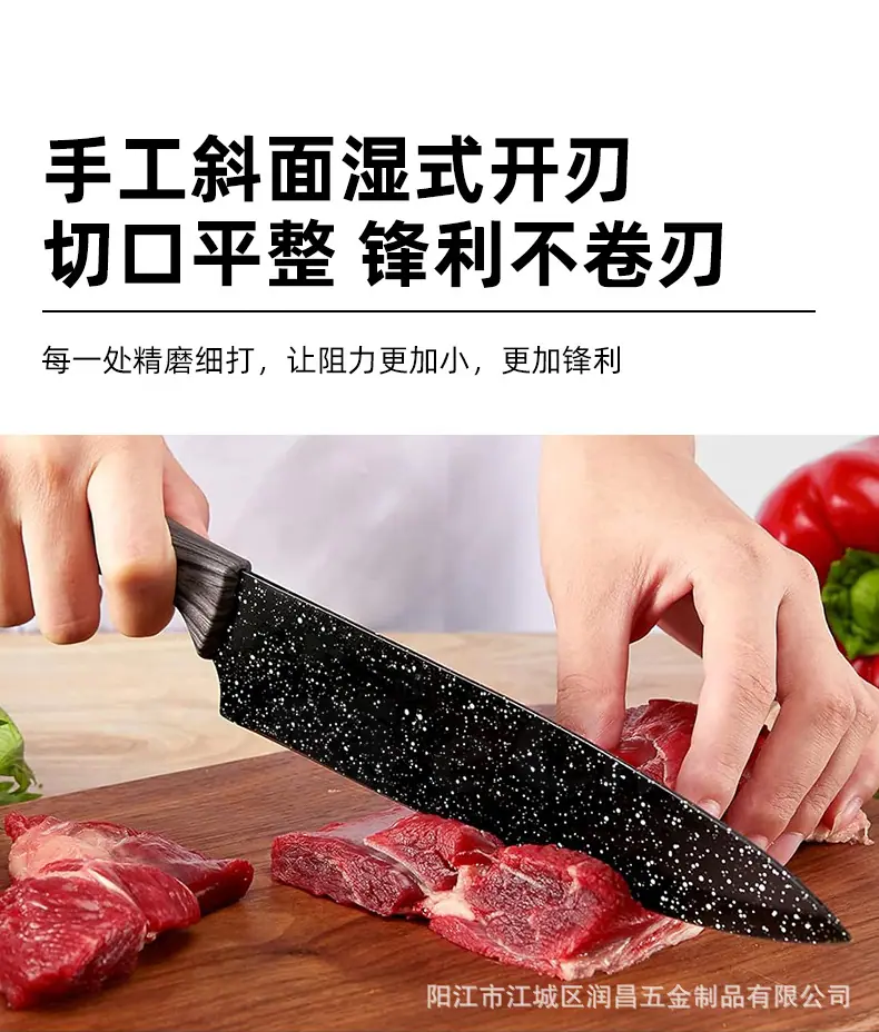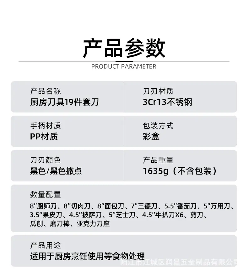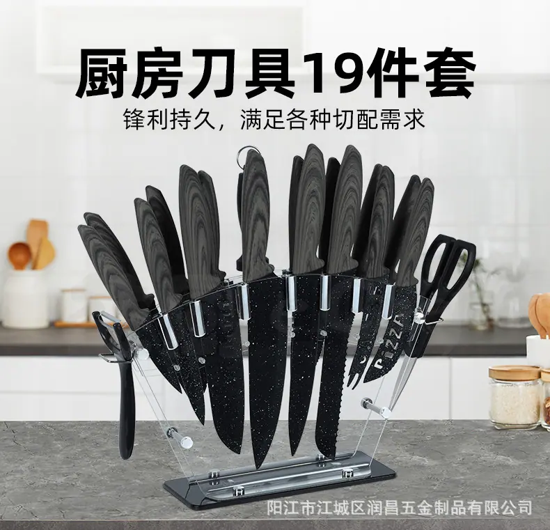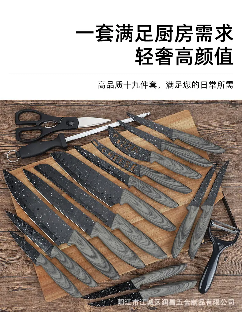 Juego de Cuchillos Yangjiang en Stock, Juego de 19 Piezas, Cuchillo Santoku, Cuchillo de Chef, Hoja Negra, Antibacteriano, Resistente a la Corrosión, Afilado, Juego Completo para Cocina