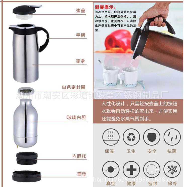 Hervidor de Agua Caliente con Forro de Vidrio de Acero Inoxidable Hervidor con Aislamiento Térmico para el Hogar Regalo Botella de Agua Caliente con Aislamiento al Vacío Cafetera Gran Capacidad
