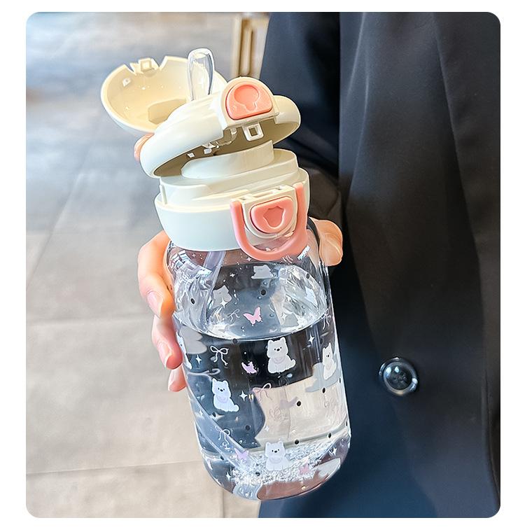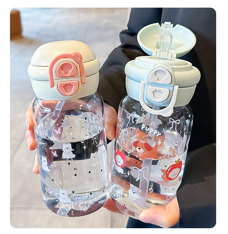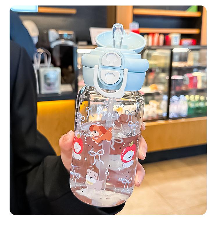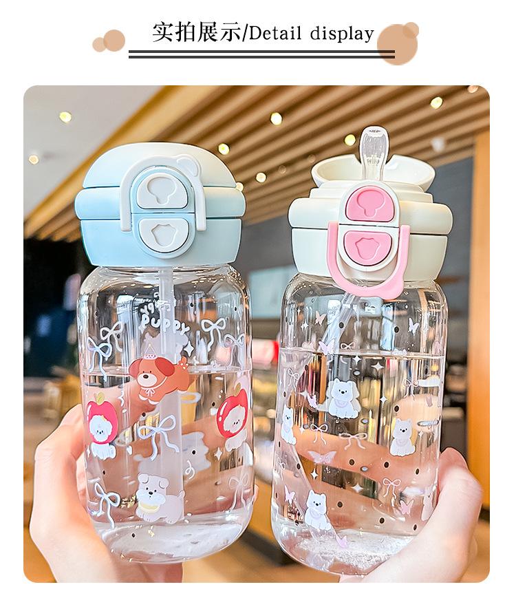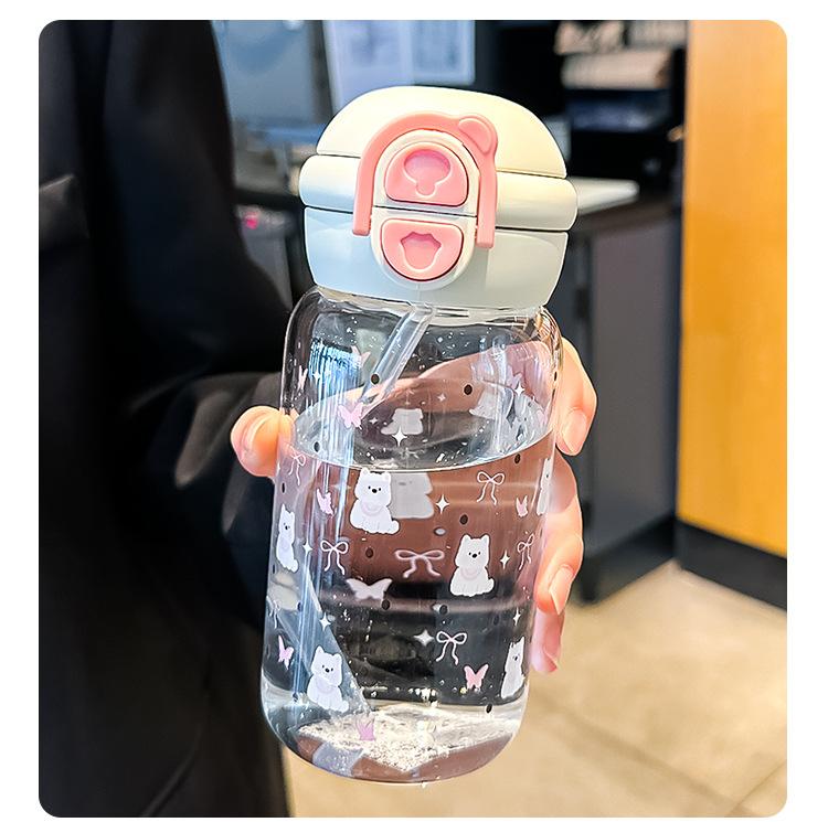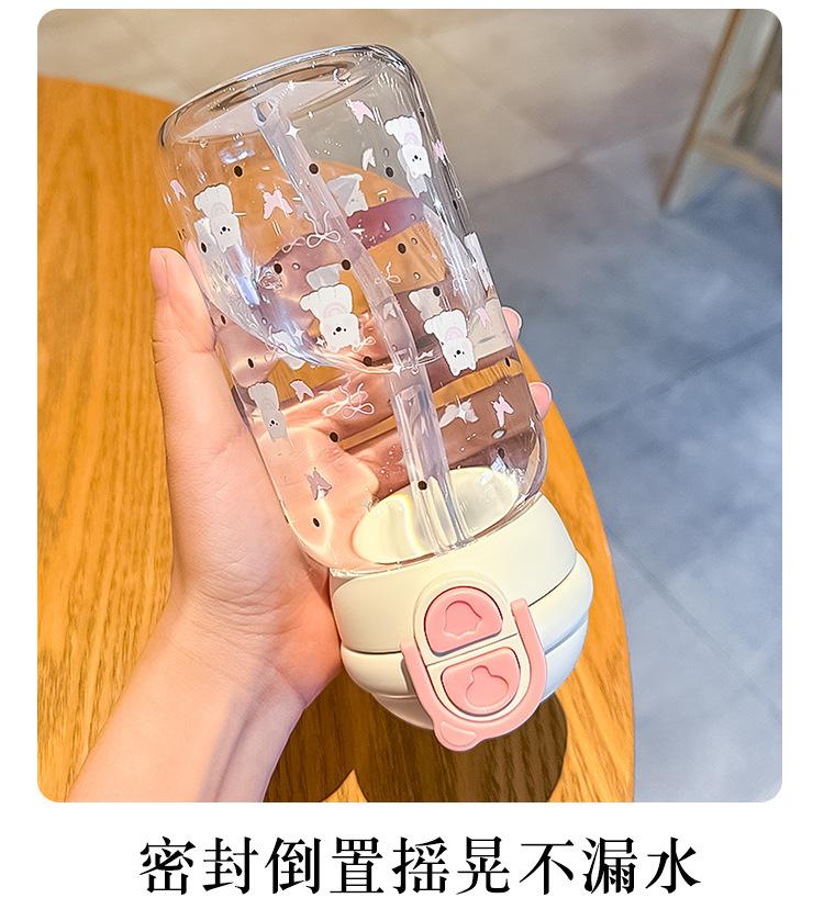Linda taza de vidrio para niñas con alta apariencia en verano, taza de paja para estudiantes portátil y compacta, taza para beber agua doble resistente a altas temperaturas