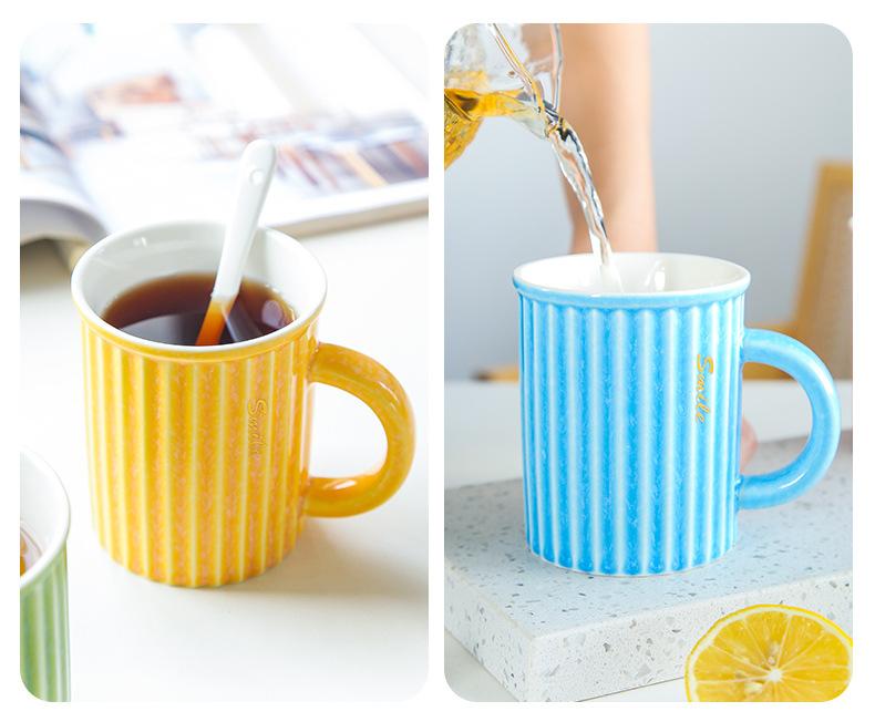 Taza de Cerámica Creativa Hogar Rayas Taza de Agua para Pareja Masculina y Femenina Oficina Simple Taza para Leche Taza de Café