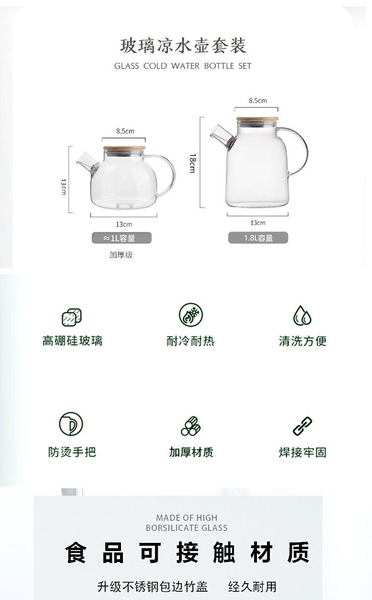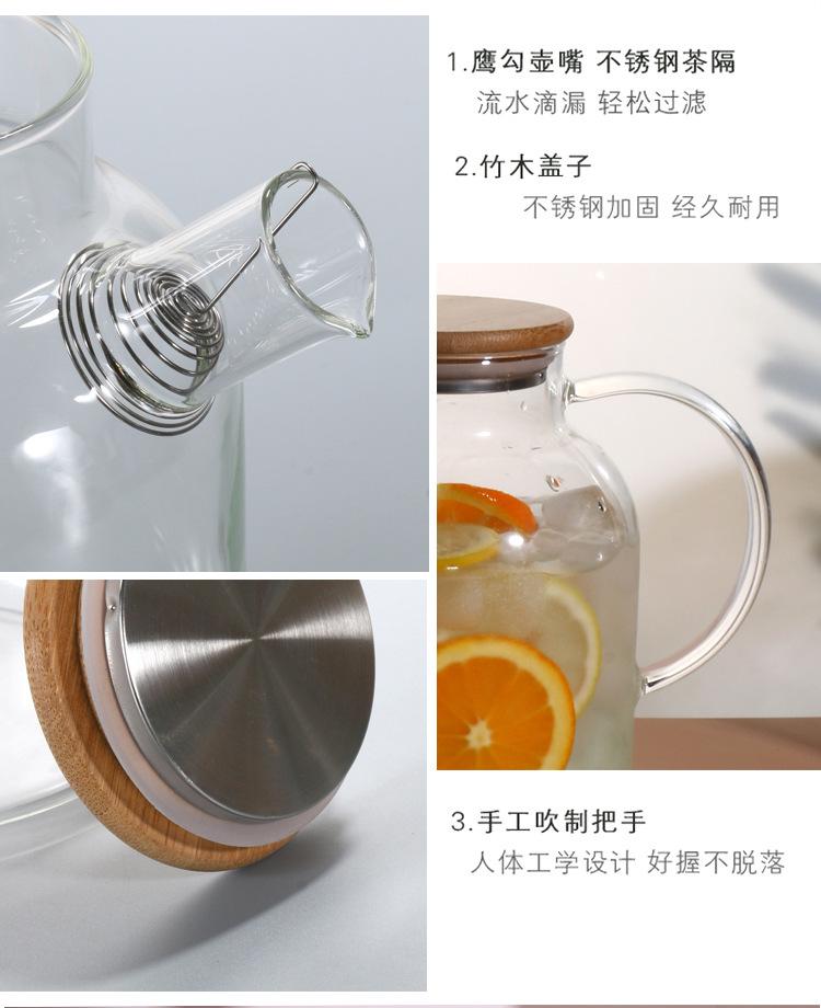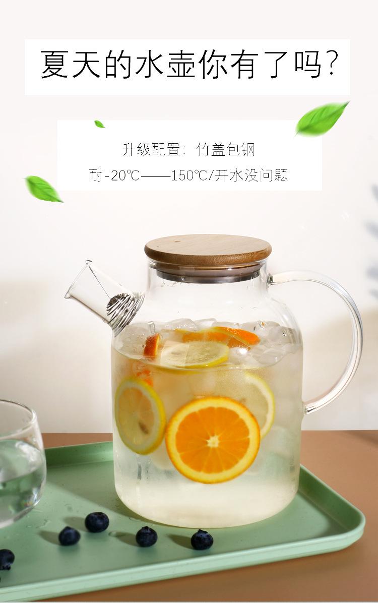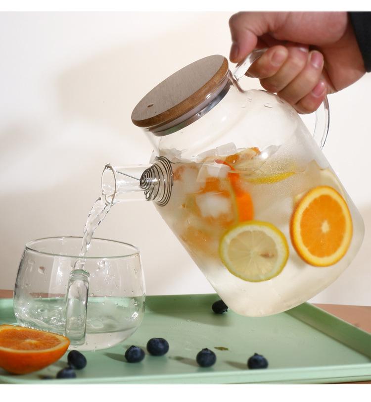 Jarra para Agua Fría Hecha de Vidrio de Borosilicato Alto con Tapa de Acero Cubierta de Bambú, Jarra para Agua de Gran Capacidad, Jarra para Jugo, Tetera, Jarra para Agua Fría de Gran Capacidad