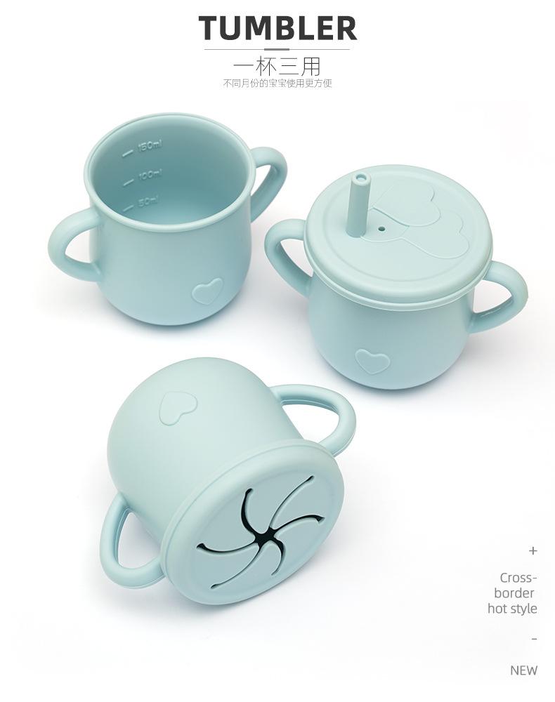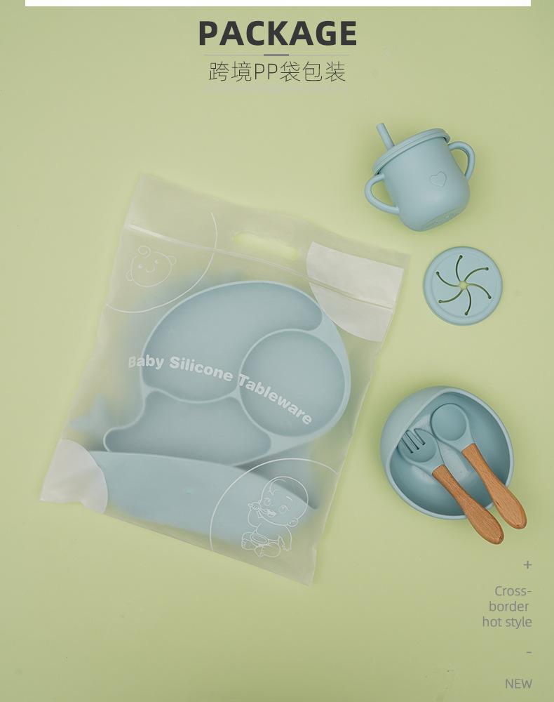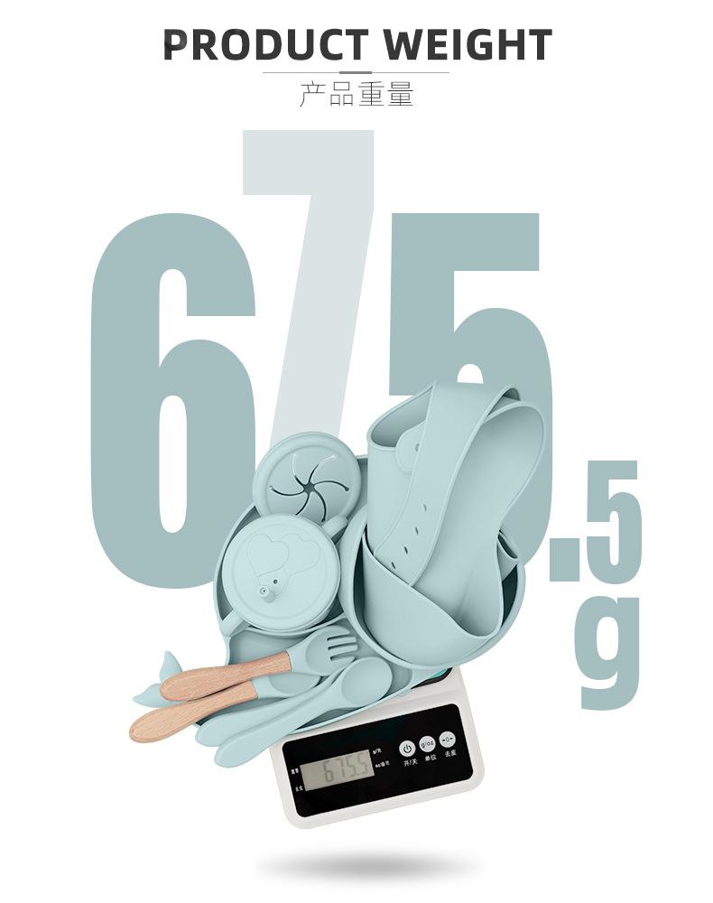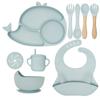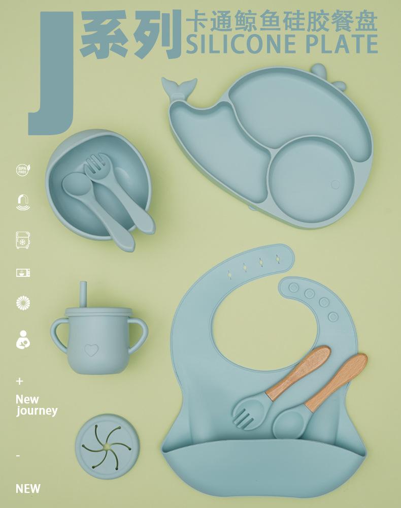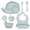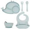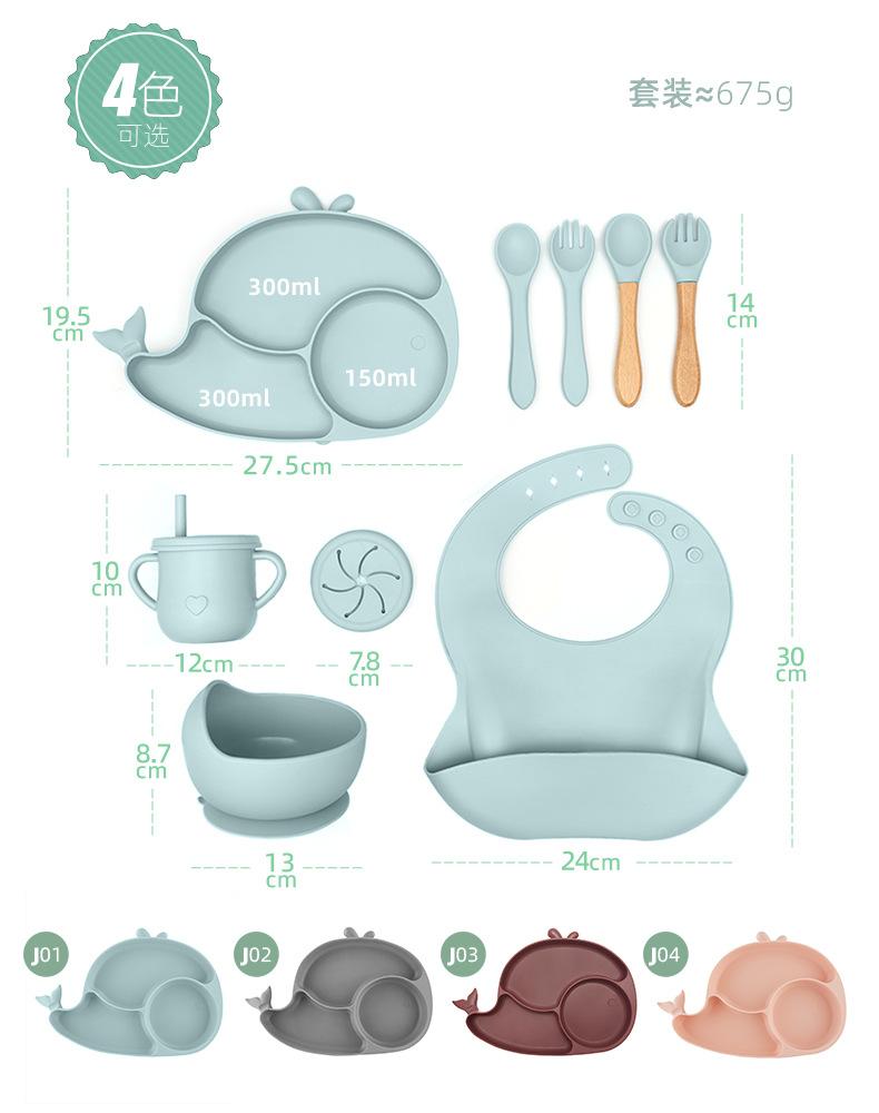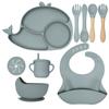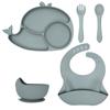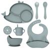 Whale gray dinner plate + silicone fork + spoon + bowl + rice bag + cup + two cup lids 8-piece set