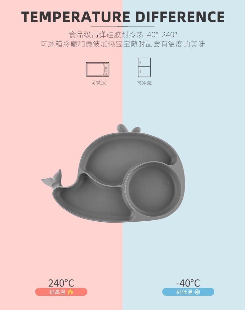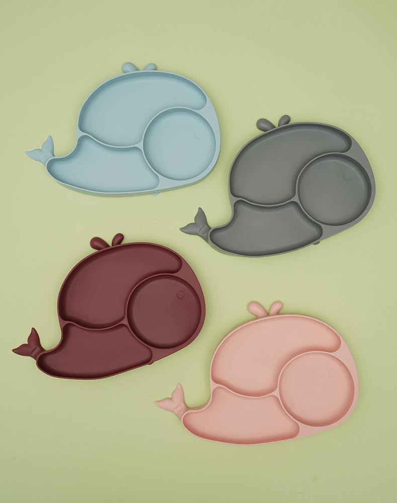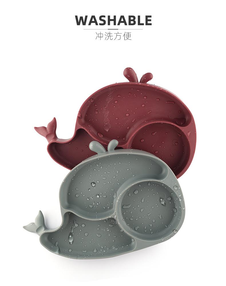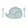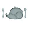 Whale style individual dinner plate gray blue, Whale style gray blue dinner plate + silicone fork and spoon 3-...
