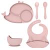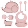 Whale pink dinner plate + silicone fork + spoon + bowl + rice bag + cup + two cup lids 8-piece set