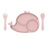Whale pink dinner plate + silicone fork + spoon + bowl + rice bag + cup + two cup lids + wooden fork and spoon 10-piece set
