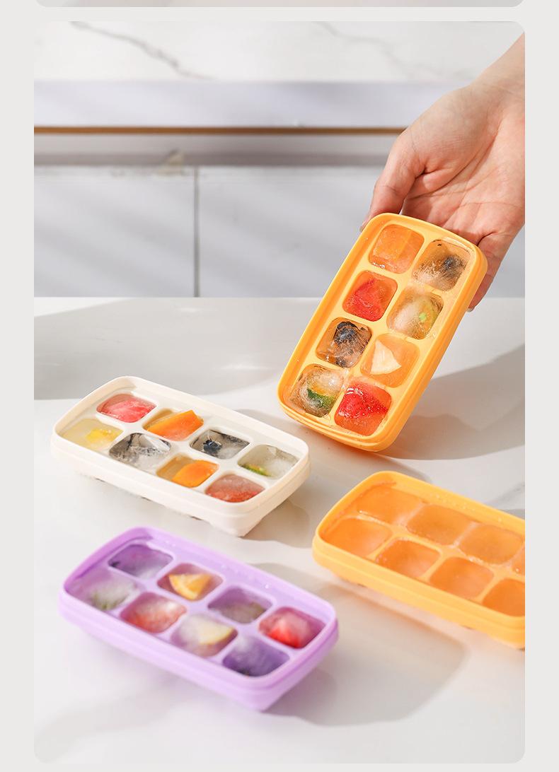 Molde para hacer cubitos de hielo tipo prensa, cubitos de hielo congelados, molde para hacer cubitos de hielo de fondo suave con tapa, molde para cubitos de hielo domésticos, molde para caja de hielo