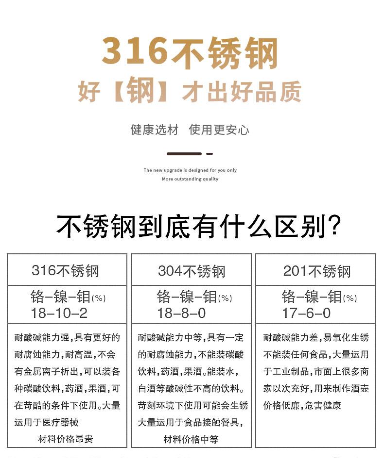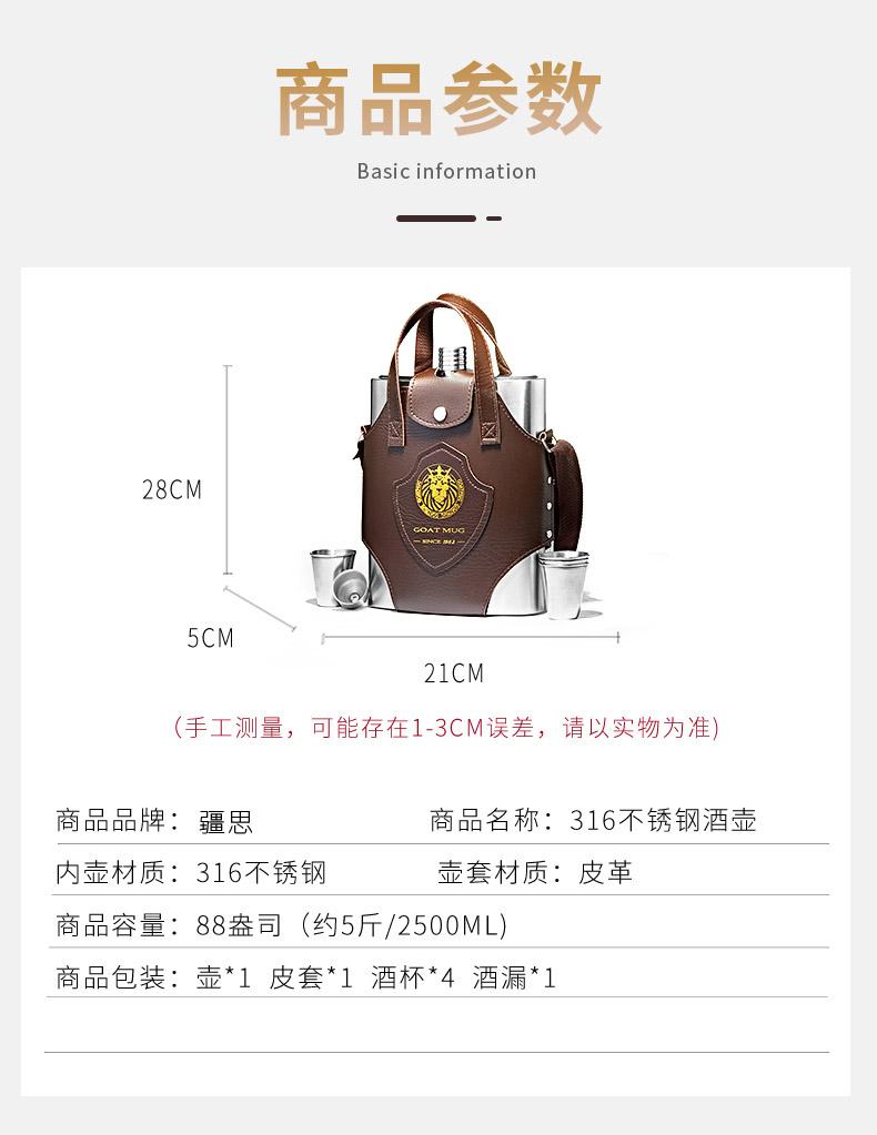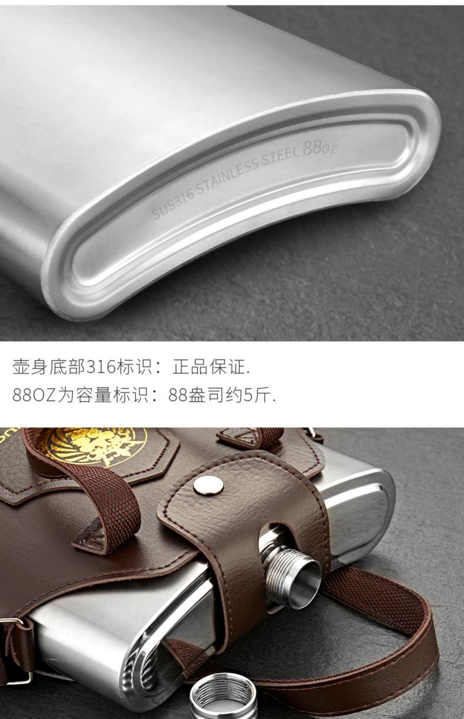 Botella de vino rusa grande de acero inoxidable 316, portátil, de 5 a 2,5 kg, espesada con licor, para exteriores, plana y portátil.