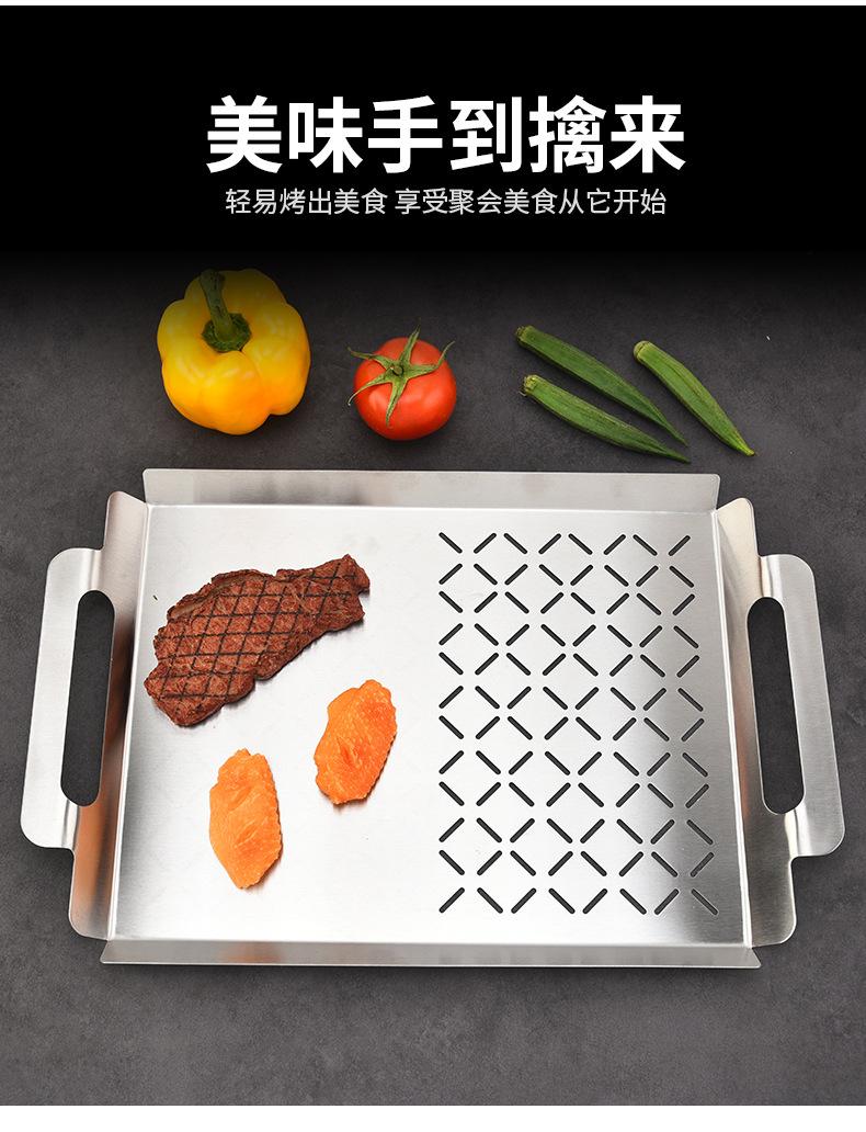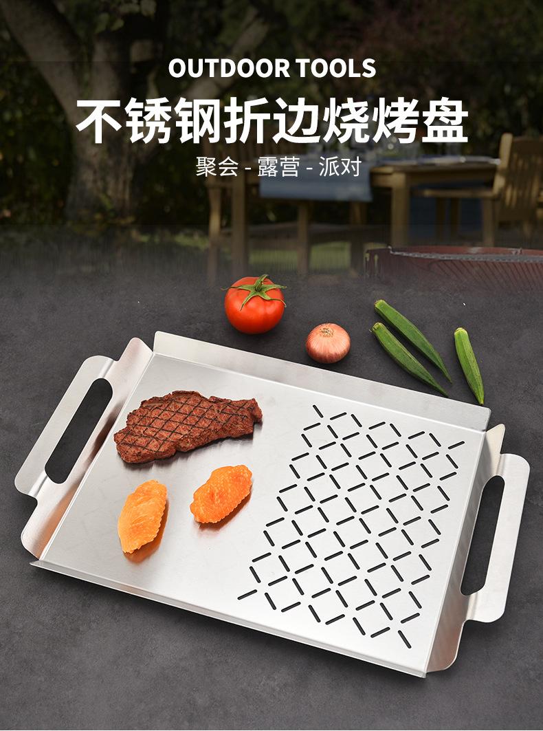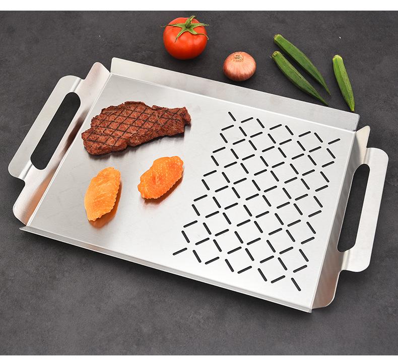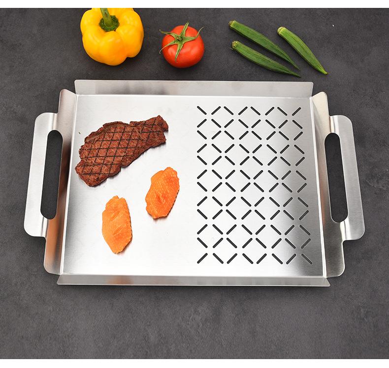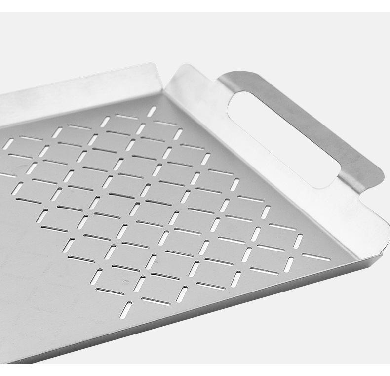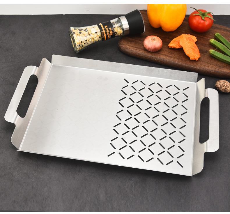 Plato para Barbacoa de Acero Inoxidable al por Mayor Herramienta Portátil para Barbacoa al Aire Libre Plato para Parrilla con Bordes Cuádruples y Diseño Hueco para Uso en Exteriores