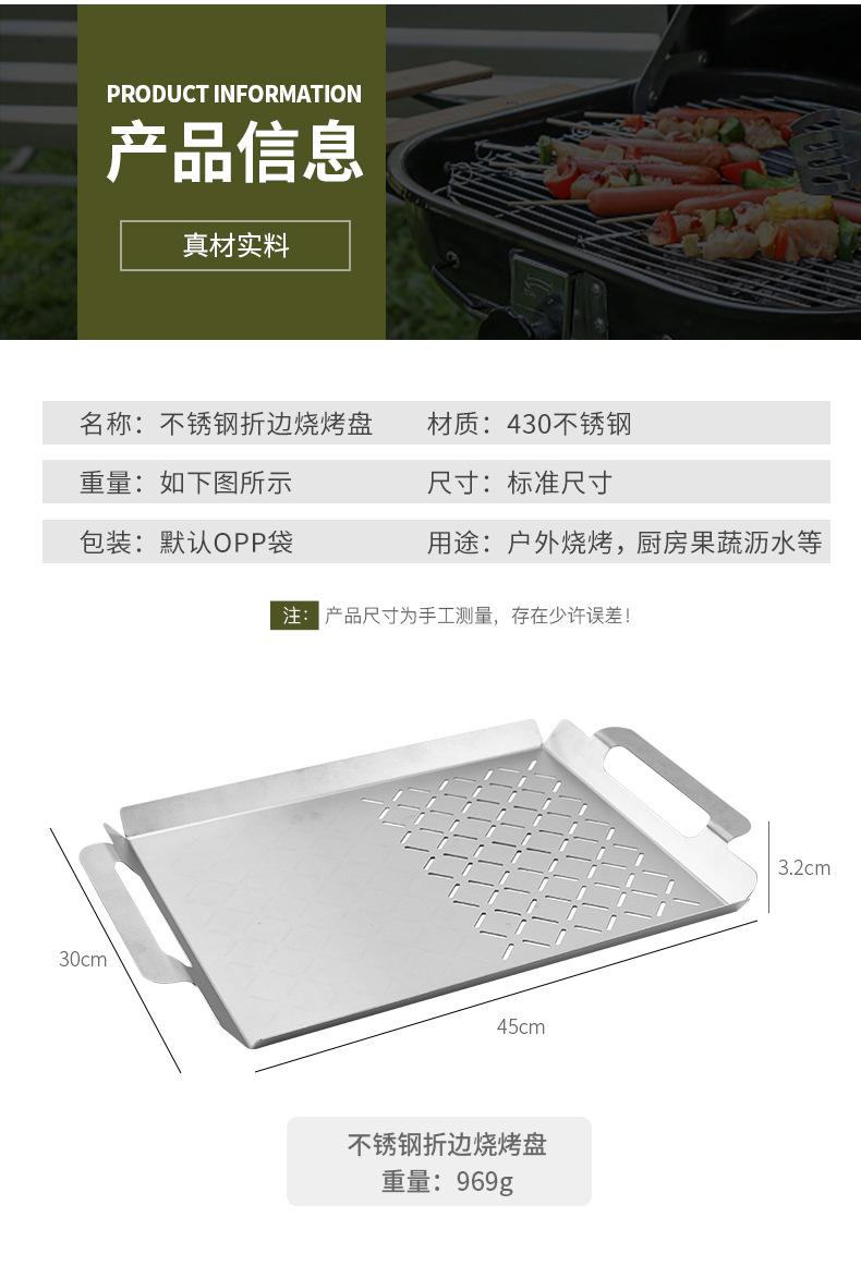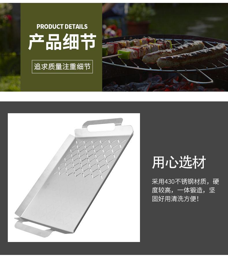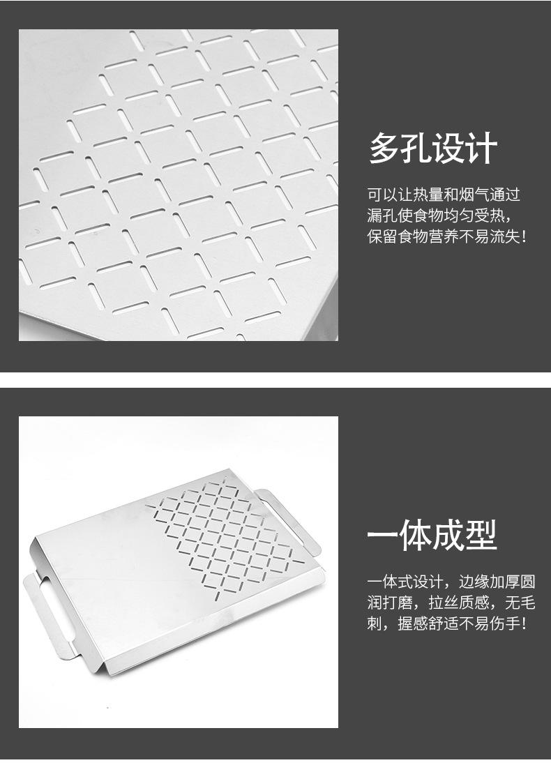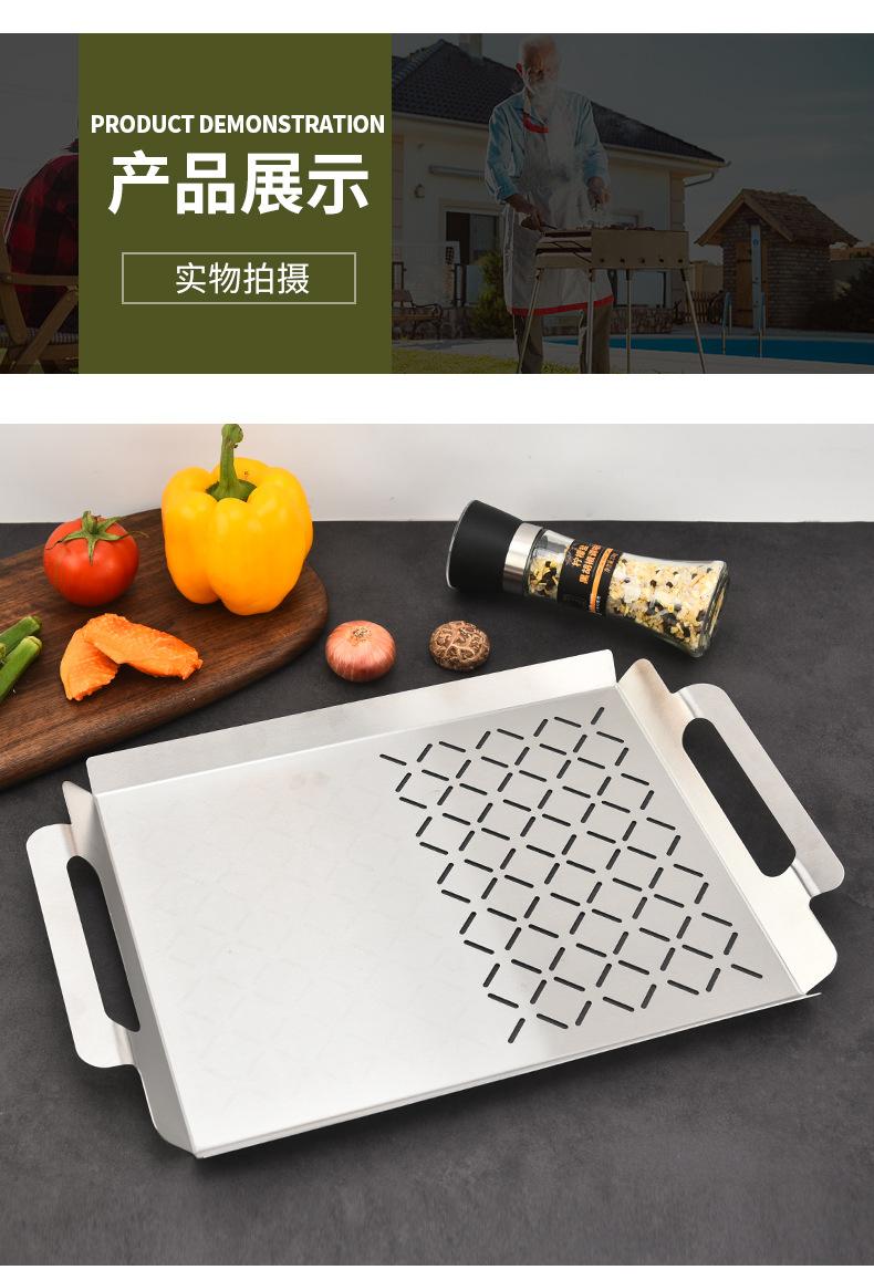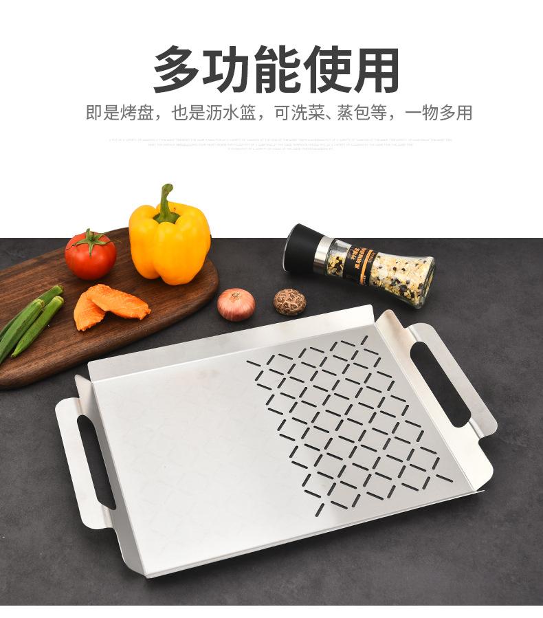 Plato para Barbacoa de Acero Inoxidable al por Mayor Herramienta Portátil para Barbacoa al Aire Libre Plato para Parrilla con Bordes Cuádruples y Diseño Hueco para Uso en Exteriores