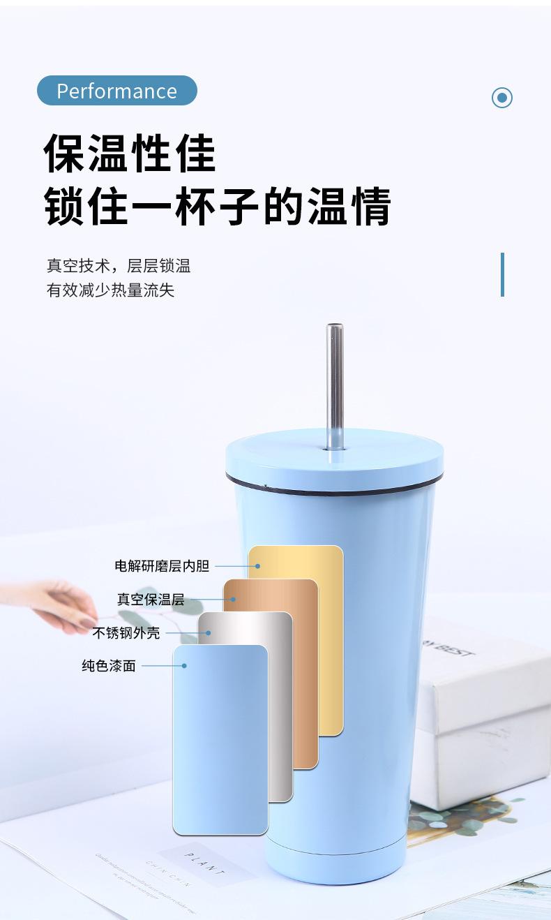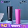 Vaso de Pajita Popular Transfronterizo de Acero Inoxidable 304 de Gran Capacidad Vaso Aislado al Vacío de Doble Capa Vaso para Café de Alto Valor Coche