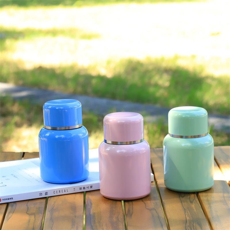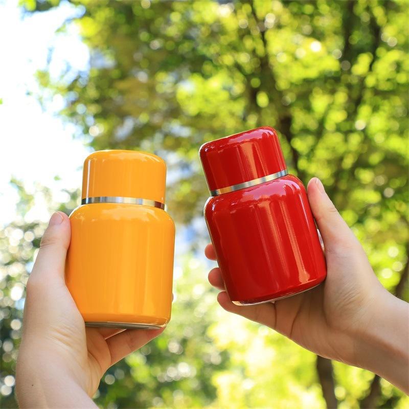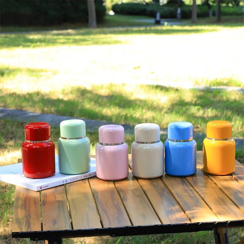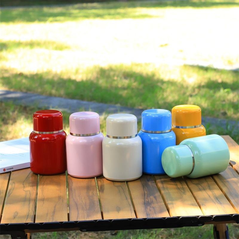 Termo portátil de doble capa de acero inoxidable 316, de color sólido, de alta calidad, con mini taza de bolsillo, simple y bonita.