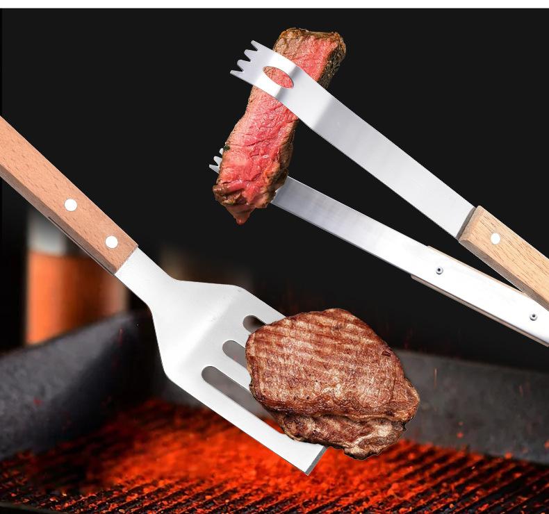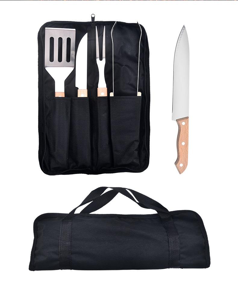 Juego de Parrilla de Acero Inoxidable al por Mayor de 4 Piezas Barbacoa Bistec Combinación Bolsa de Tela Juego de Herramientas para Barbacoa Juego de Parrilla para Barbacoa