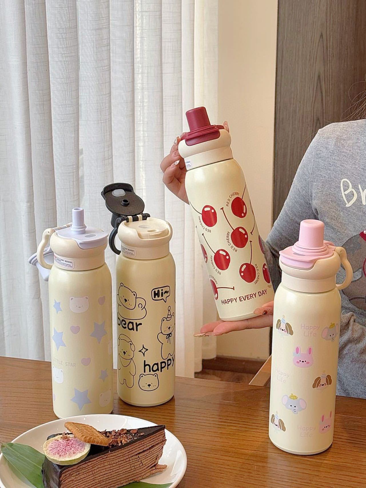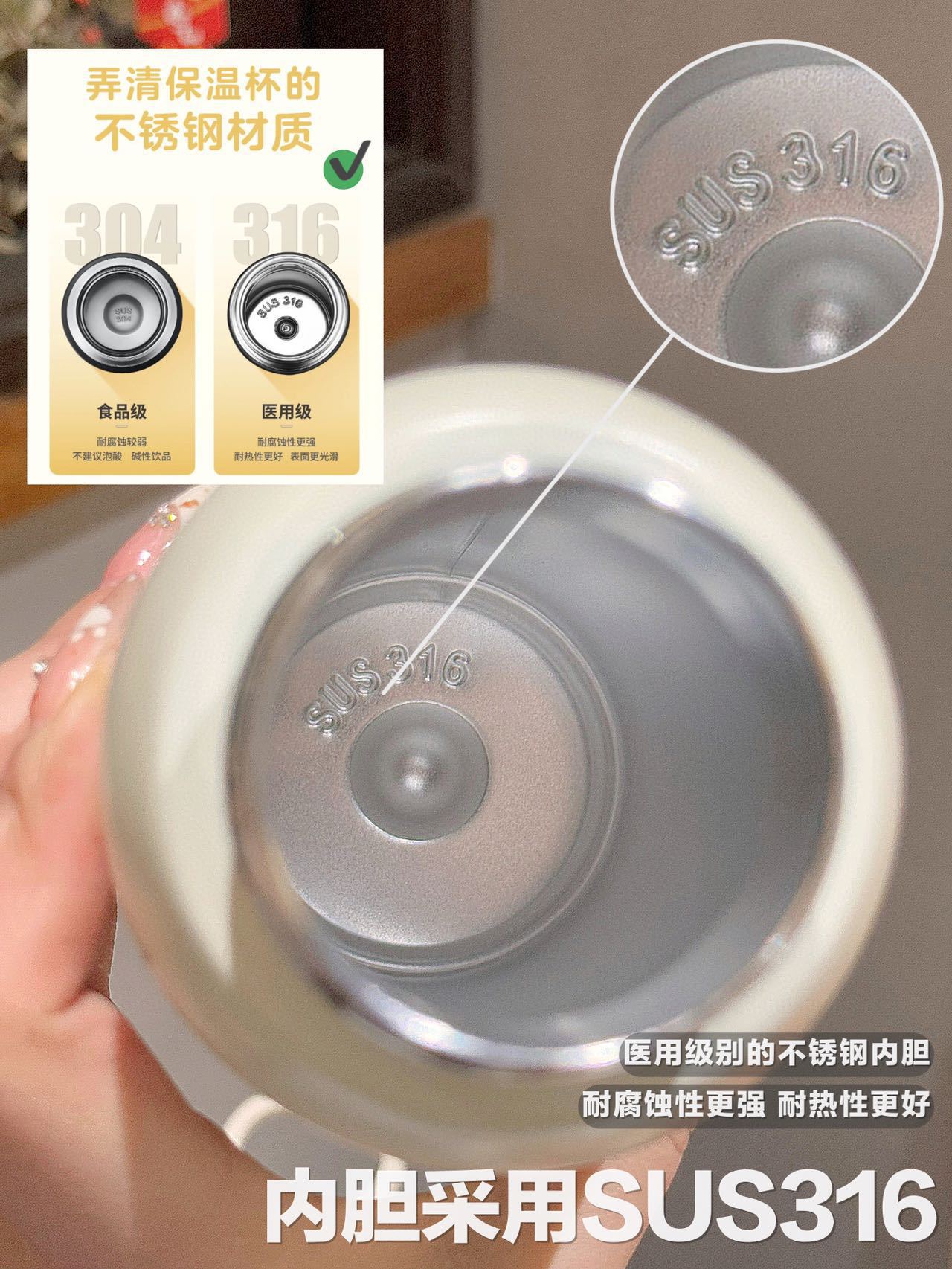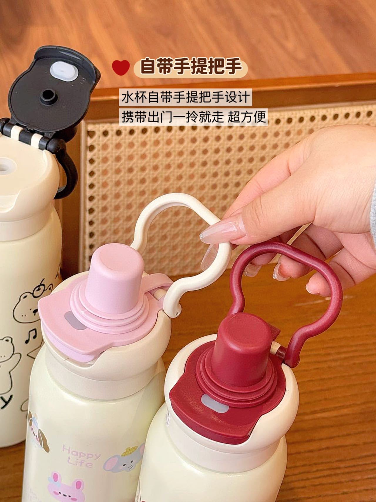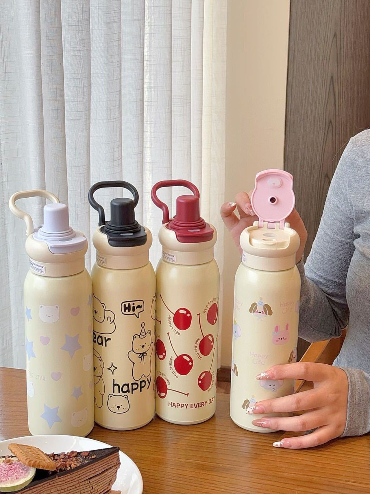 Termo de acero inoxidable 316, bonito vaso de agua de gran capacidad con asa, portátil, con preservación del calor, para estudiantes, doble para beber.