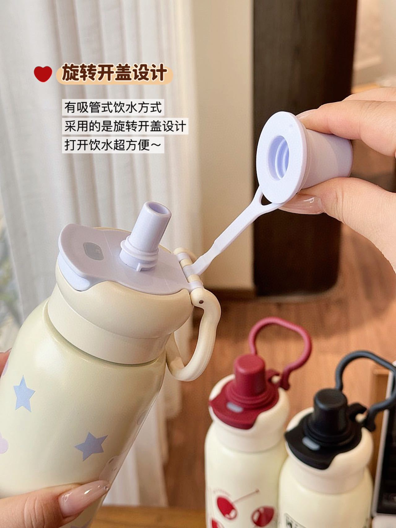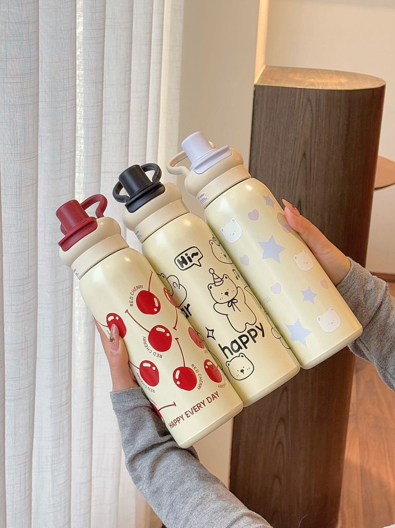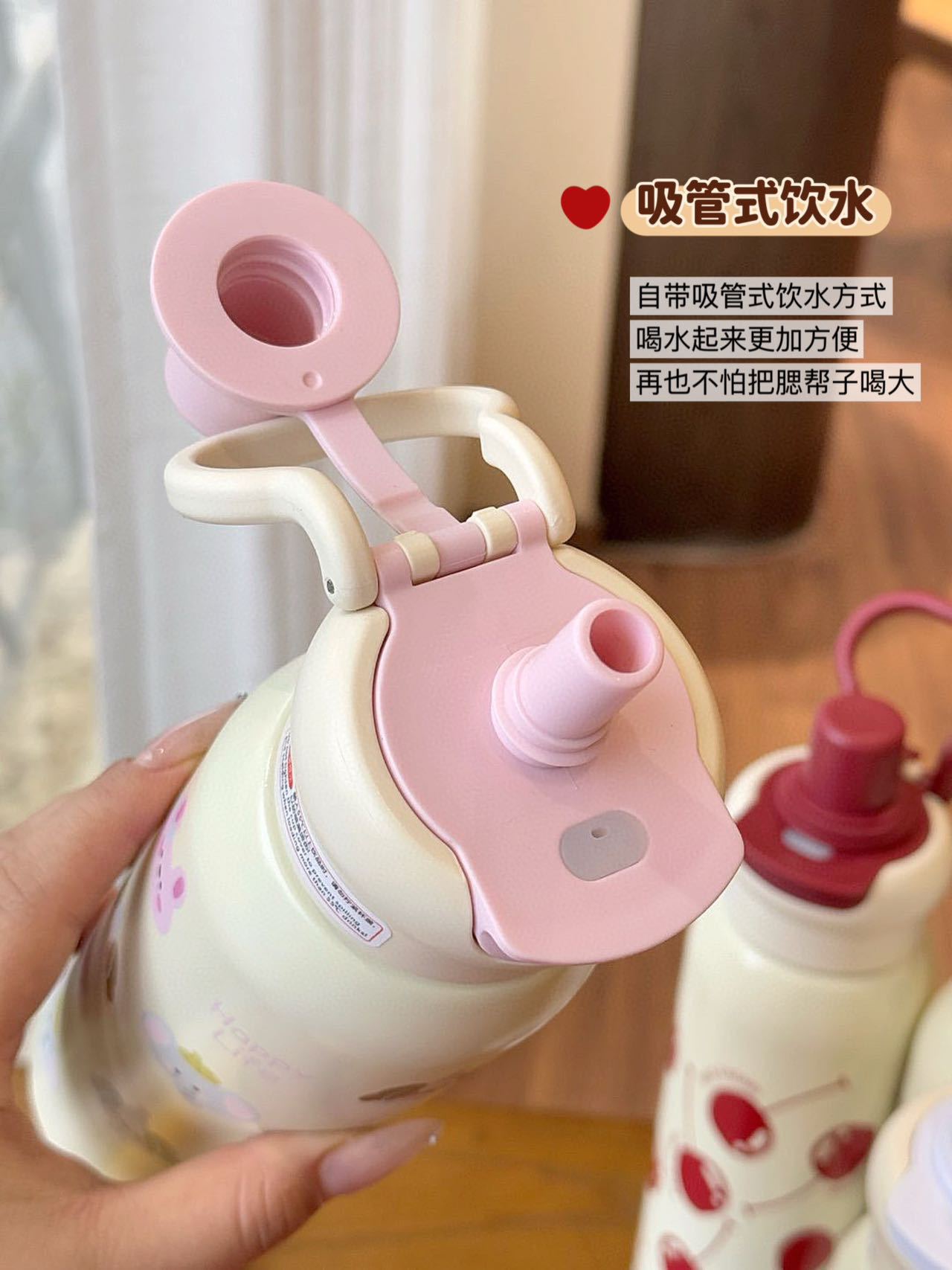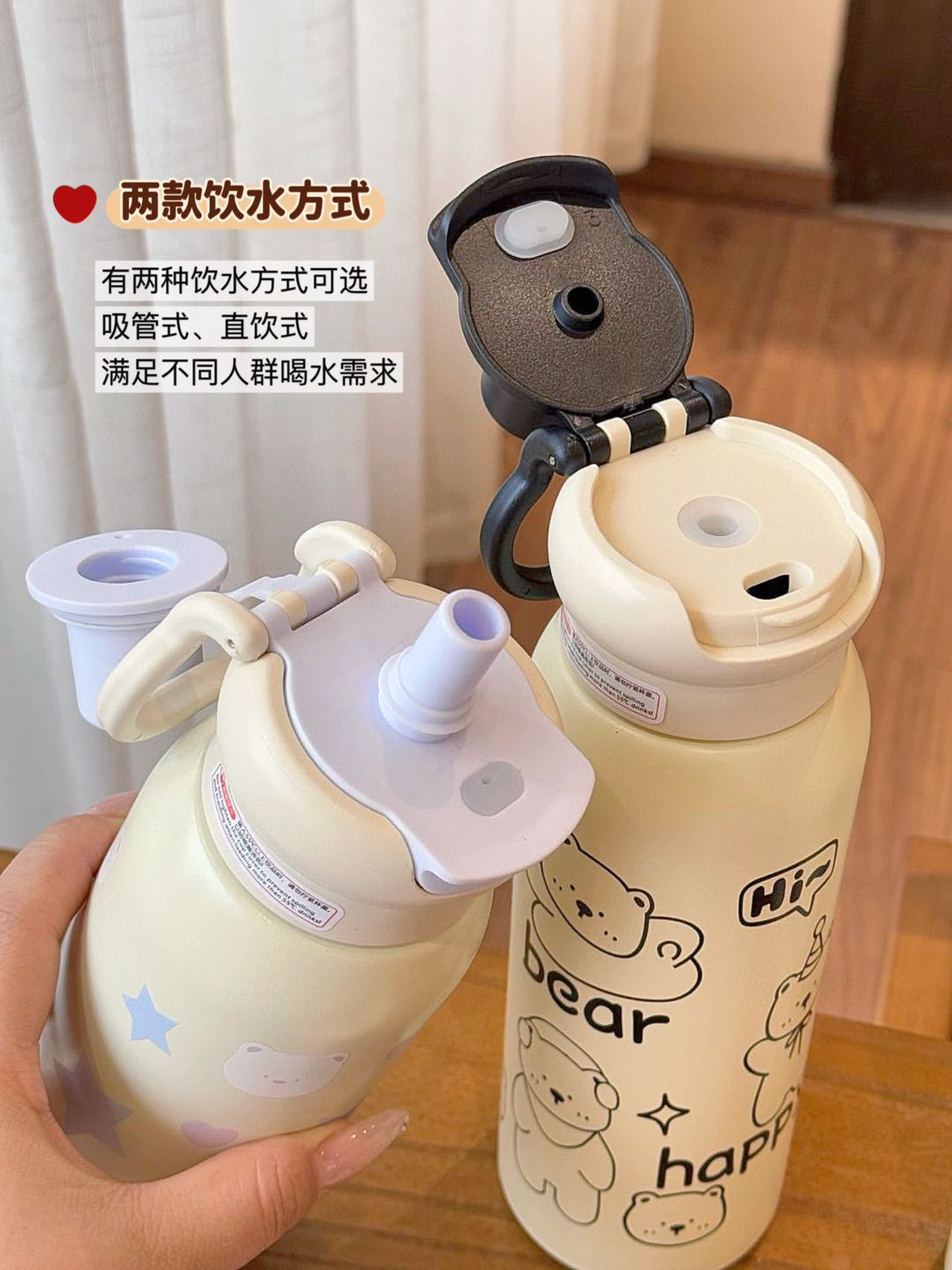 Termo de acero inoxidable 316, bonito vaso de agua de gran capacidad con asa, portátil, con preservación del calor, para estudiantes, doble para beber.