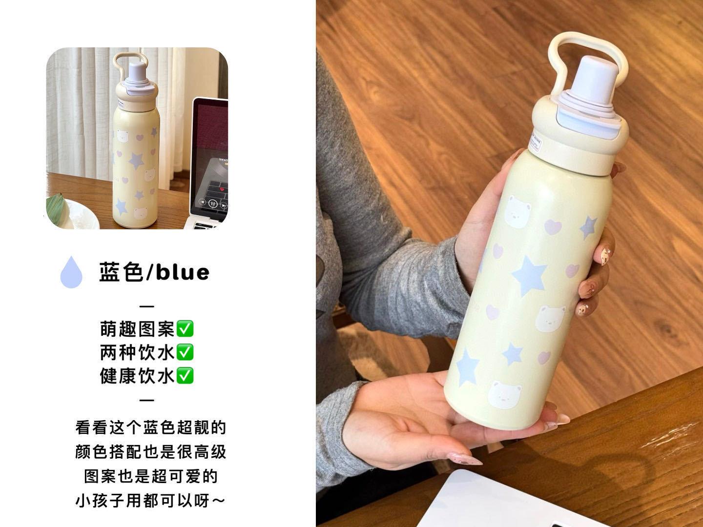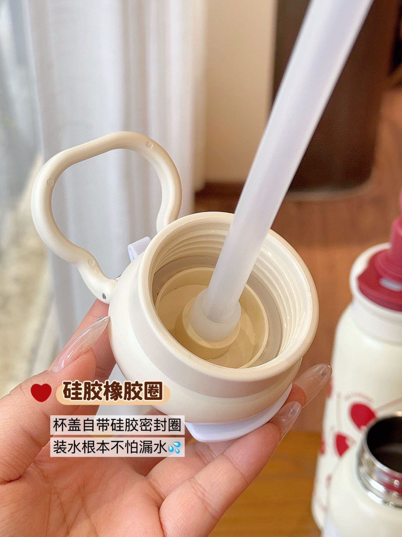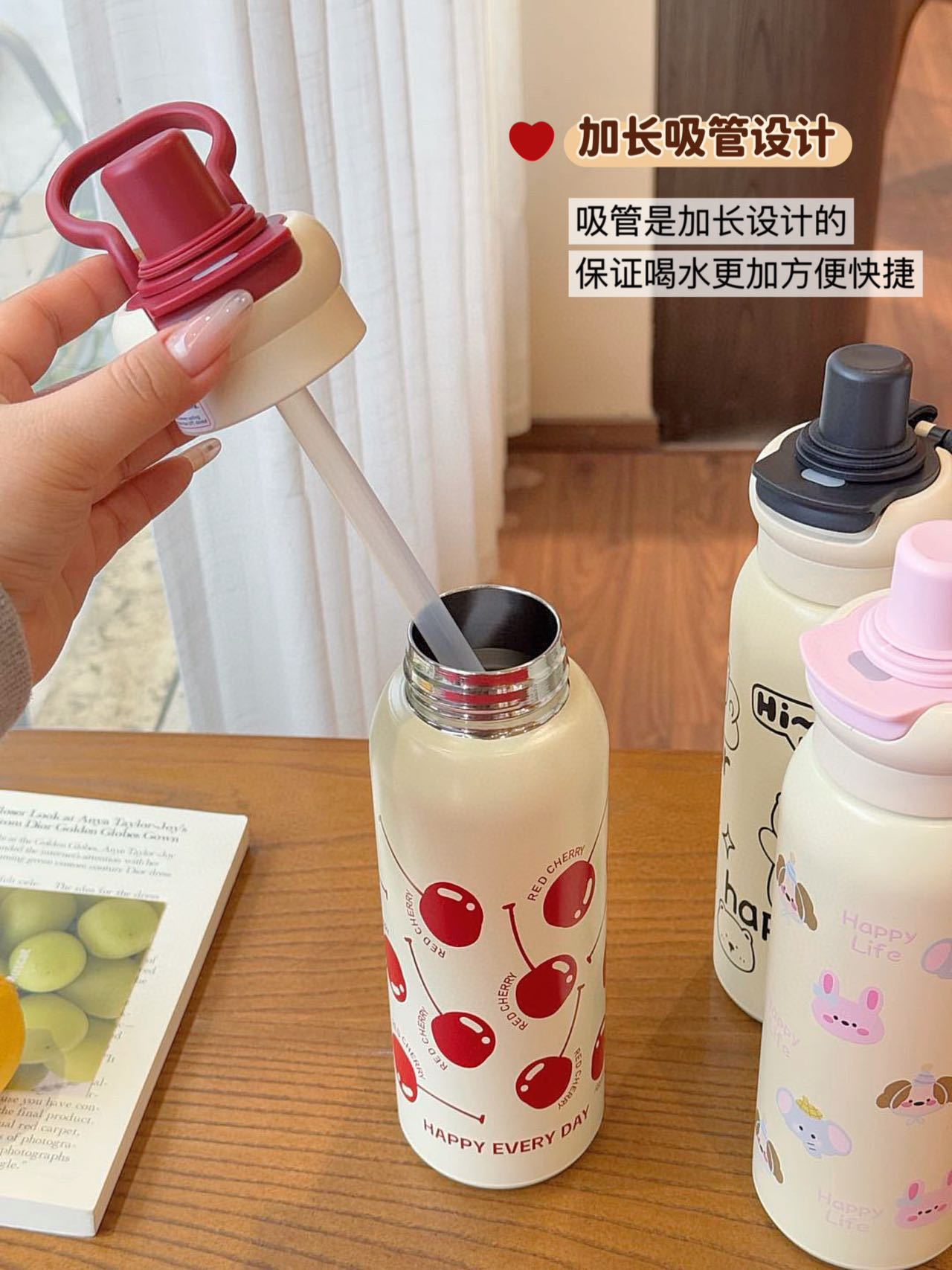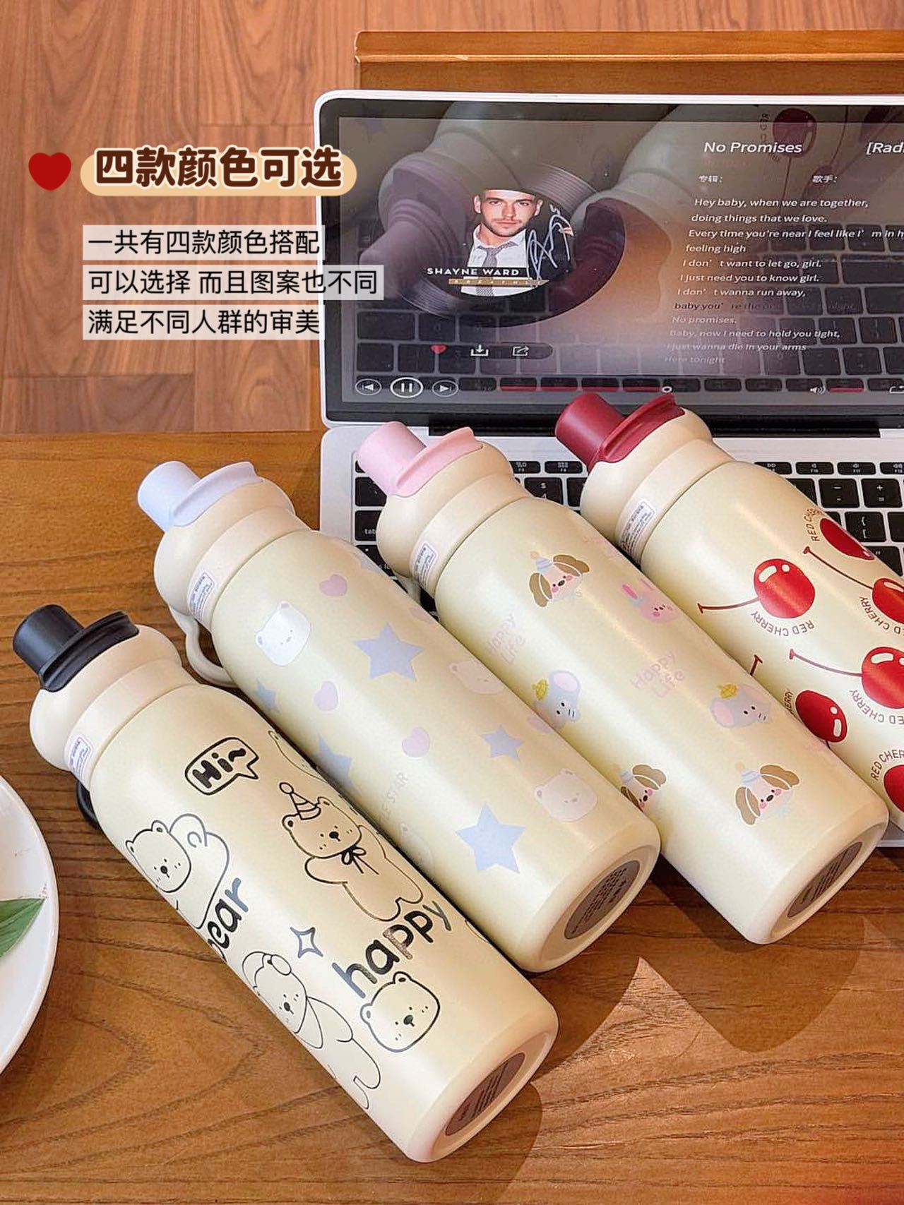 Termo de acero inoxidable 316, bonito vaso de agua de gran capacidad con asa, portátil, con preservación del calor, para estudiantes, doble para beber.