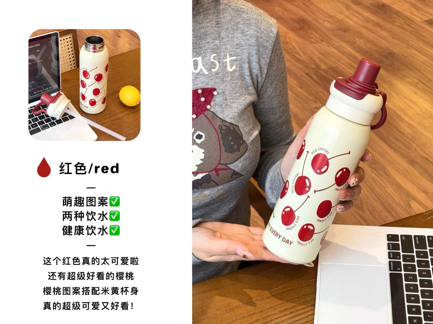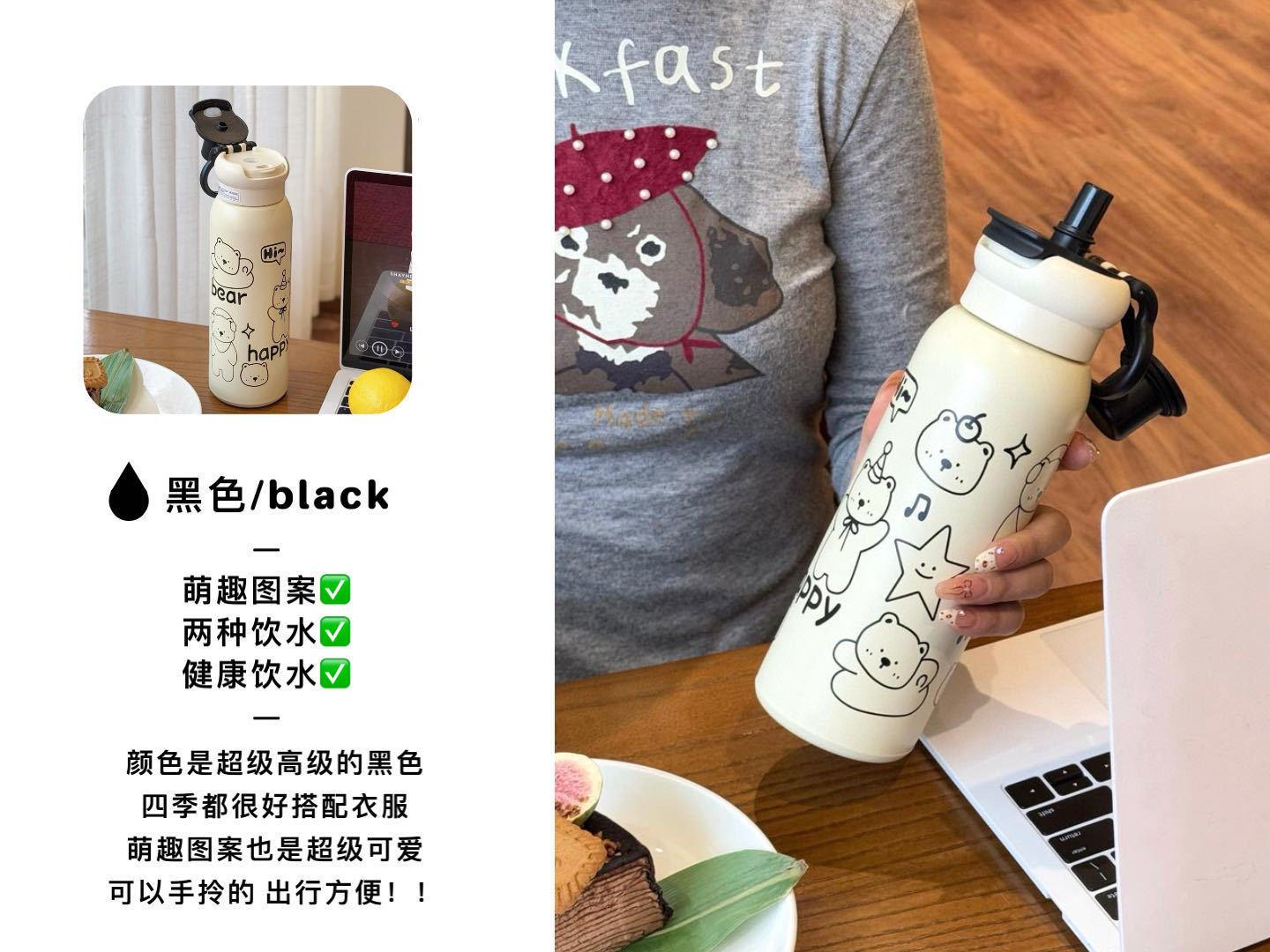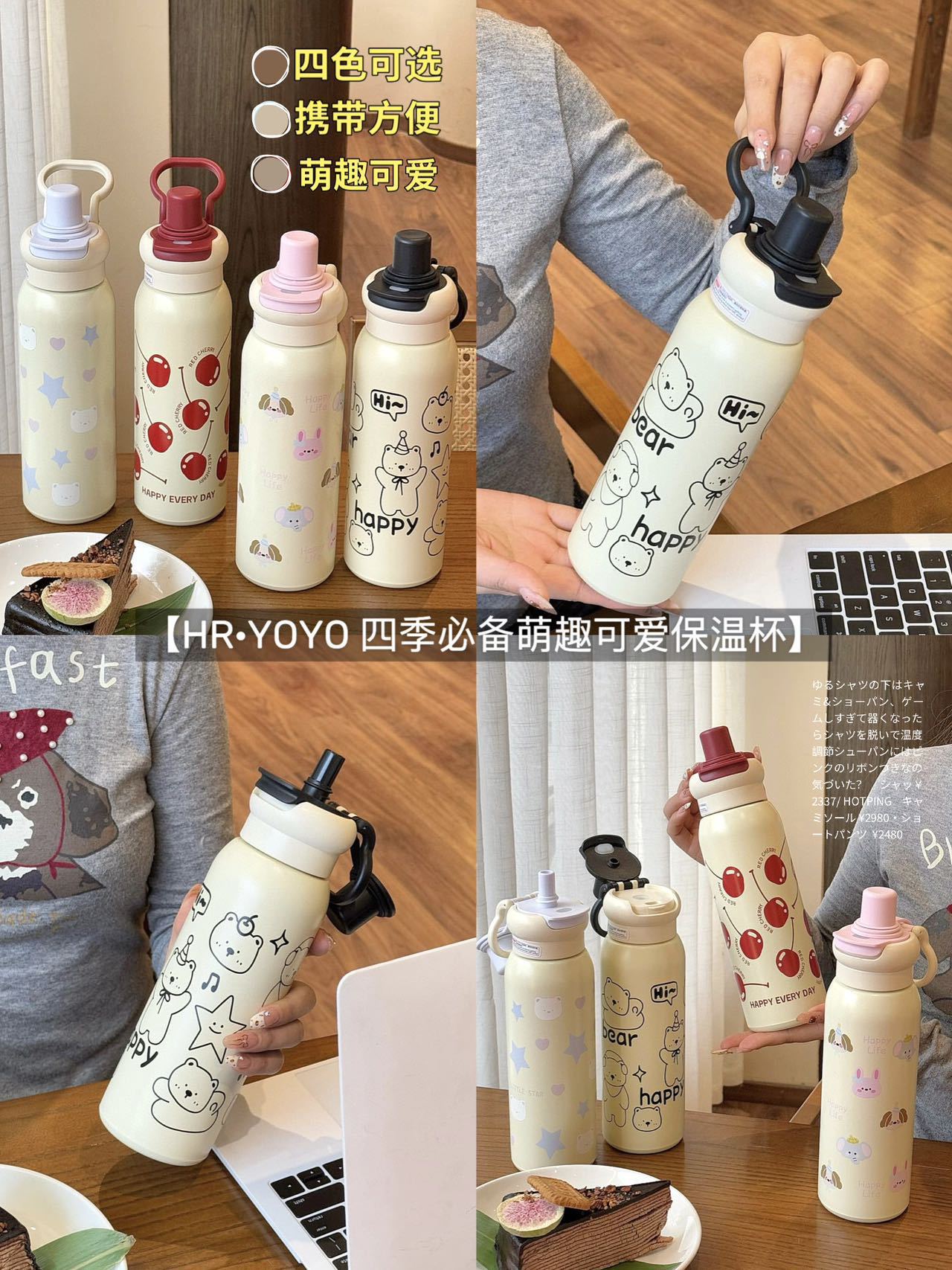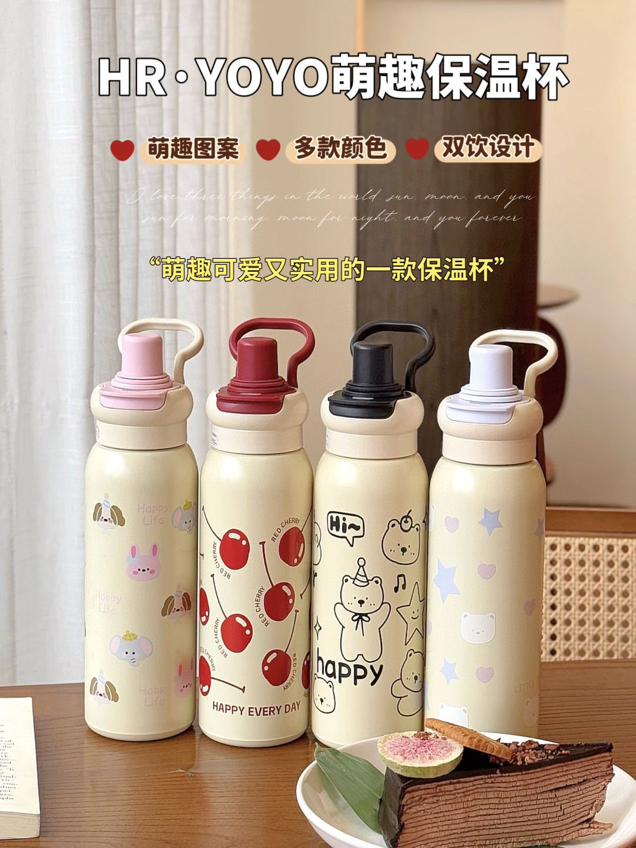Termo de acero inoxidable 316, bonito vaso de agua de gran capacidad con asa, portátil, con preservación del calor, para estudiantes, doble para beber.