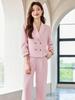 Traje corto rosa de alta gama de otoño 24, ropa de negocios de moda, pantalones casuales europeos y americanos, traje de dos piezas