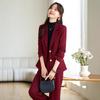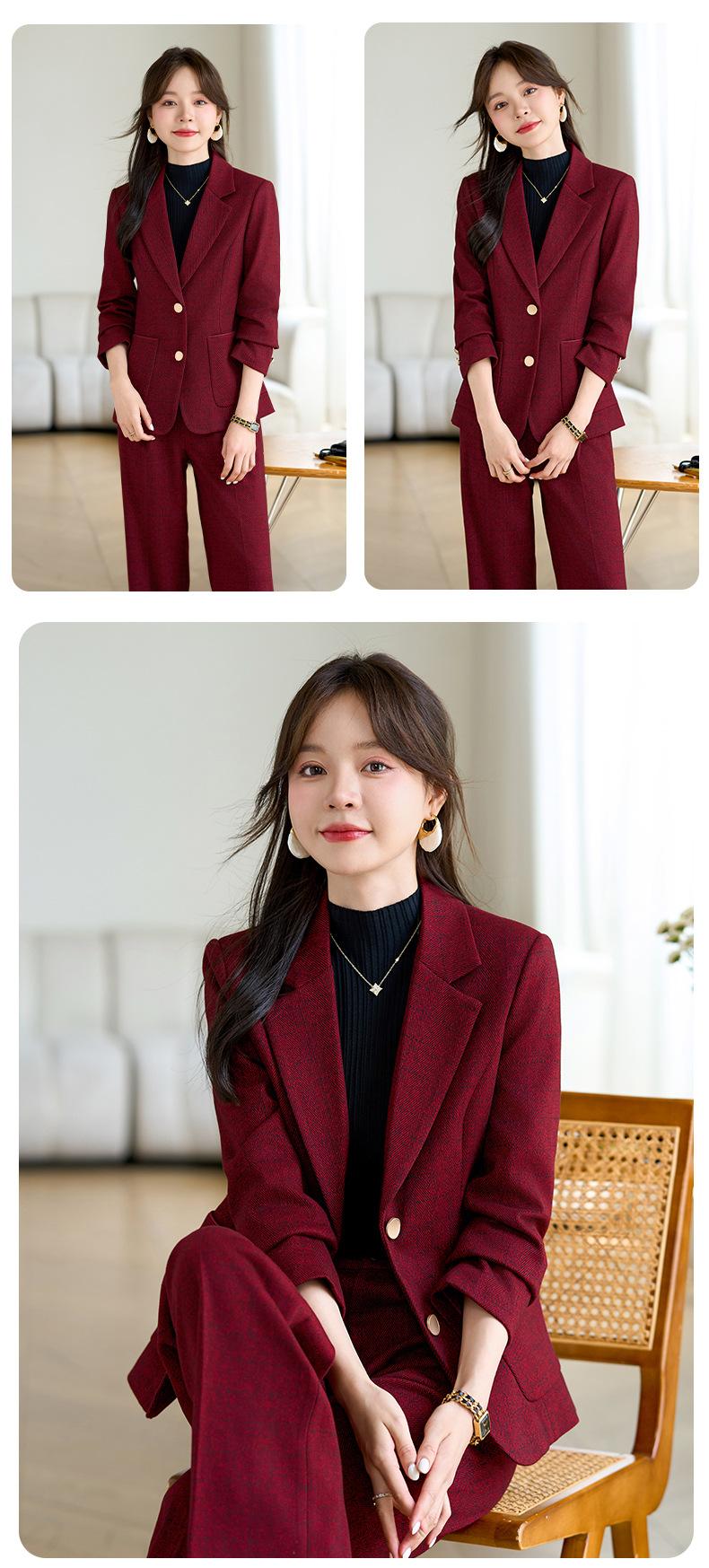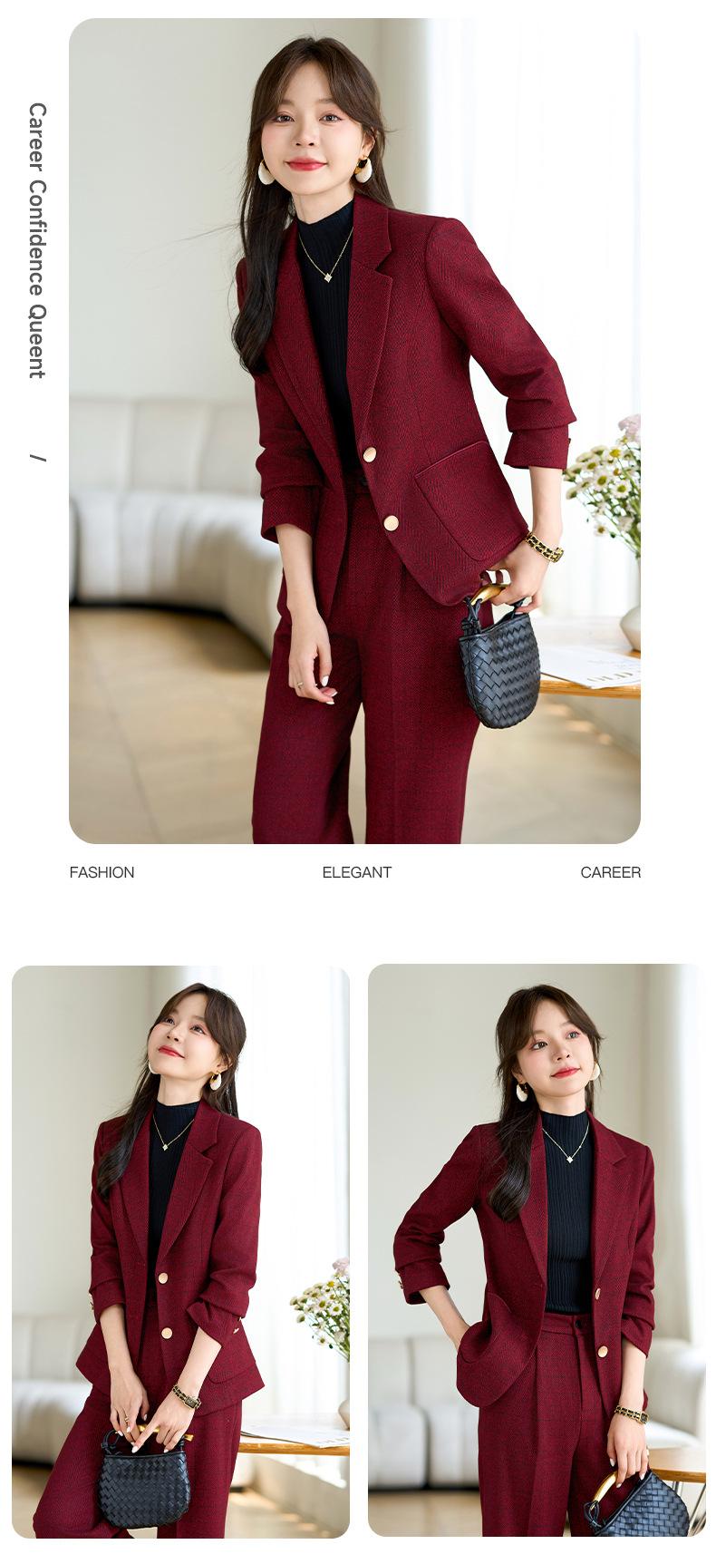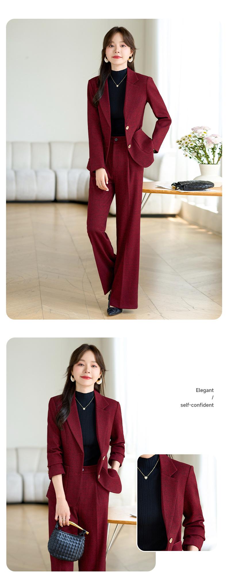 Traje de dos piezas de alta gama para mujer, chaqueta, pantalones y cuello pequeño, color rojo, primavera, otoño e invierno, 2024