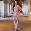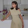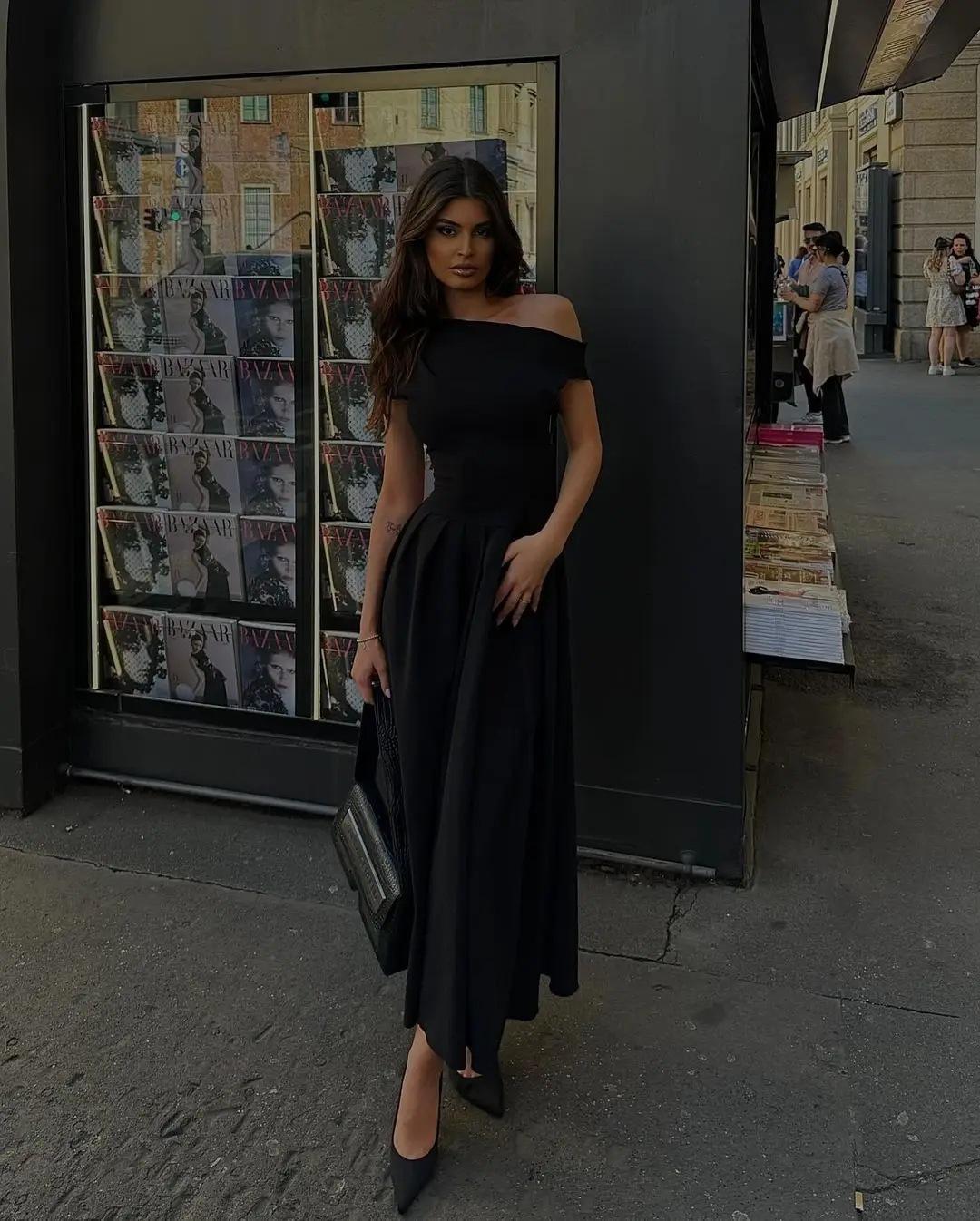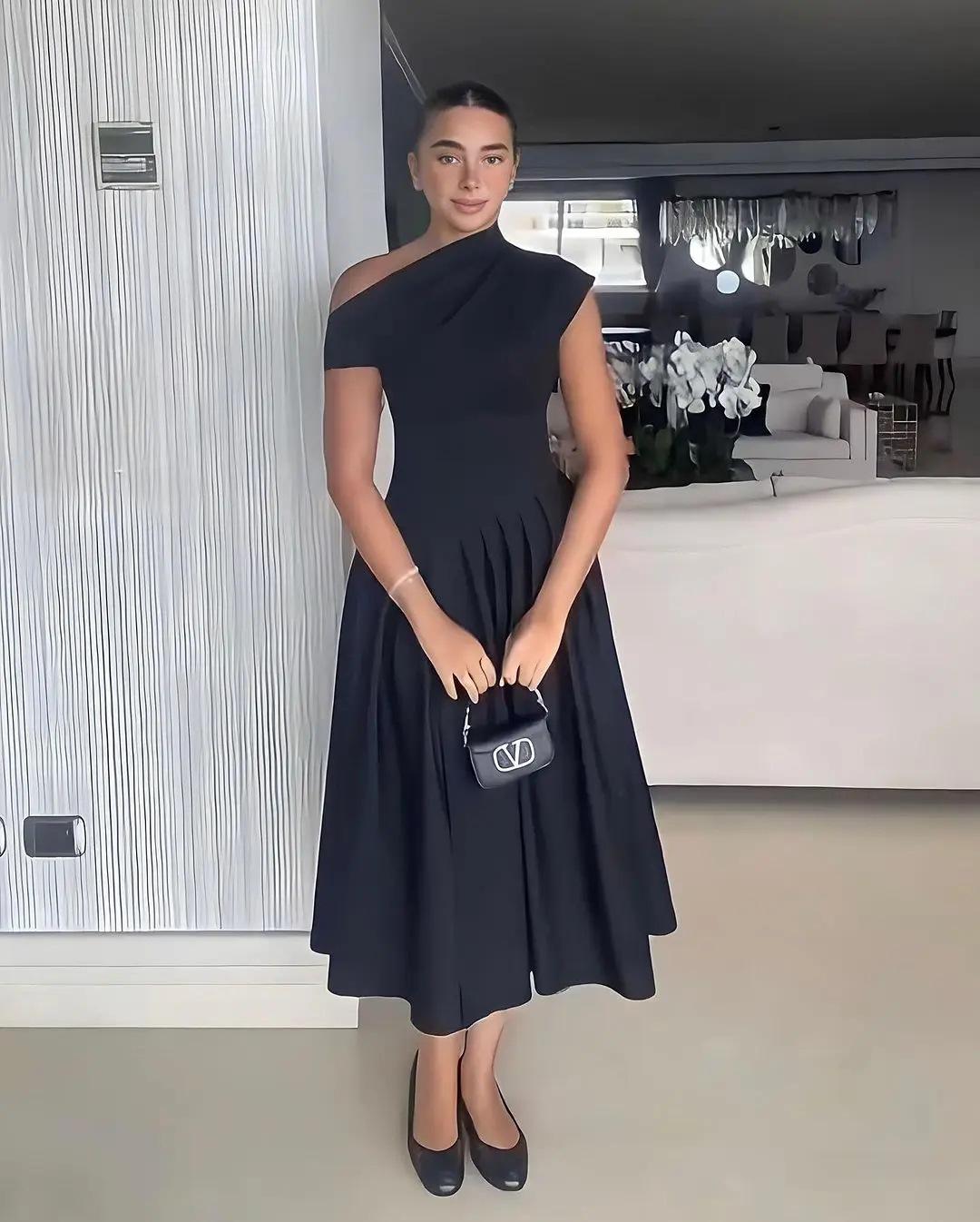 Primavera 2025 Nuevo Amazon Europeo y Americano para Mujer Elegante Elegante Cuello Redondo Hombro Inclinado Moda Vestido Casual