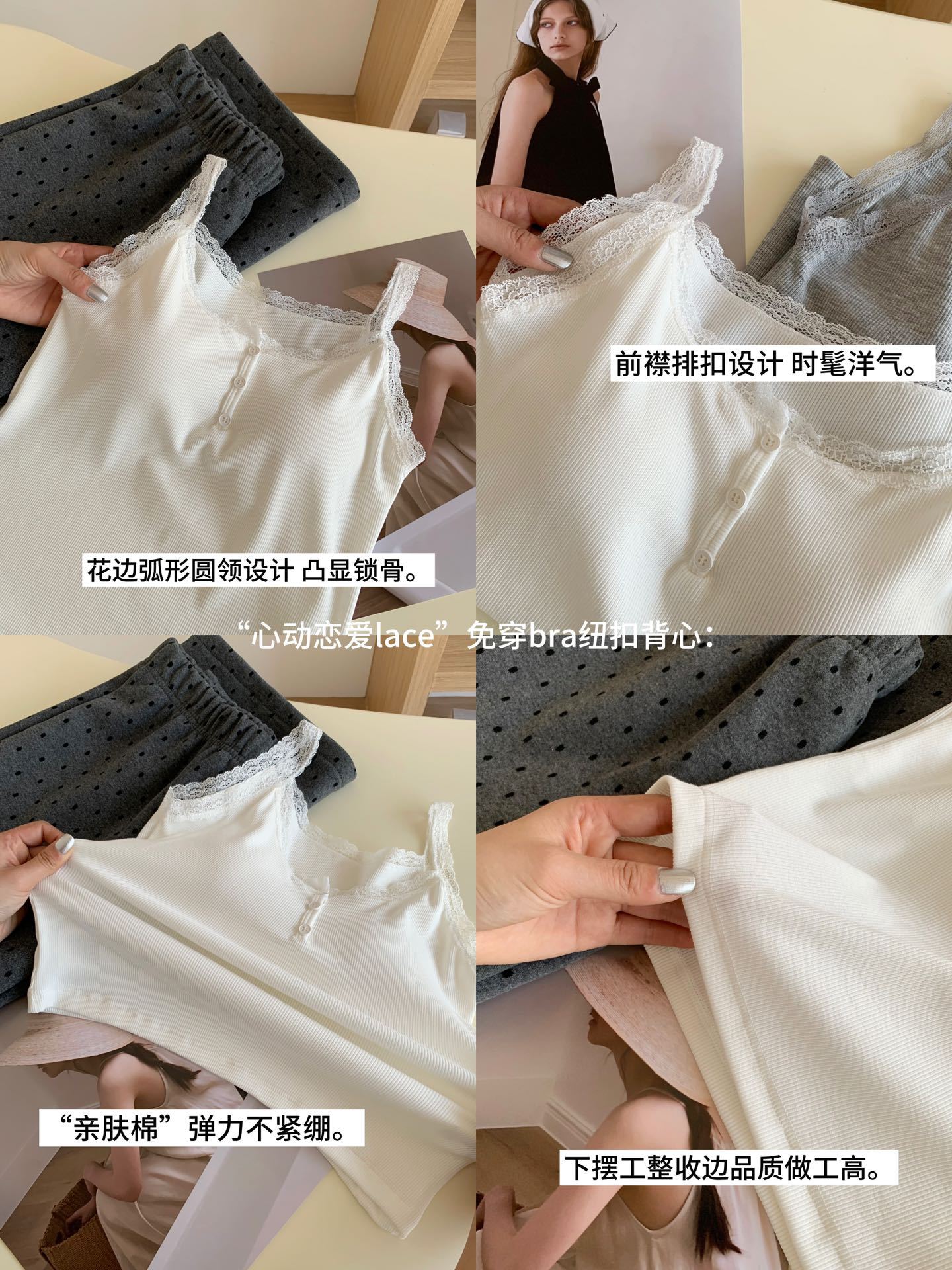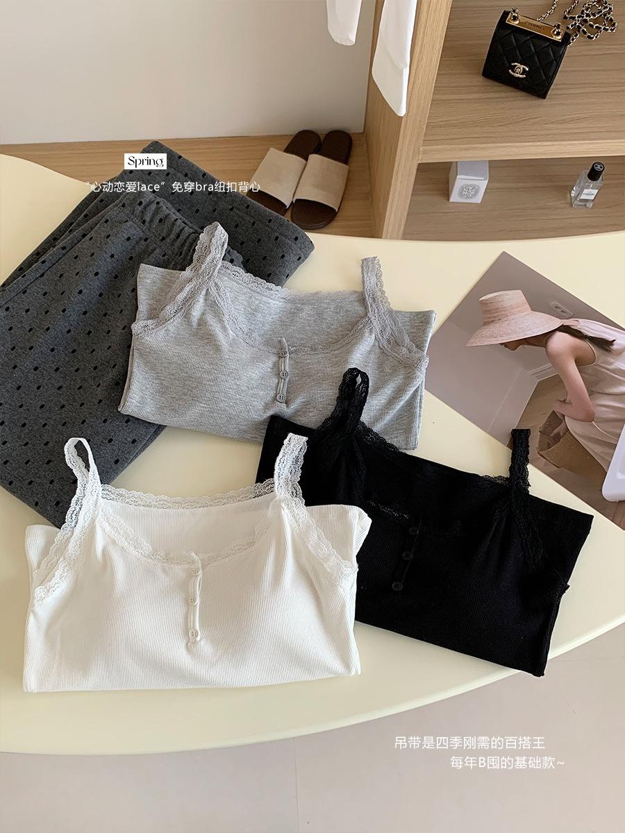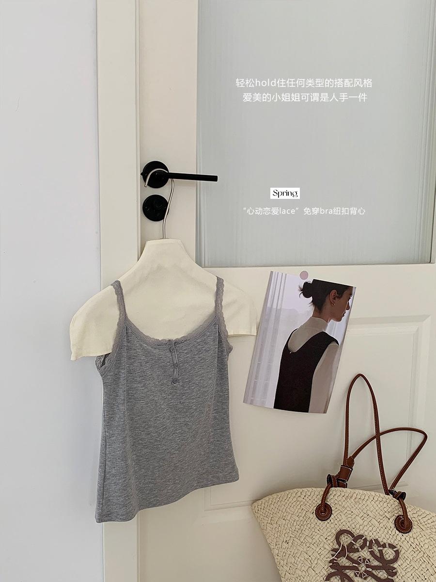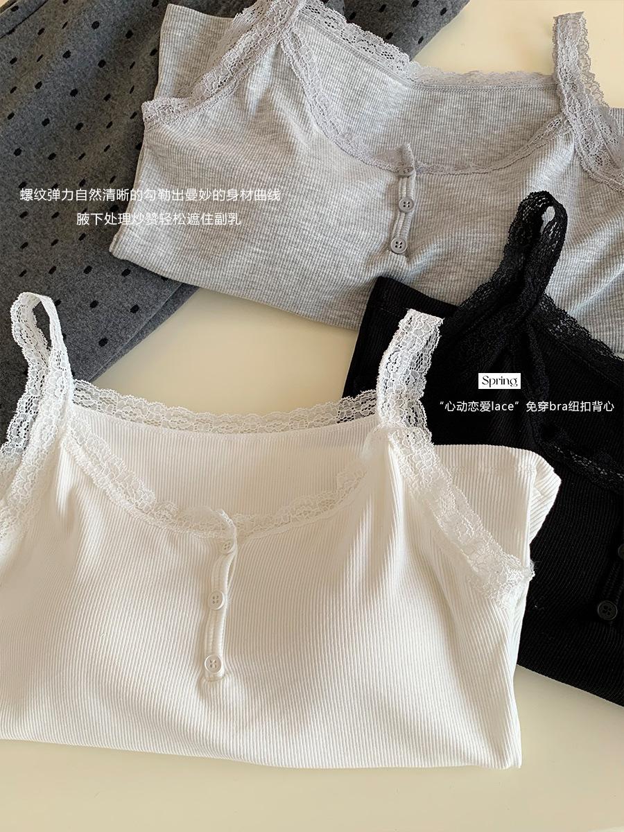 Camisola de encaje con botones para mujer, ropa exterior de primavera y verano, ropa interior sexy, parte inferior, Pure Desire Spice Girl, borde cruzado con almohadilla para el pecho