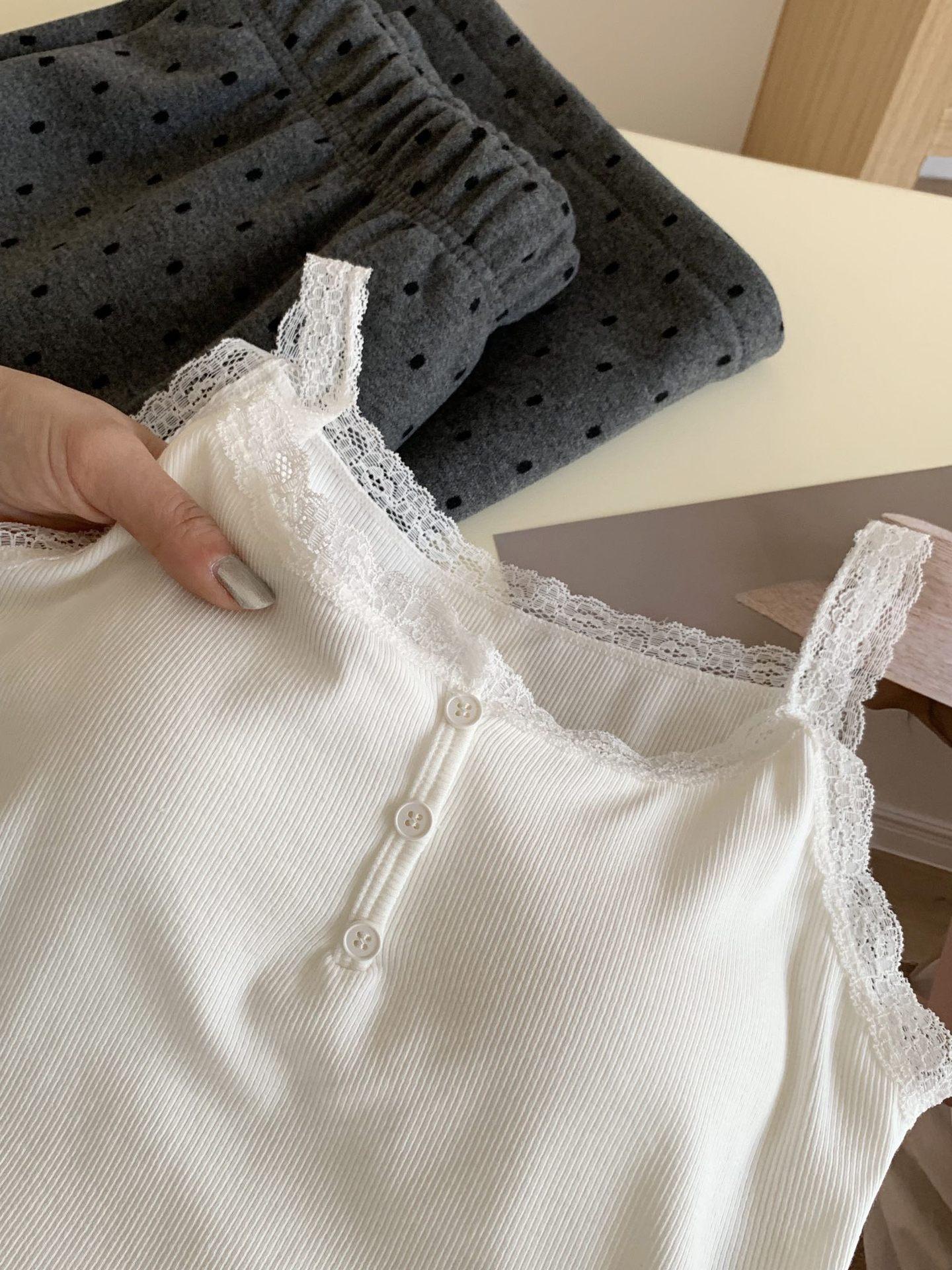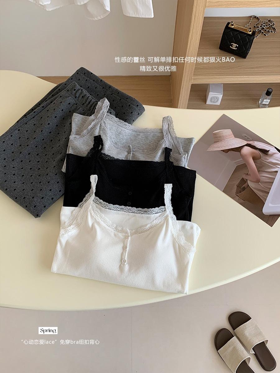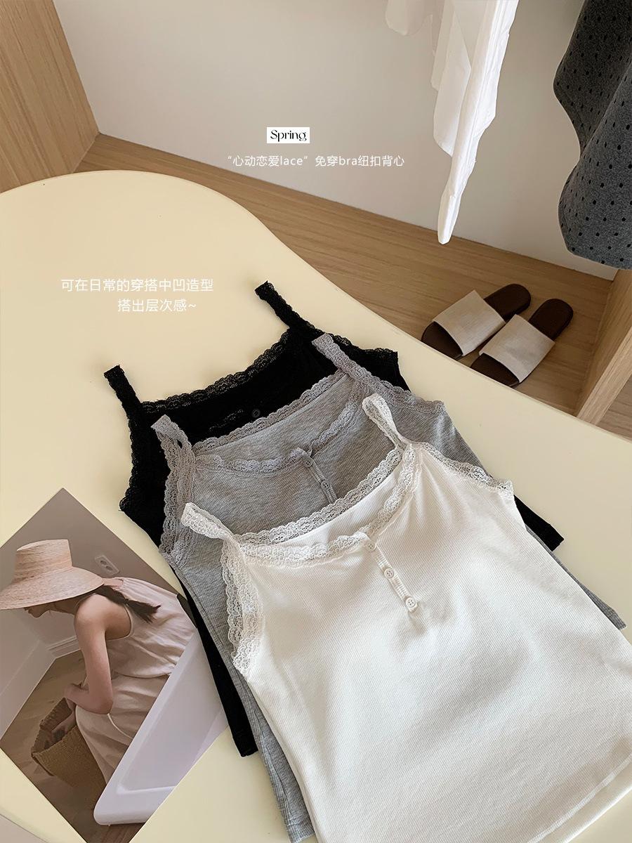 Camisola de encaje con botones para mujer, ropa exterior de primavera y verano, ropa interior sexy, parte inferior, Pure Desire Spice Girl, borde cruzado con almohadilla para el pecho