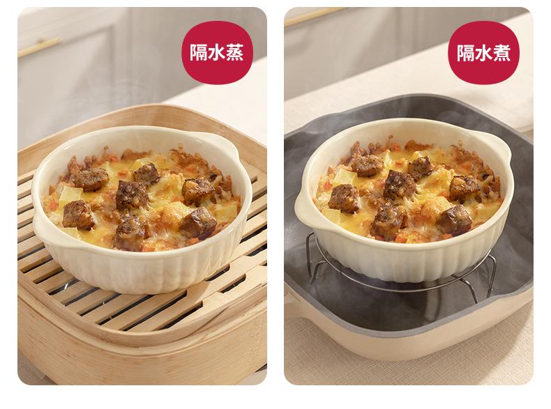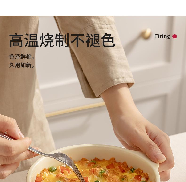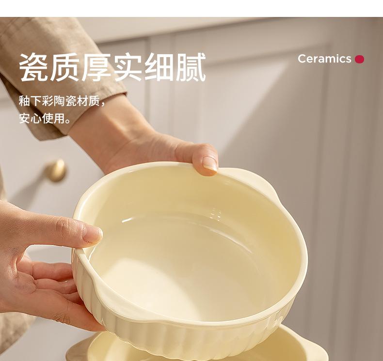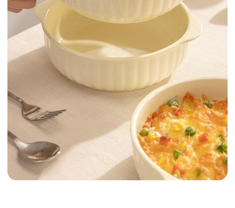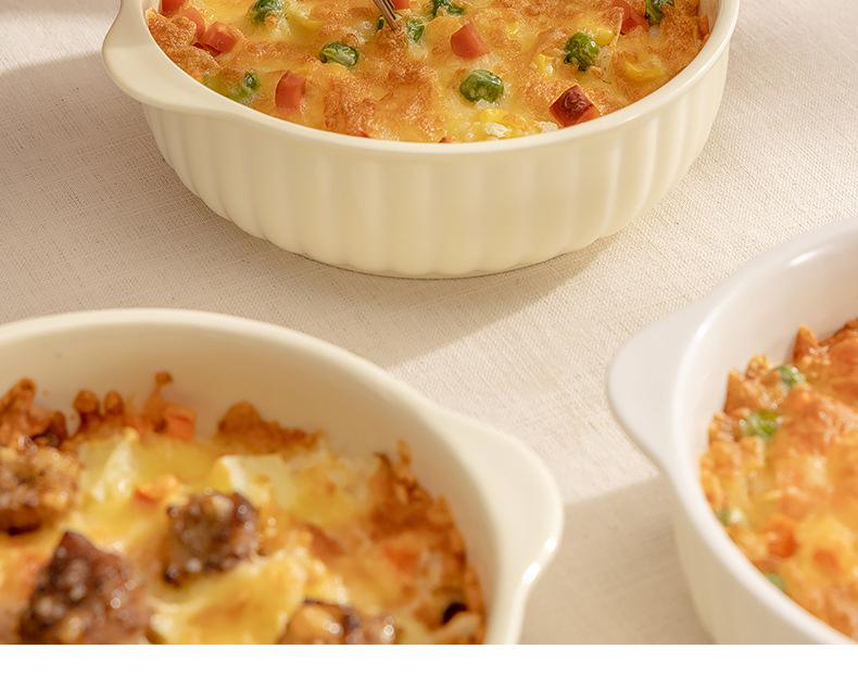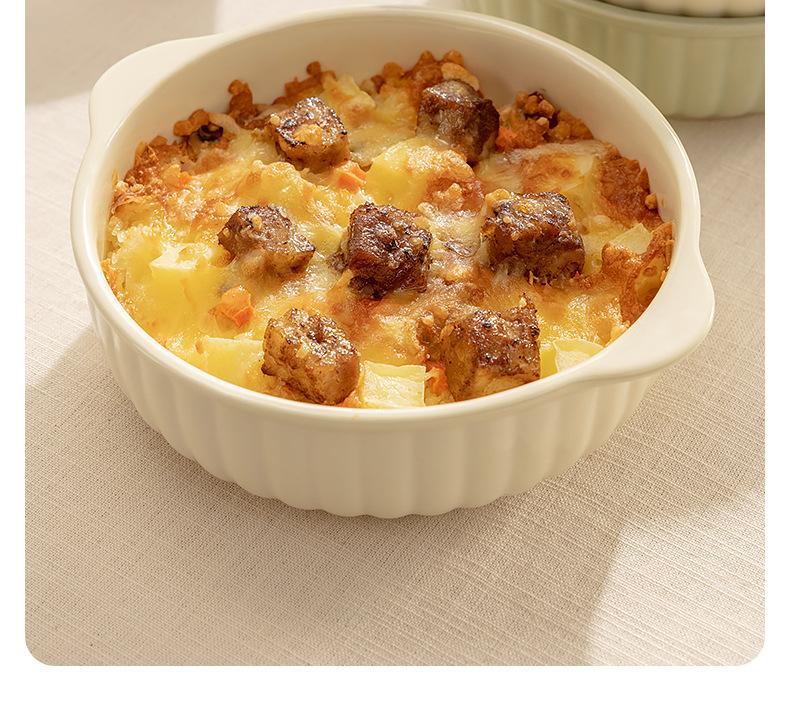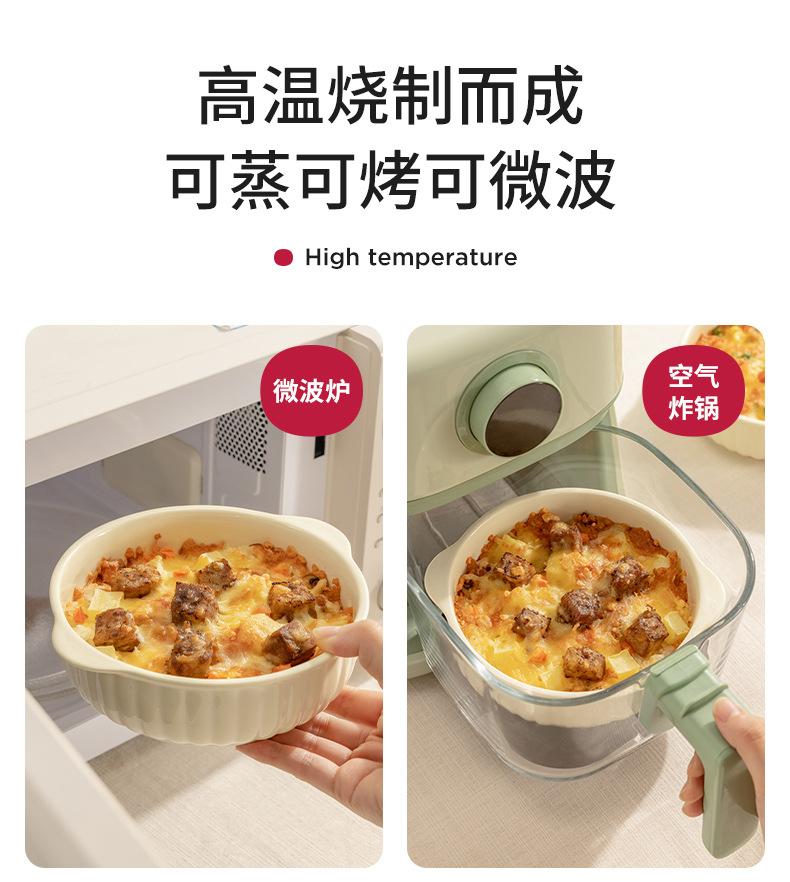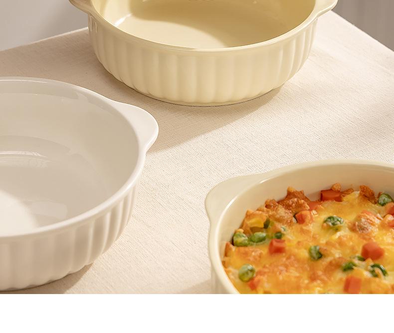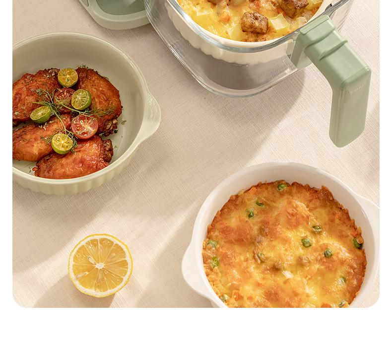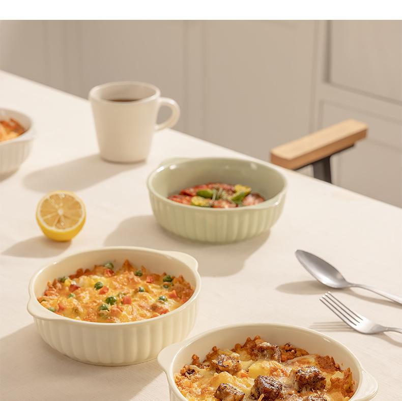 Cream white - 7.5inch round baked bowl, Creamy yellow - 7.5inch round double-eared baking bowl, Mint green- 7....