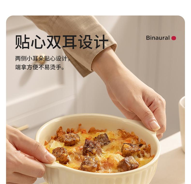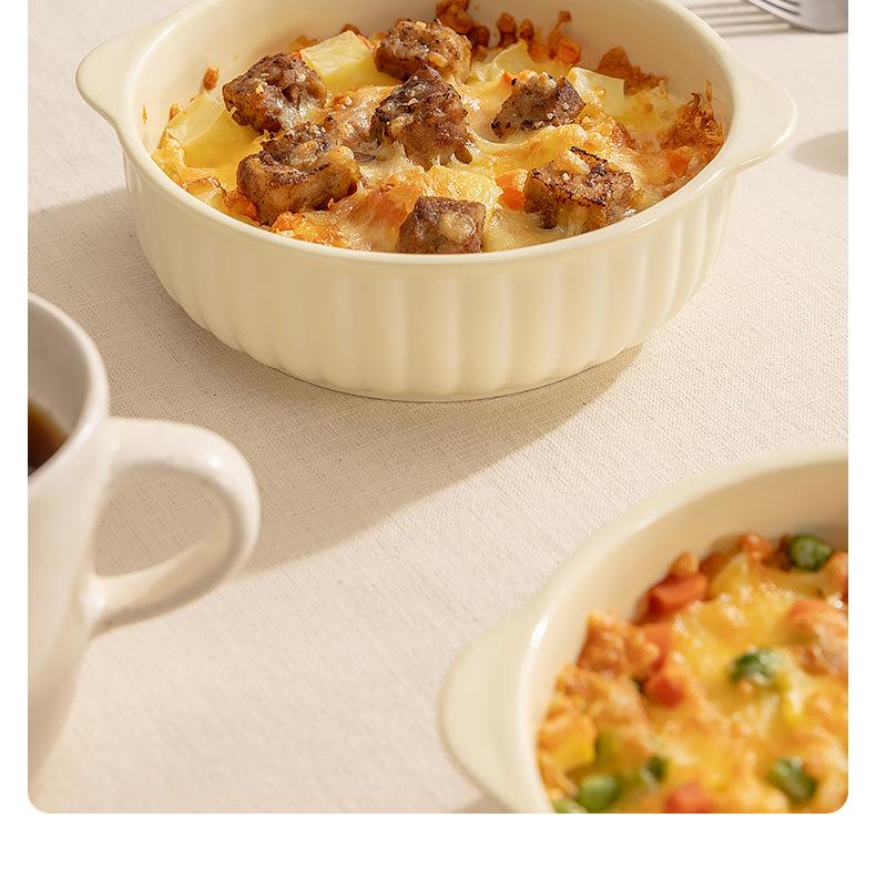 Tazón para Horno de Microondas Plato para Arroz Horneado Tazón Hogar Cerámica Binaural Freidora de Aire Tazón para Hornear Plato para Hornear Horno Tazón para Calentar
