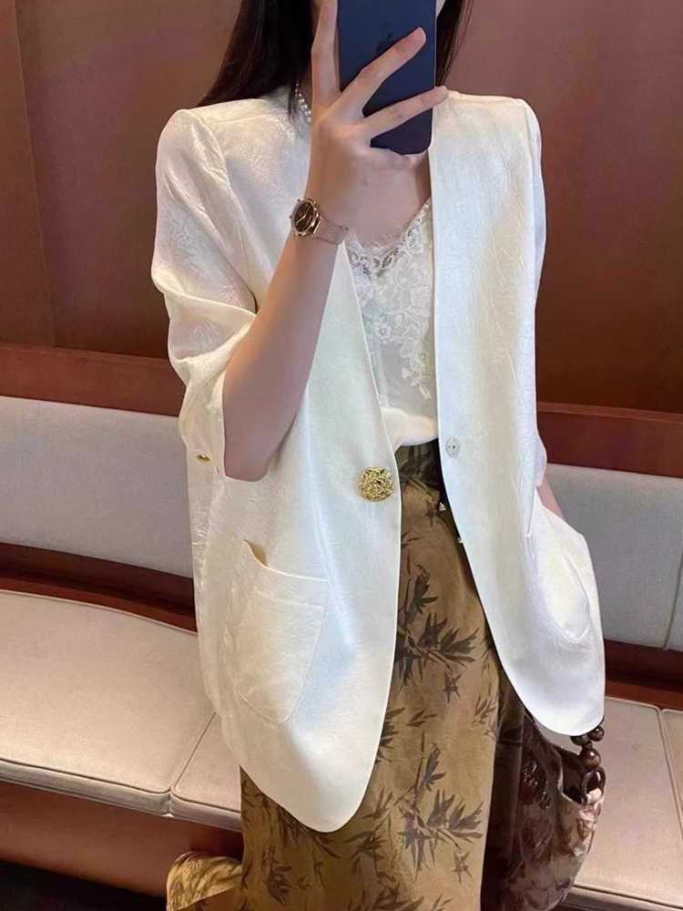 Temperamento Alto Sentido Traje Dopamina Chaqueta de Verano Chaqueta para Viajero Casual Adelgazante Traje Estilo Occidental Top Combinable