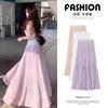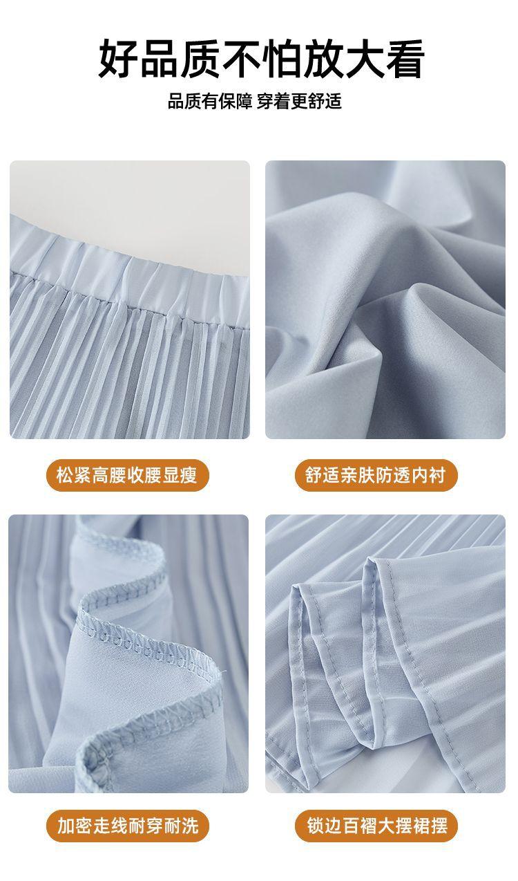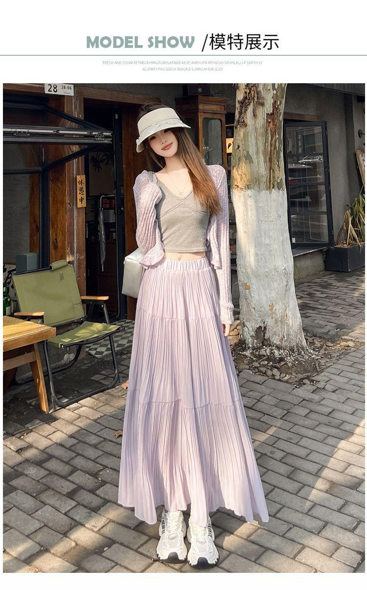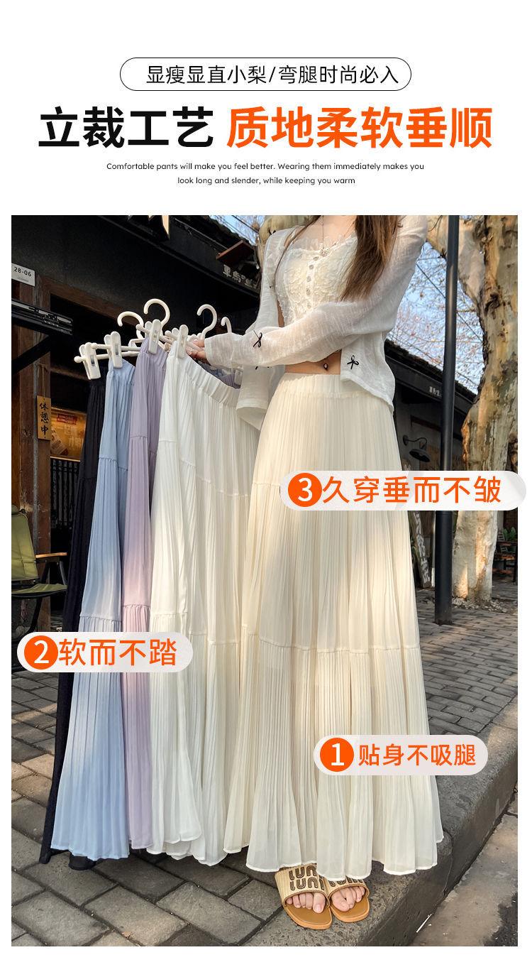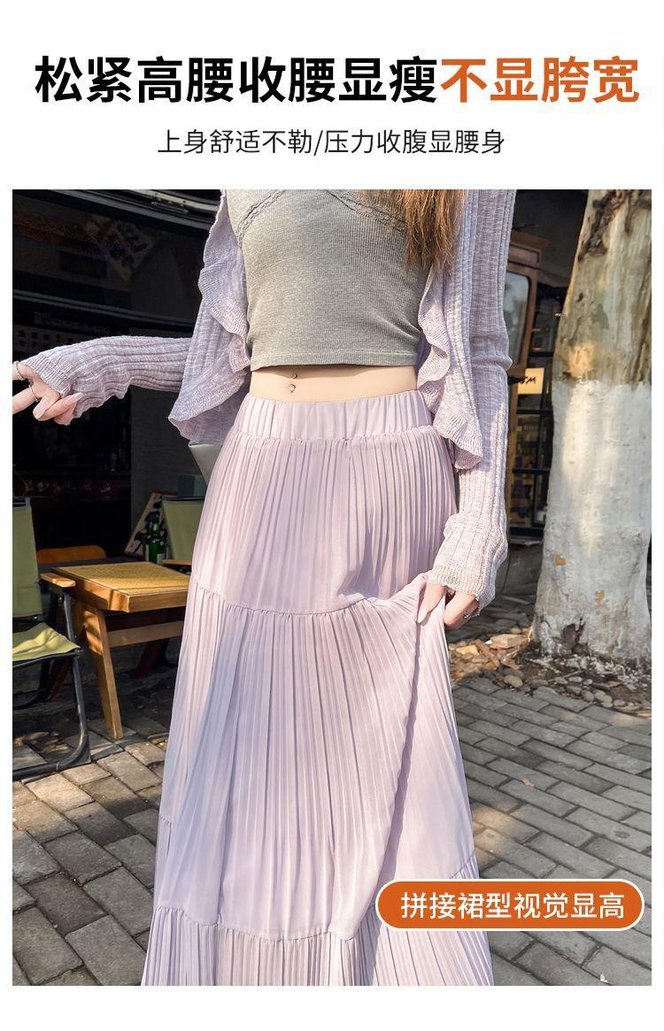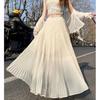 (con forro) Falda plisada artesanal para mujer, primavera y otoño, verano, nueva, cintura alta, corte A, falda larga cubierta de cadera
