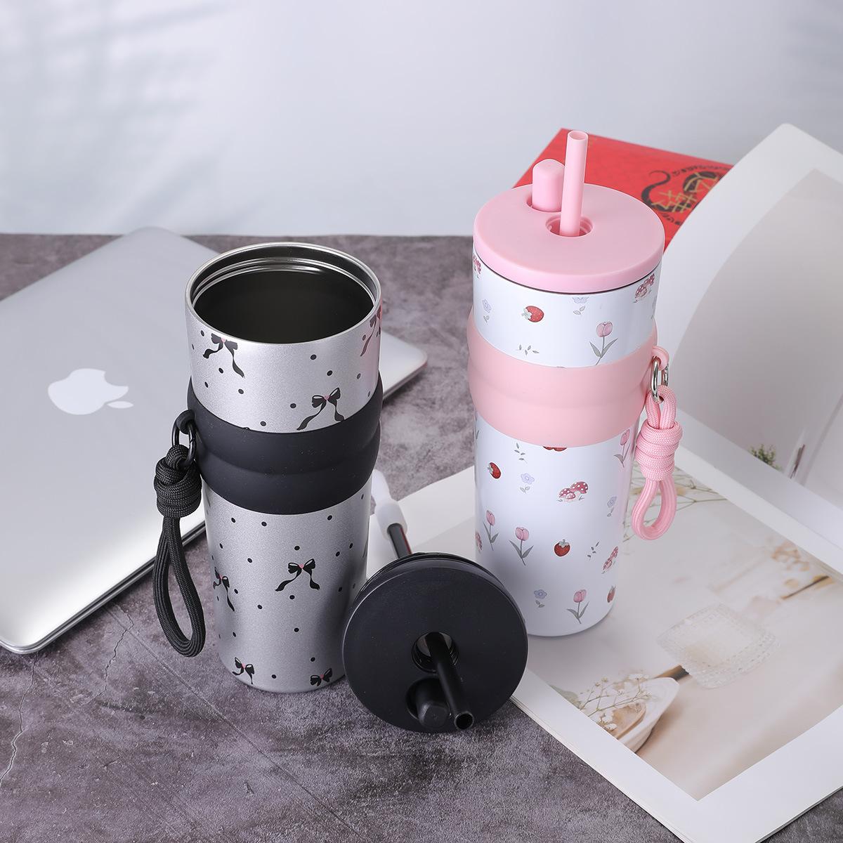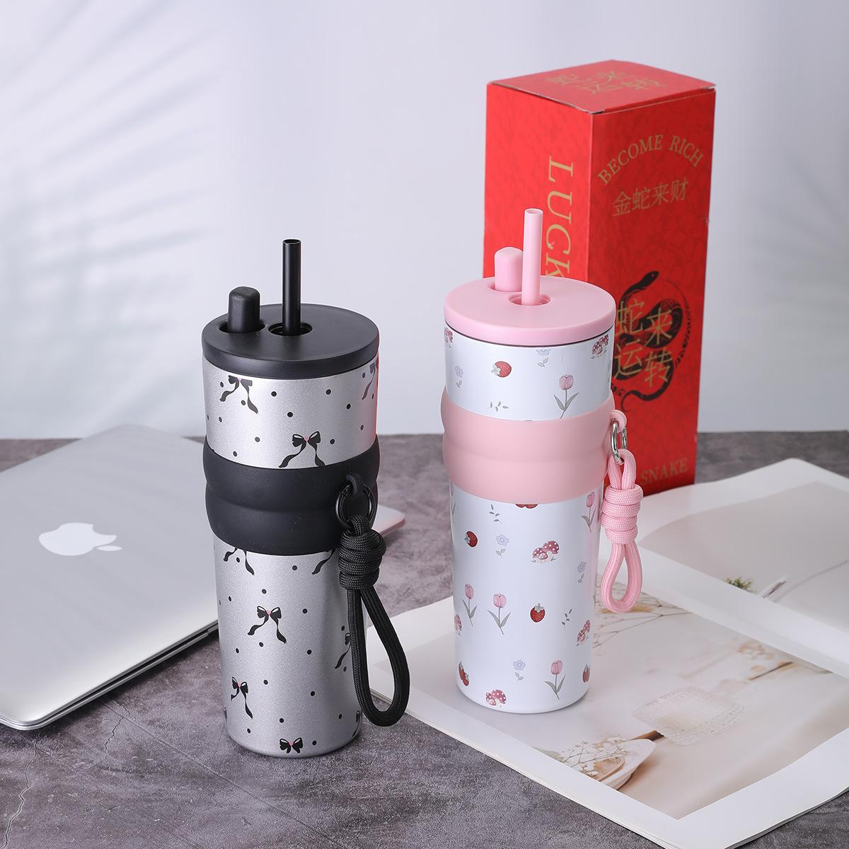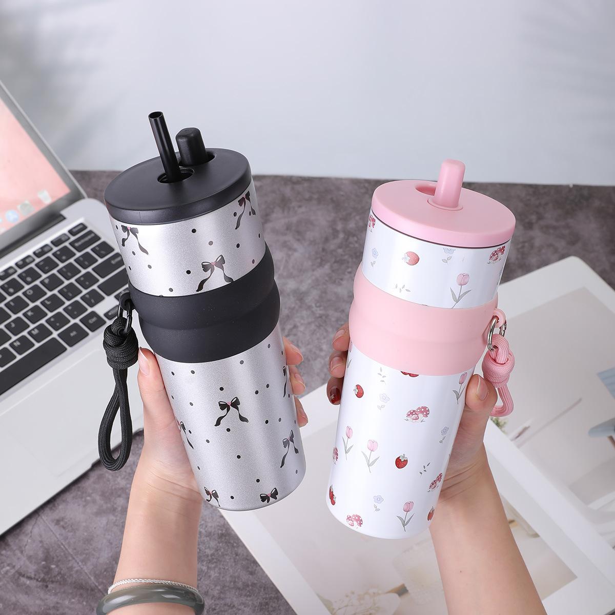Taza de vacío de acero inoxidable 316 para niñas, de gran capacidad y alto valor, con forma de taza de hielo, portátil y bonita, con cuerda Aurora