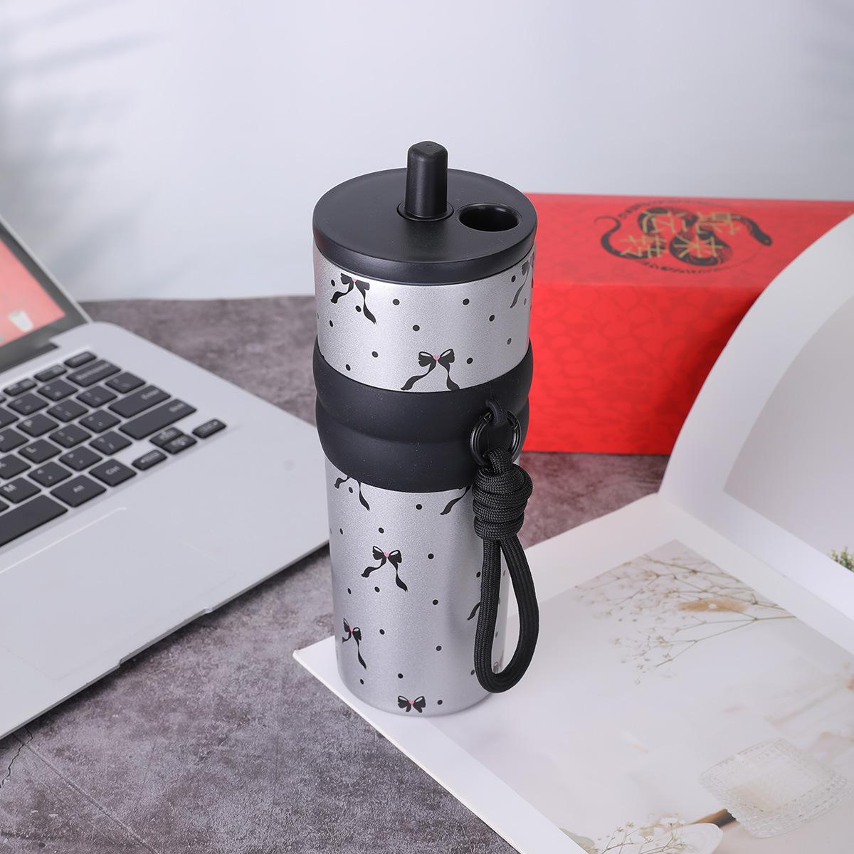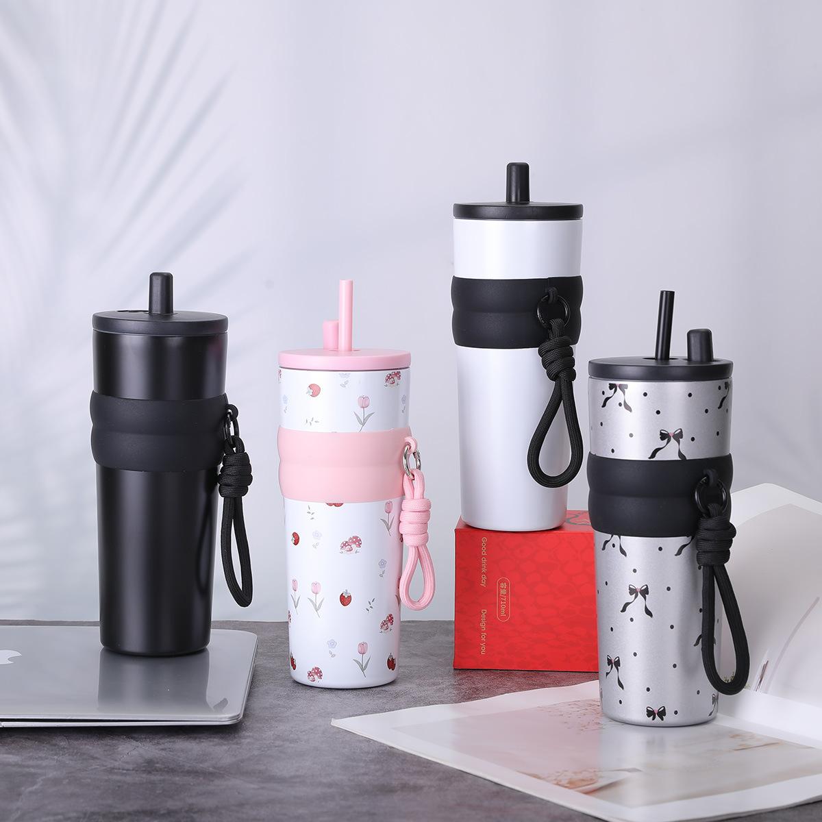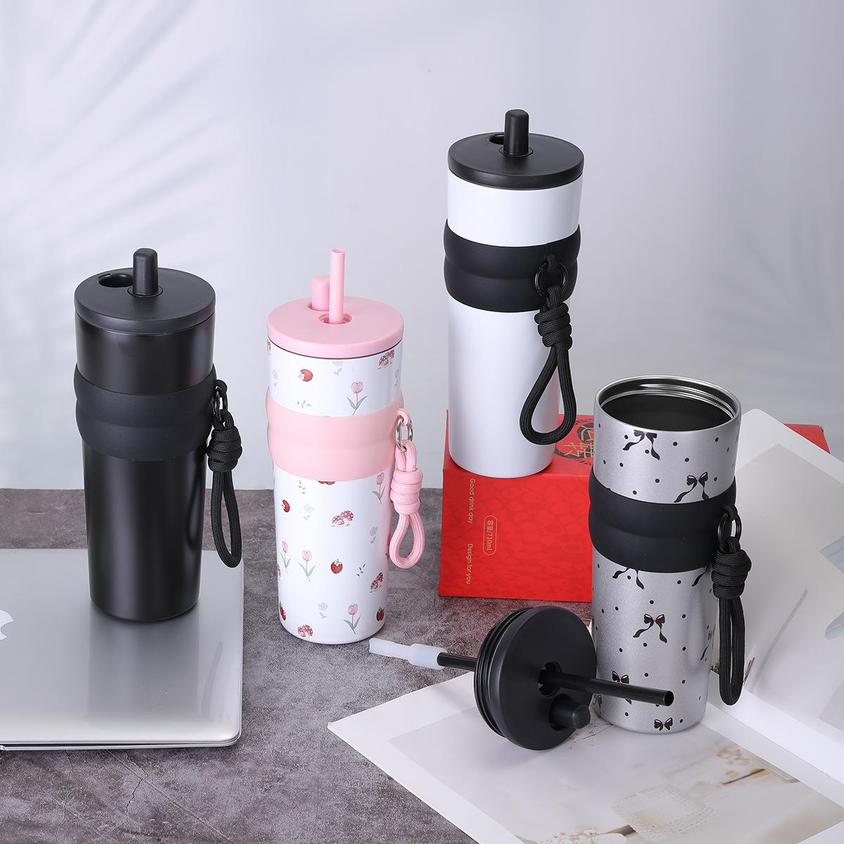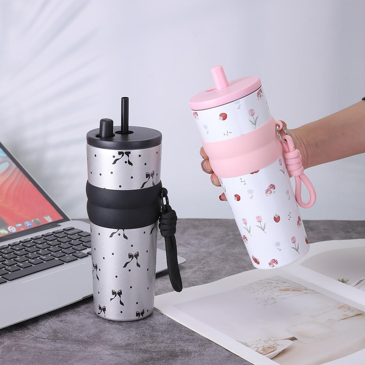 Taza de vacío de acero inoxidable 316 para niñas, de gran capacidad y alto valor, con forma de taza de hielo, portátil y bonita, con cuerda Aurora