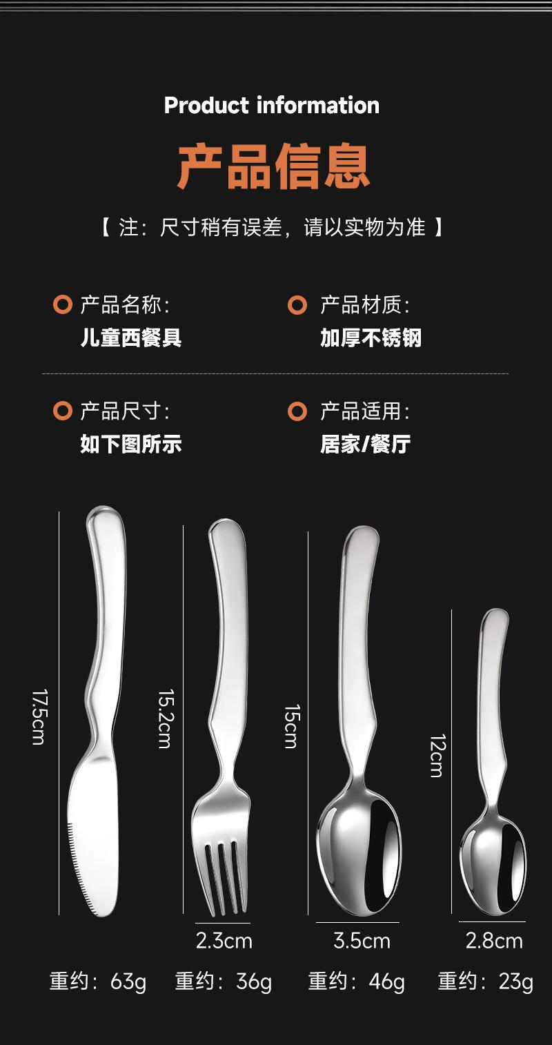 Cuchillo de menisco para niños de acero inoxidable 304 y tenedor cuchara cubertería cuchara engrosada cuchara hogar lindo juego de cuchara de postre