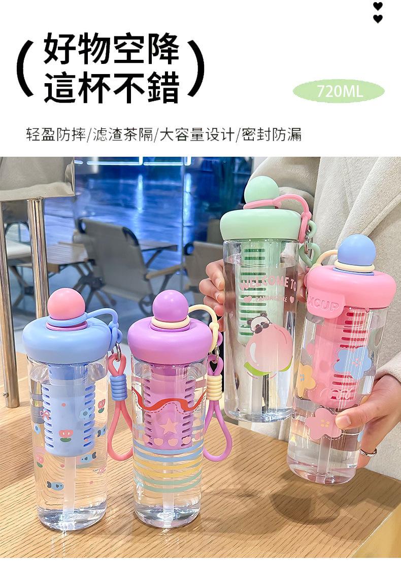 Vaso de agua de plástico de paja lindo de verano de alto valor, de gran capacidad, portátil, para mujer, con almacén de té para estudiantes