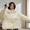 Chaqueta de plumón de pato blanca elegante de largo medio con cuello vertical para mujer, con contraste de luz, para mujer pequeña.