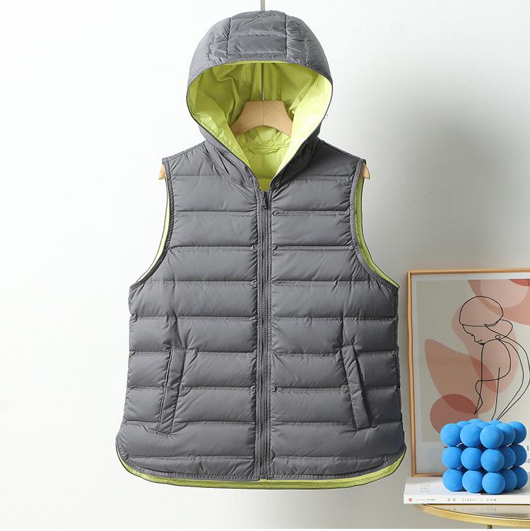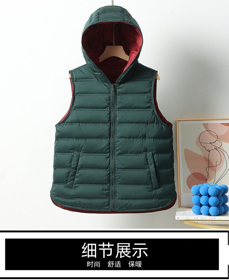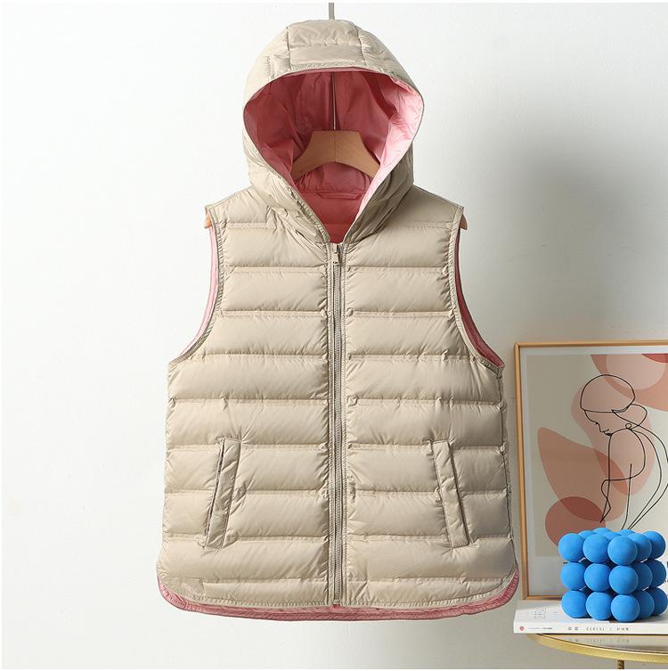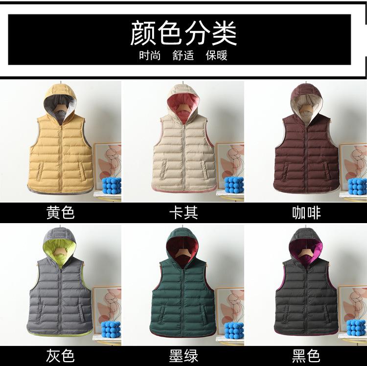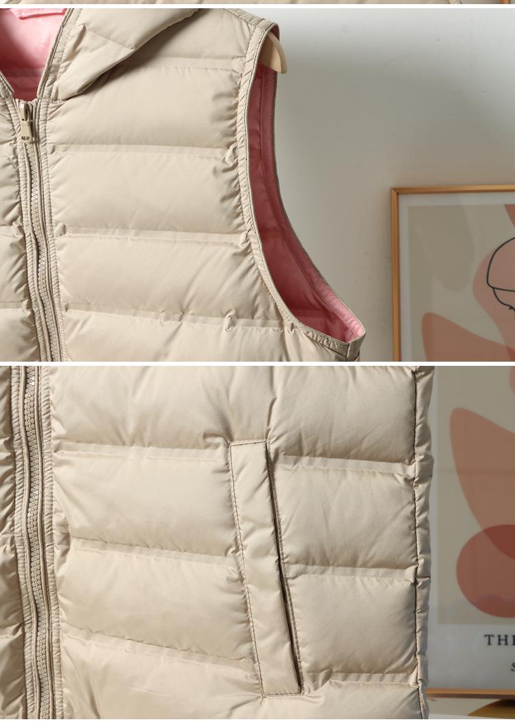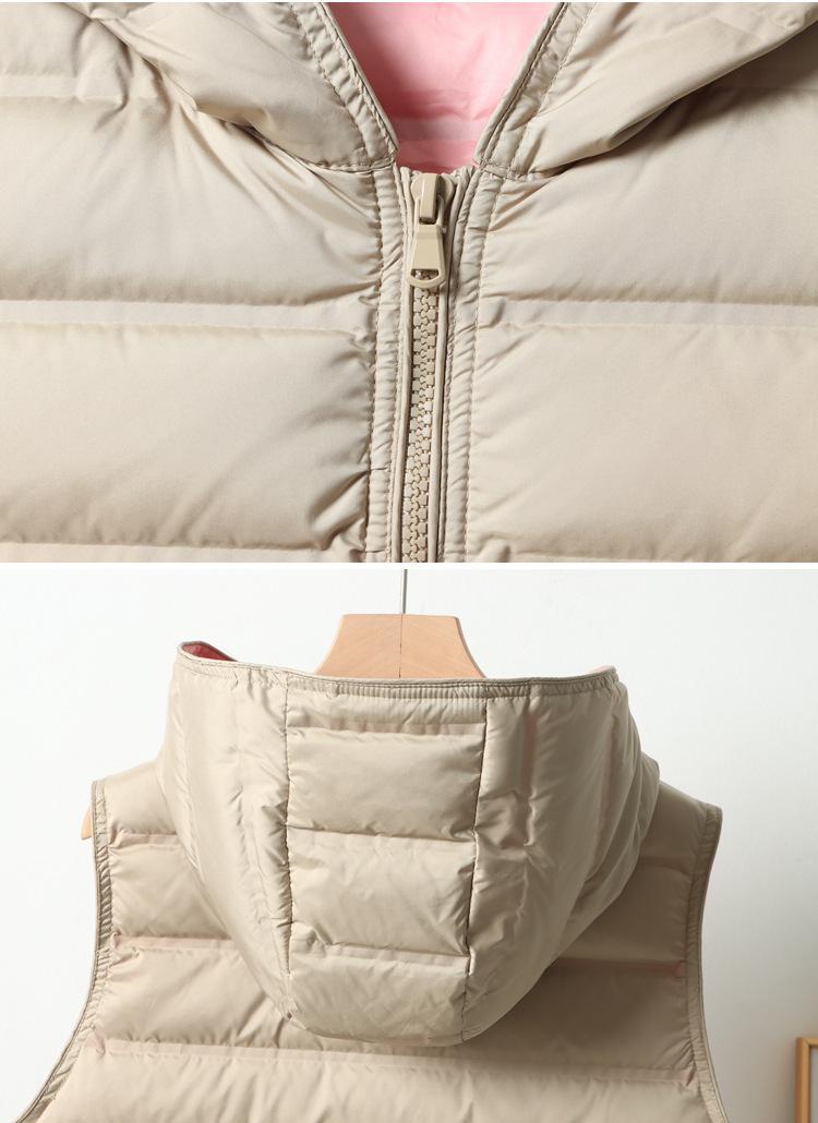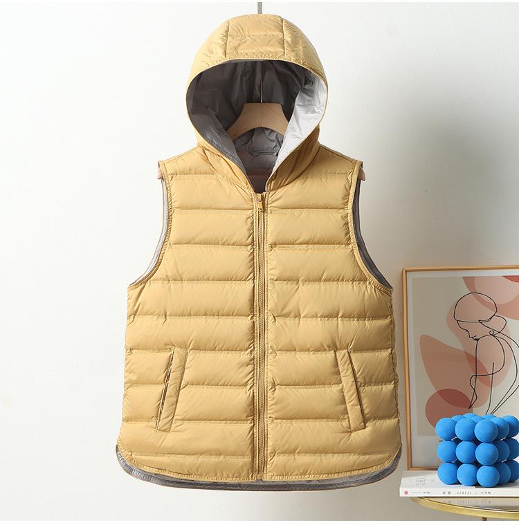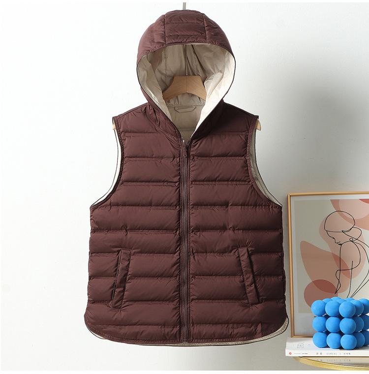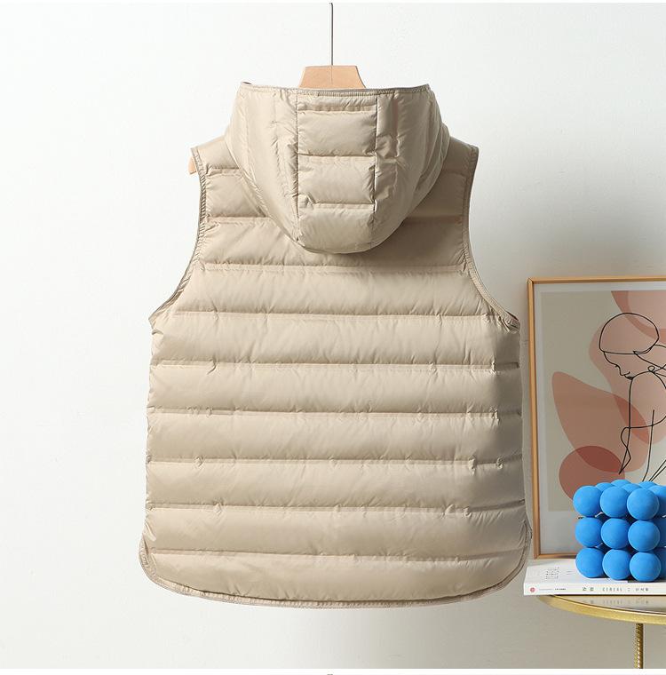 Chaleco de plumón ligero nuevo 2024 para mujer, estilo corto con capucha laminada, chaleco versátil con bloques de color, cálido chaleco retro