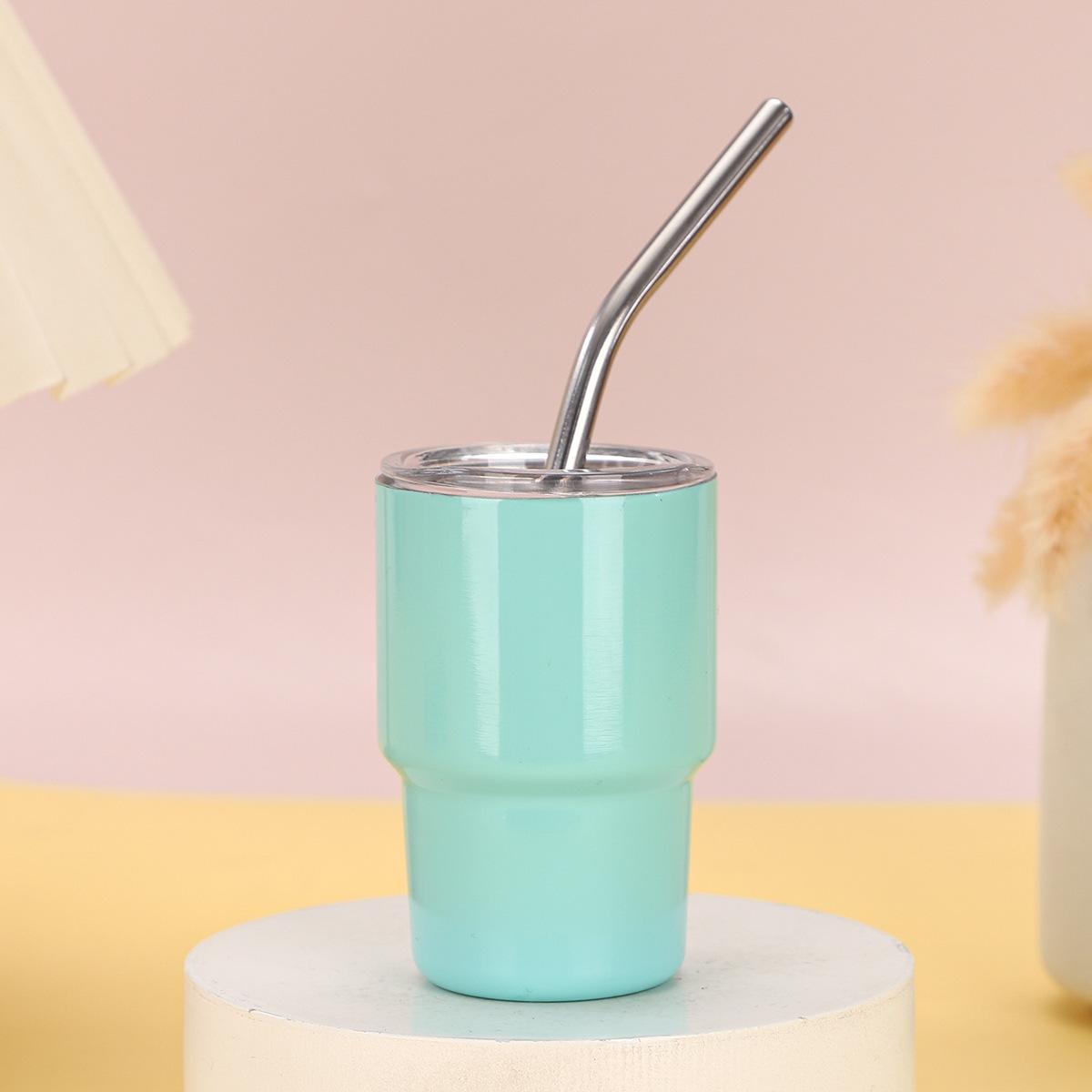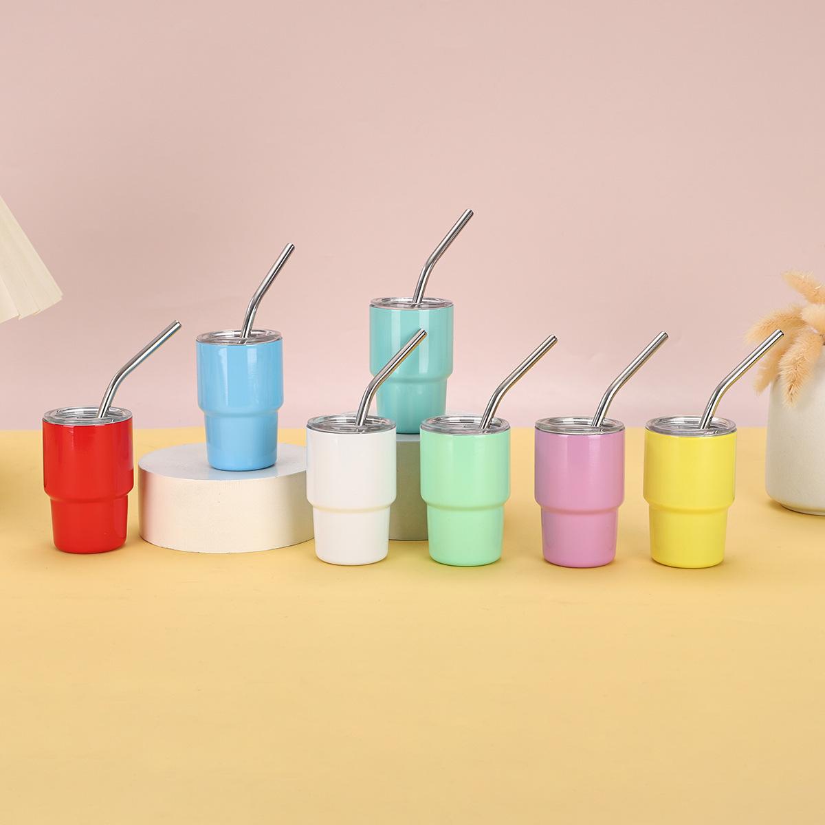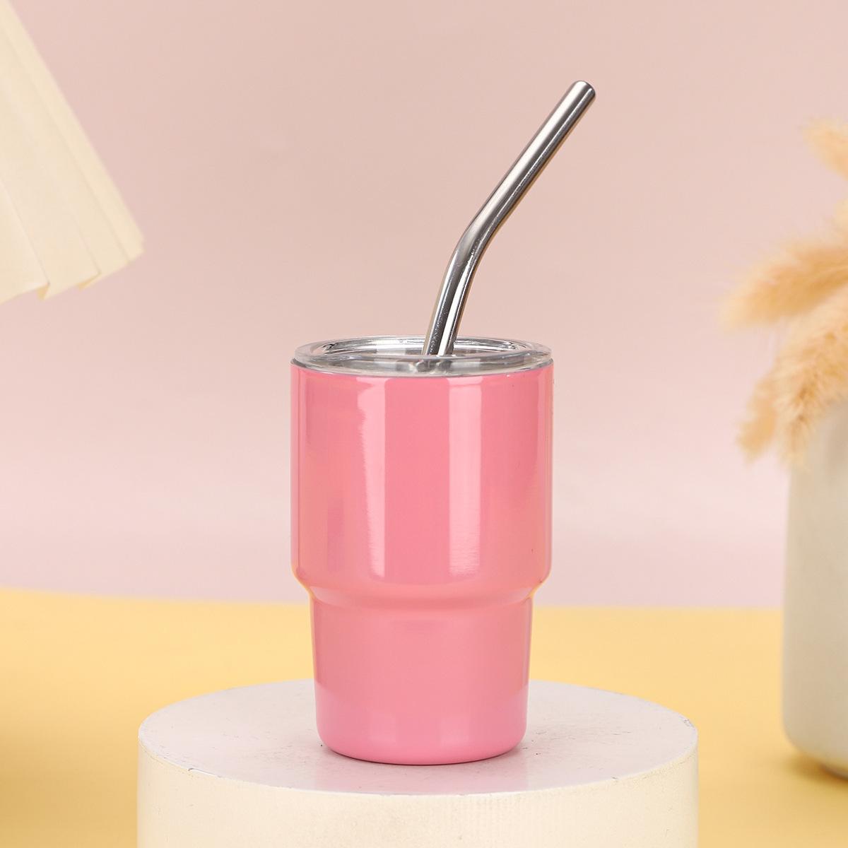 Vaso Mini de Doble Capa de 2oz para Coche Transfronterizo, Acero Inoxidable 304, Vaso Aislado al Vacío con Pajita para Mantener Bebidas Calientes y Frías
