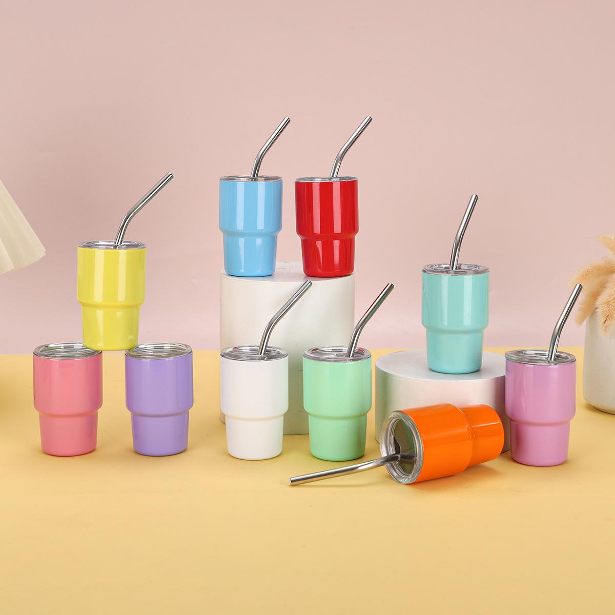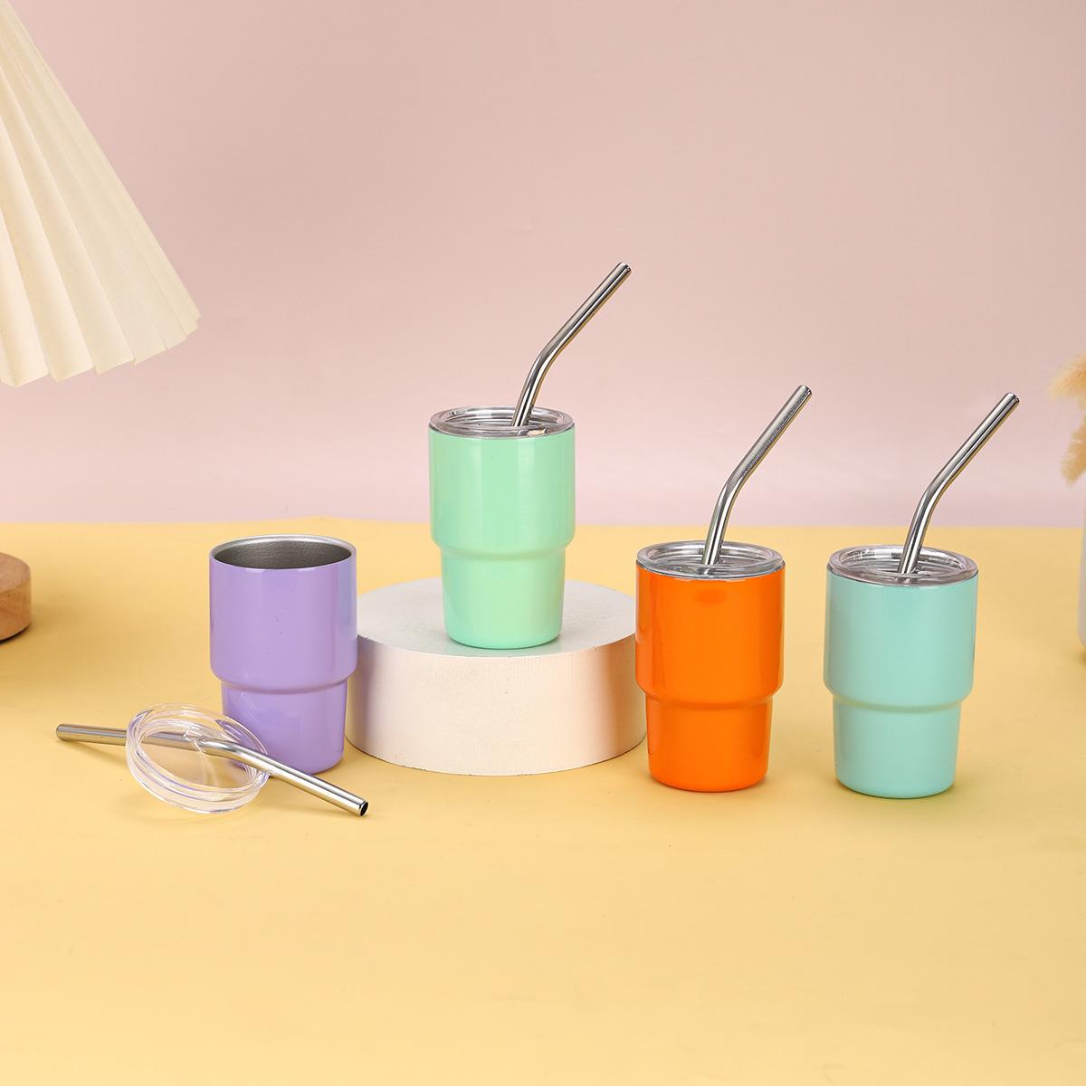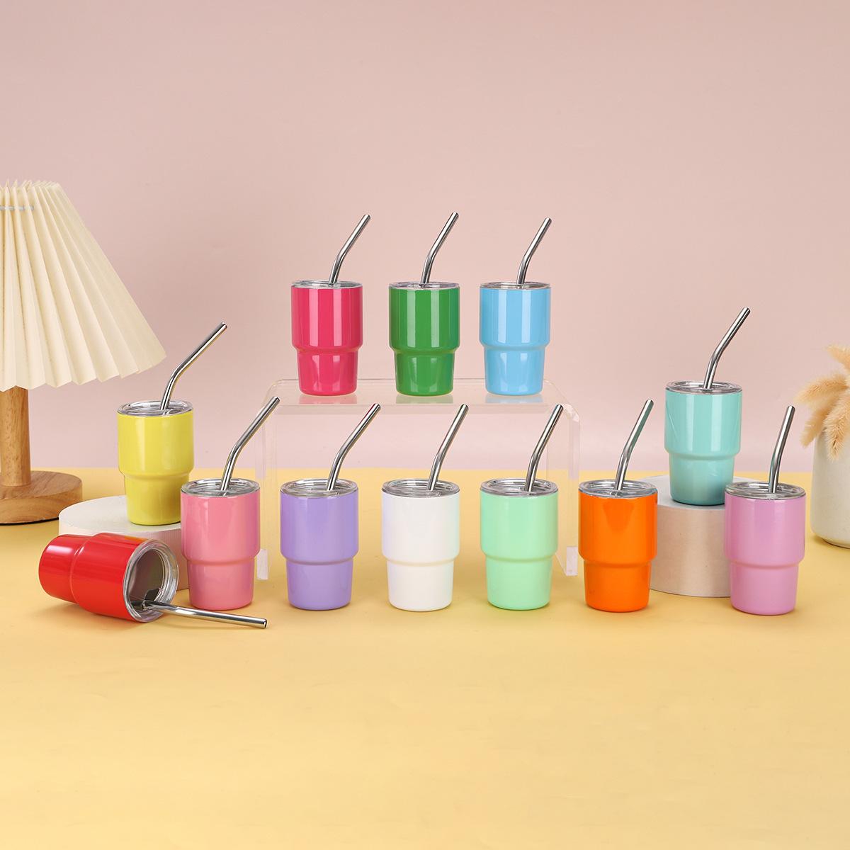 Vaso Mini de Doble Capa de 2oz para Coche Transfronterizo, Acero Inoxidable 304, Vaso Aislado al Vacío con Pajita para Mantener Bebidas Calientes y Frías