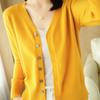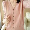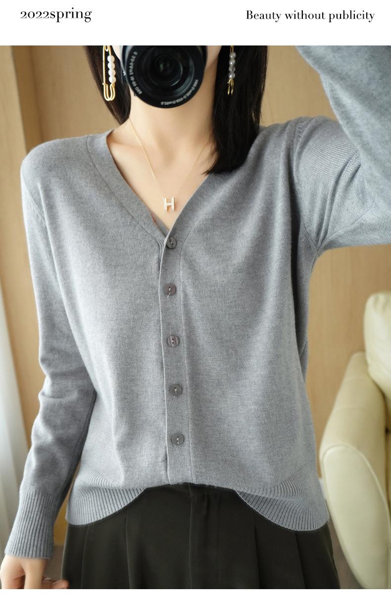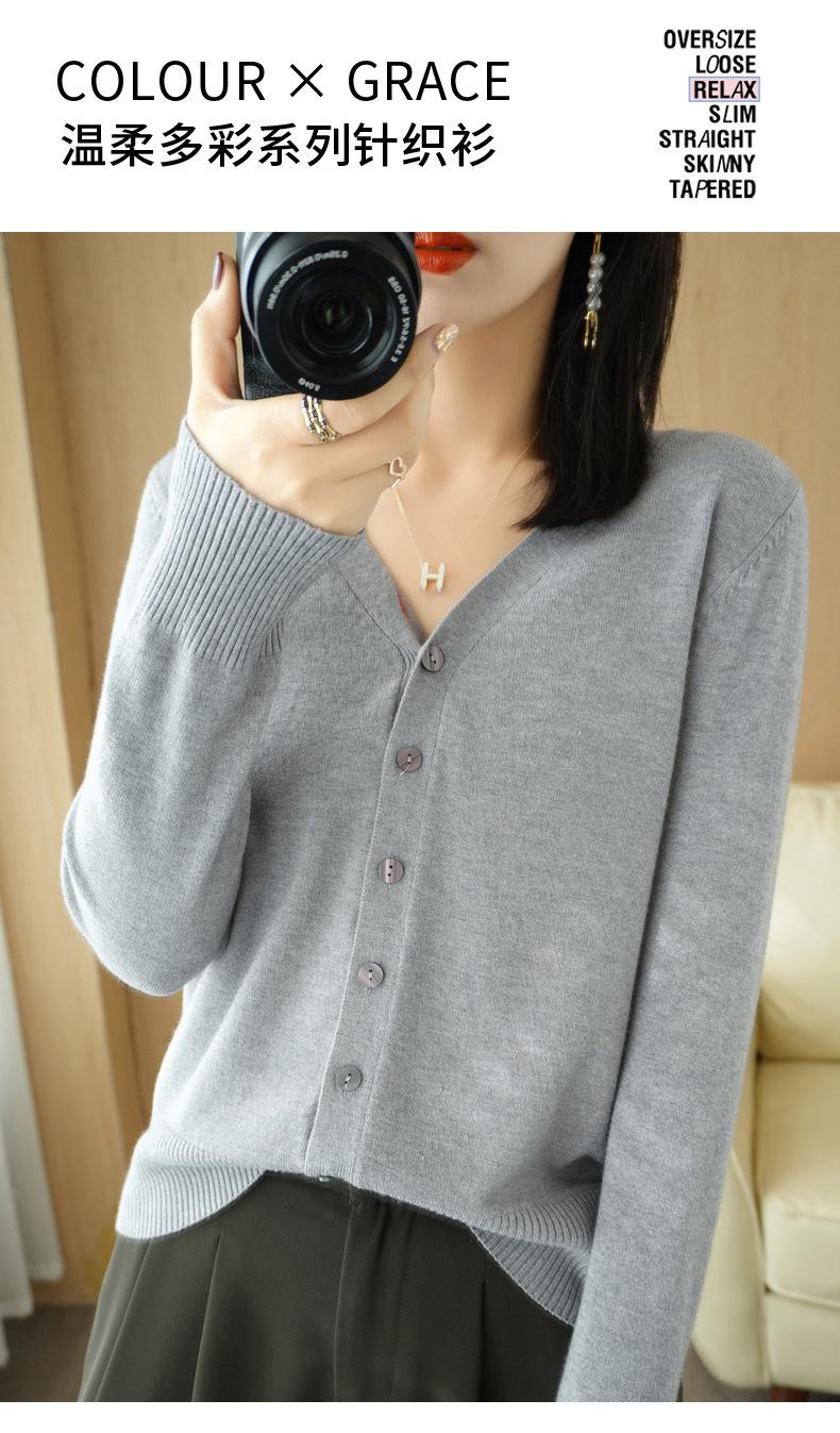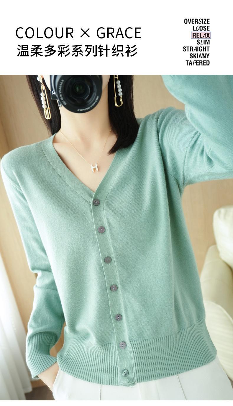 Nuevo cárdigan de punto elegante de otoño e invierno, suéter recto con cuello en V, suéter de punto para mujer, base para mujer