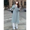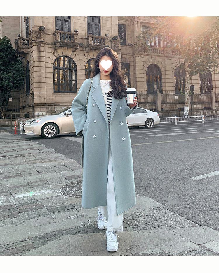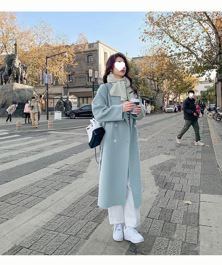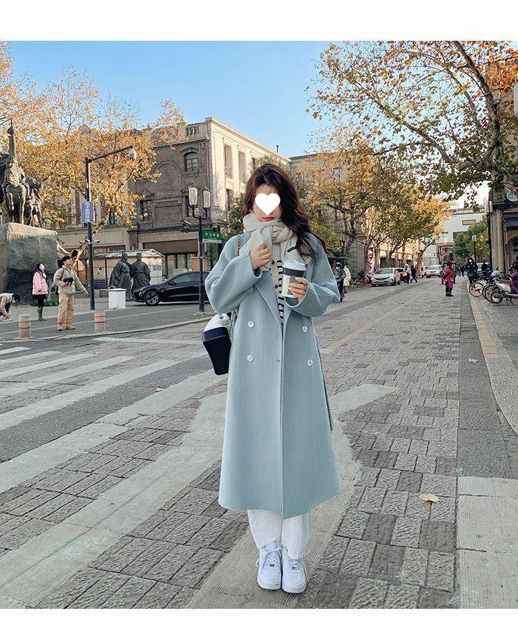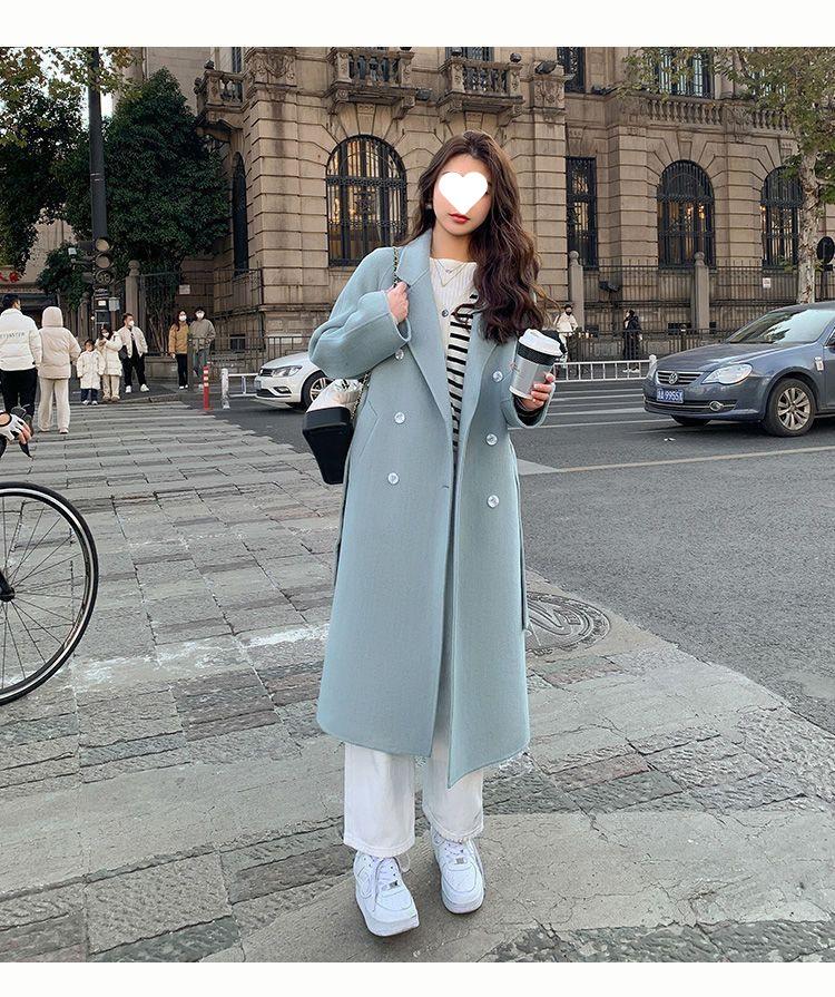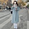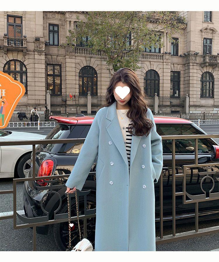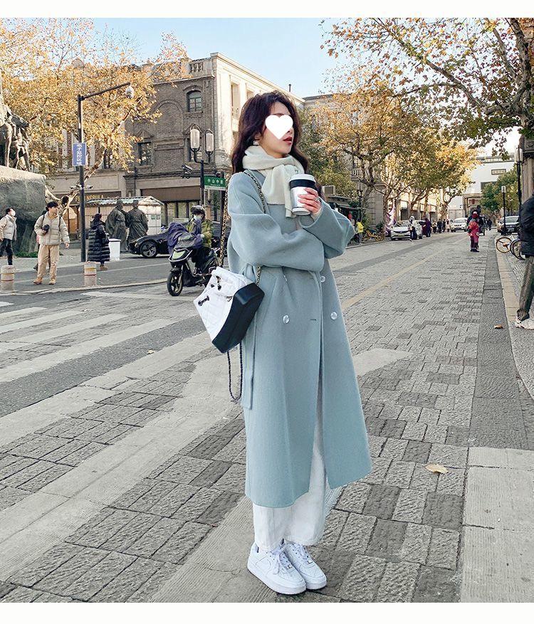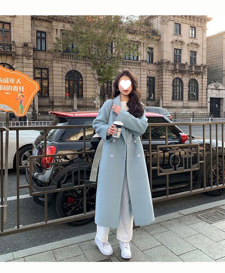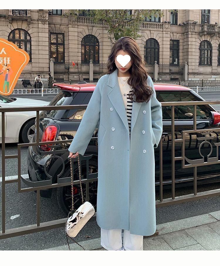 Abrigo de Lana Doble Faz Azul Transfronterizo para Mujer Otoño e Invierno 2024 Nuevo Coreano Suelto Largo Medio Tendencia Hepburn
