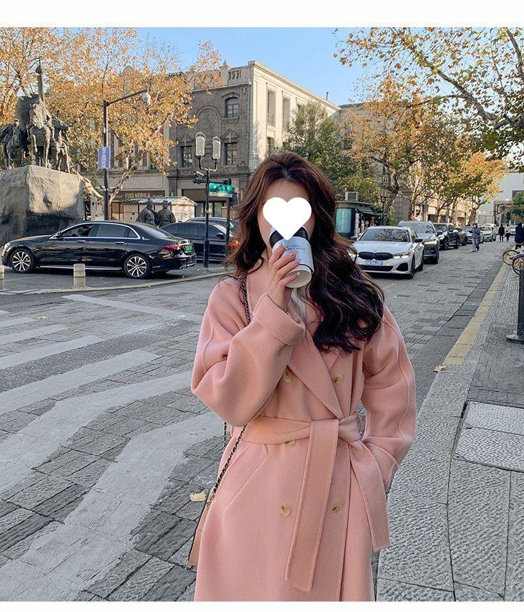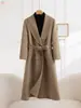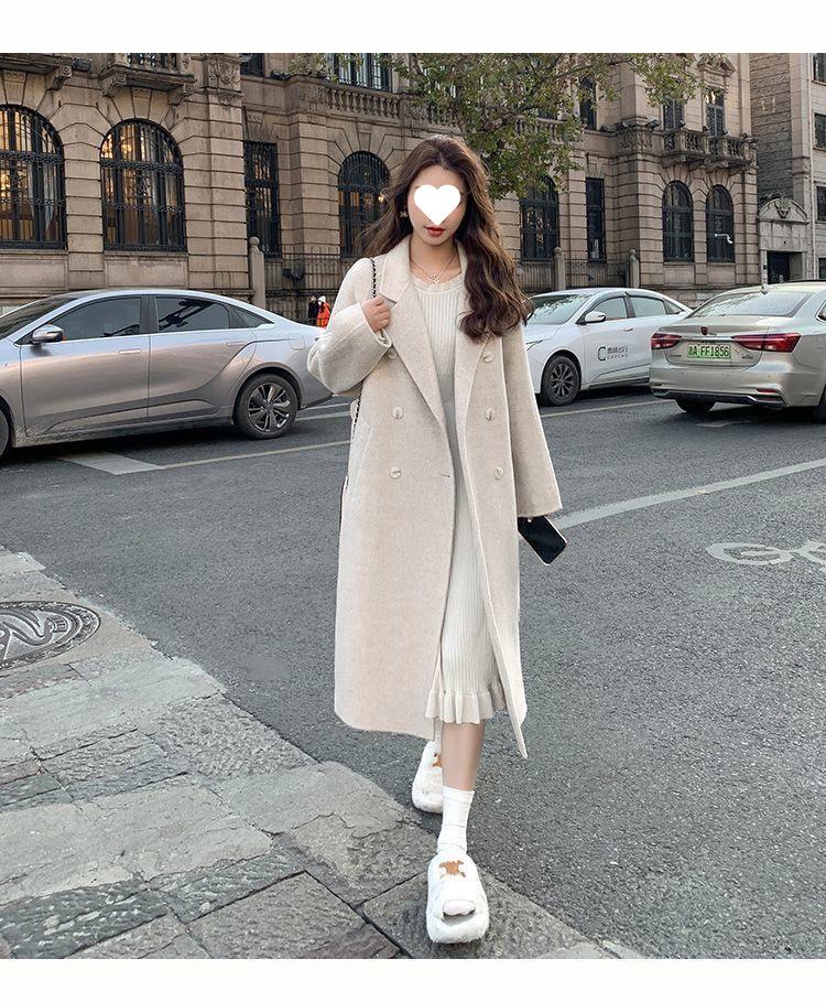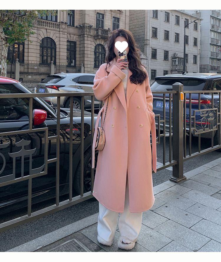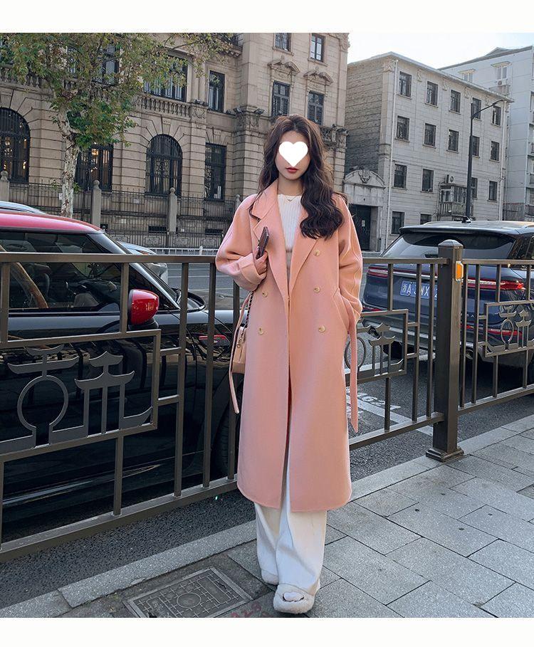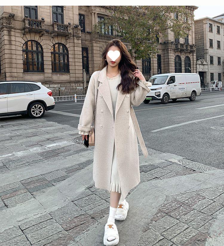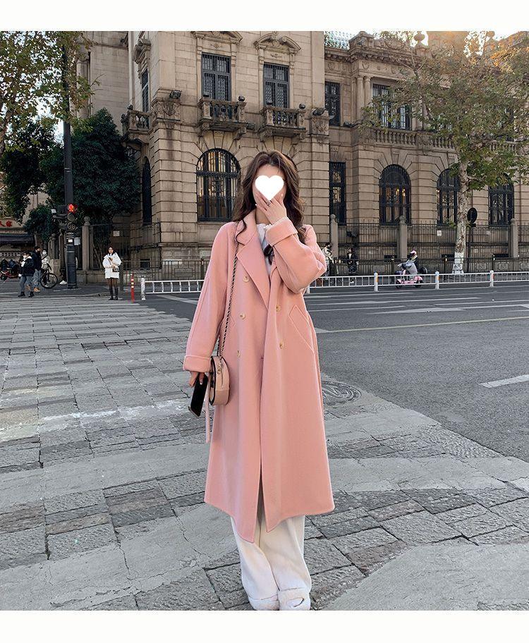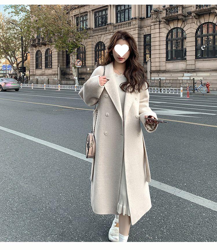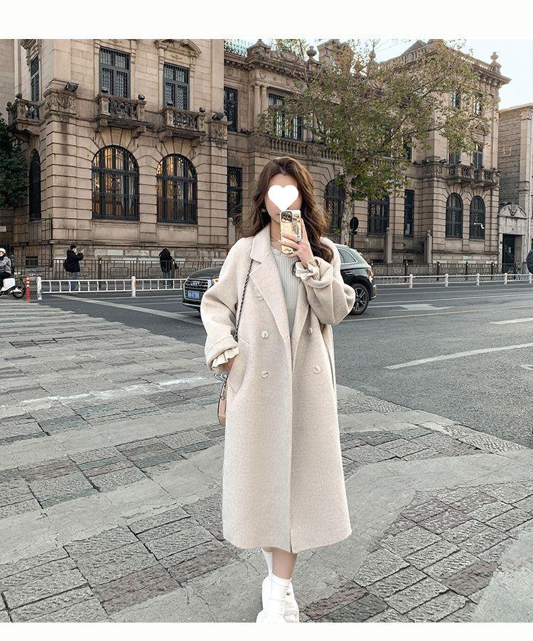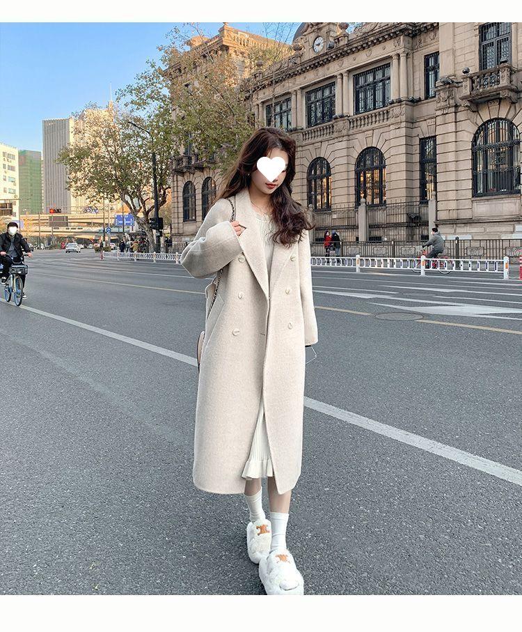 Abrigo de Lana Doble Faz Azul Transfronterizo para Mujer Otoño e Invierno 2024 Nuevo Coreano Suelto Largo Medio Tendencia Hepburn